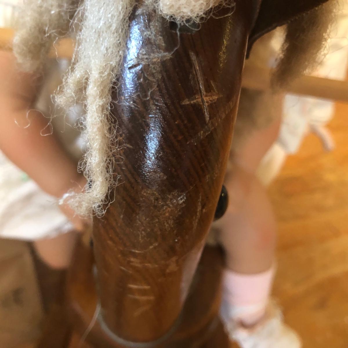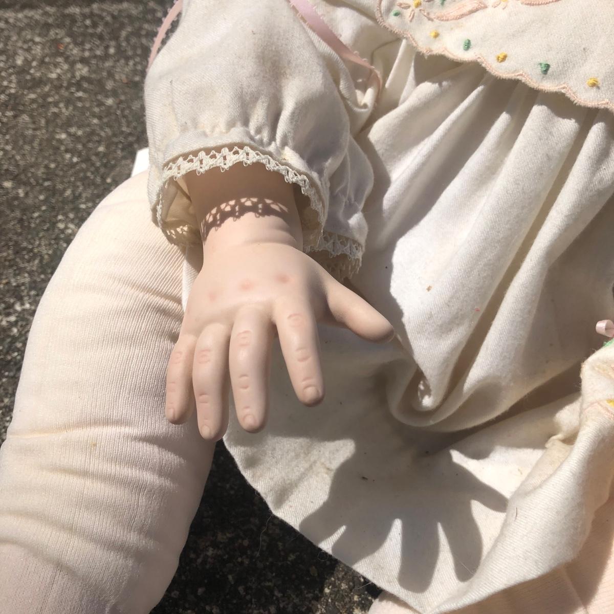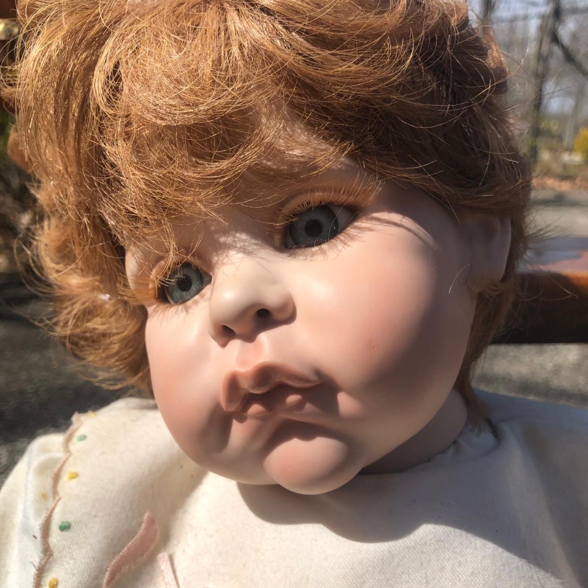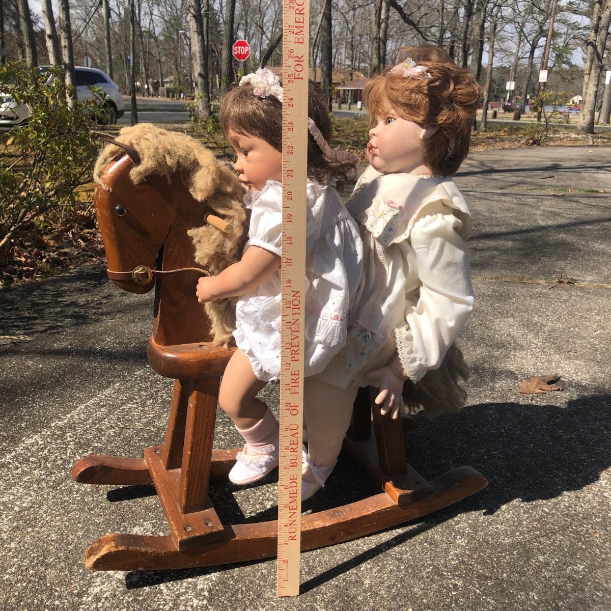 LOT 37M: 1991 "Angel Cheeks" Porcelain/Cloth Doll by Linda May, 1991 Pat Secrist Baby Doll & Wooden Rocking Horse