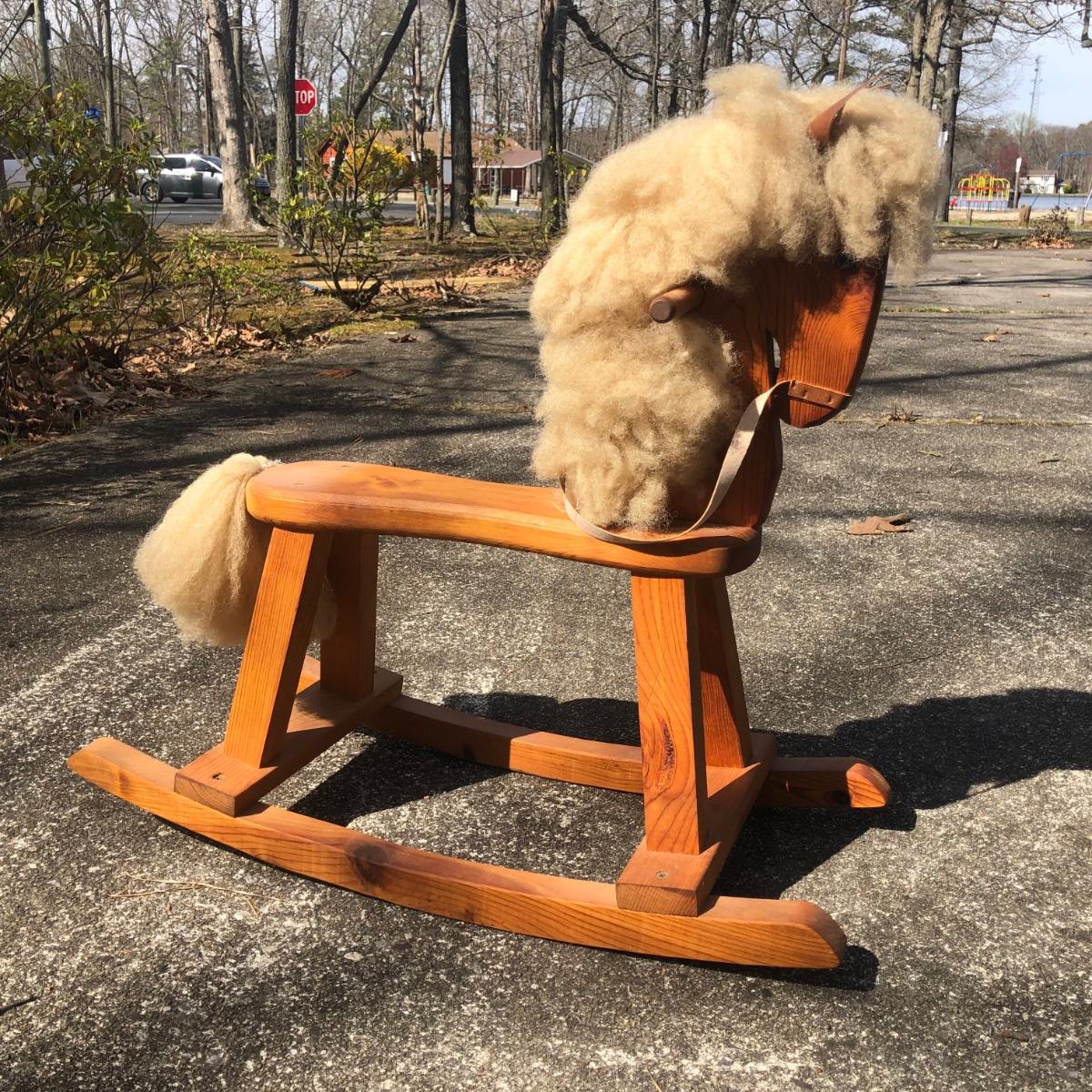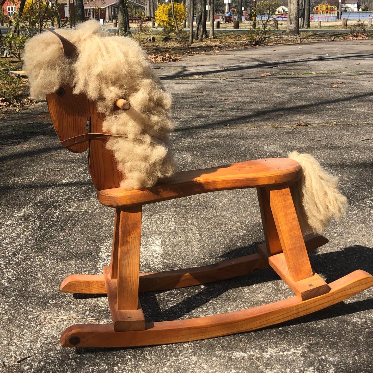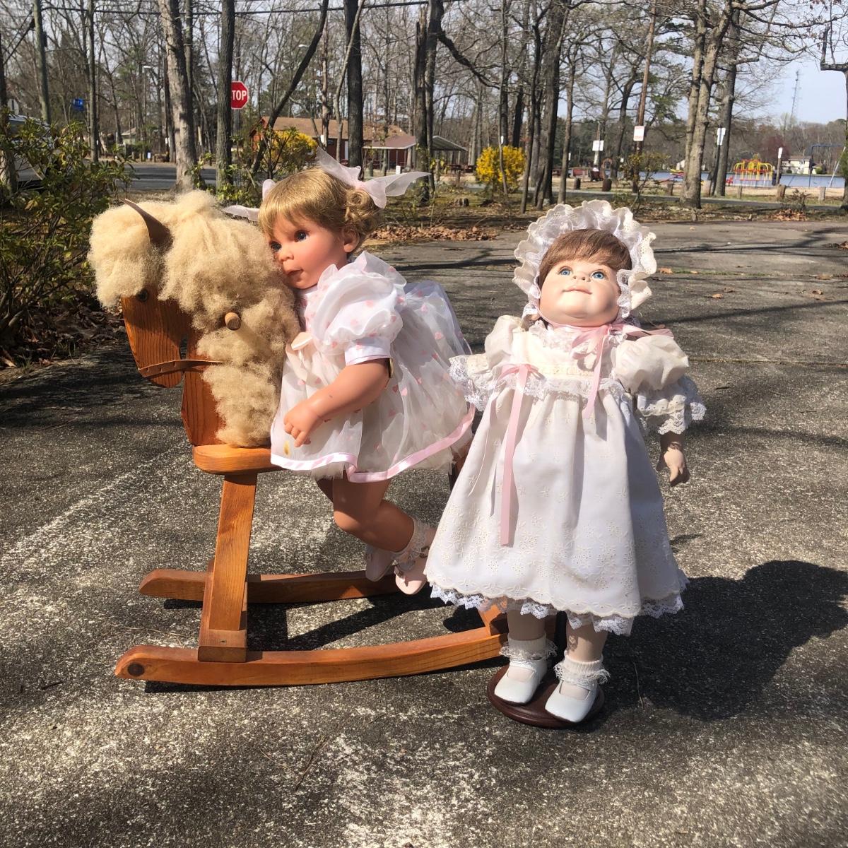 LOT 38M: Vintage Porcelain/Cloth Dolls & Wooden Rocking Horse