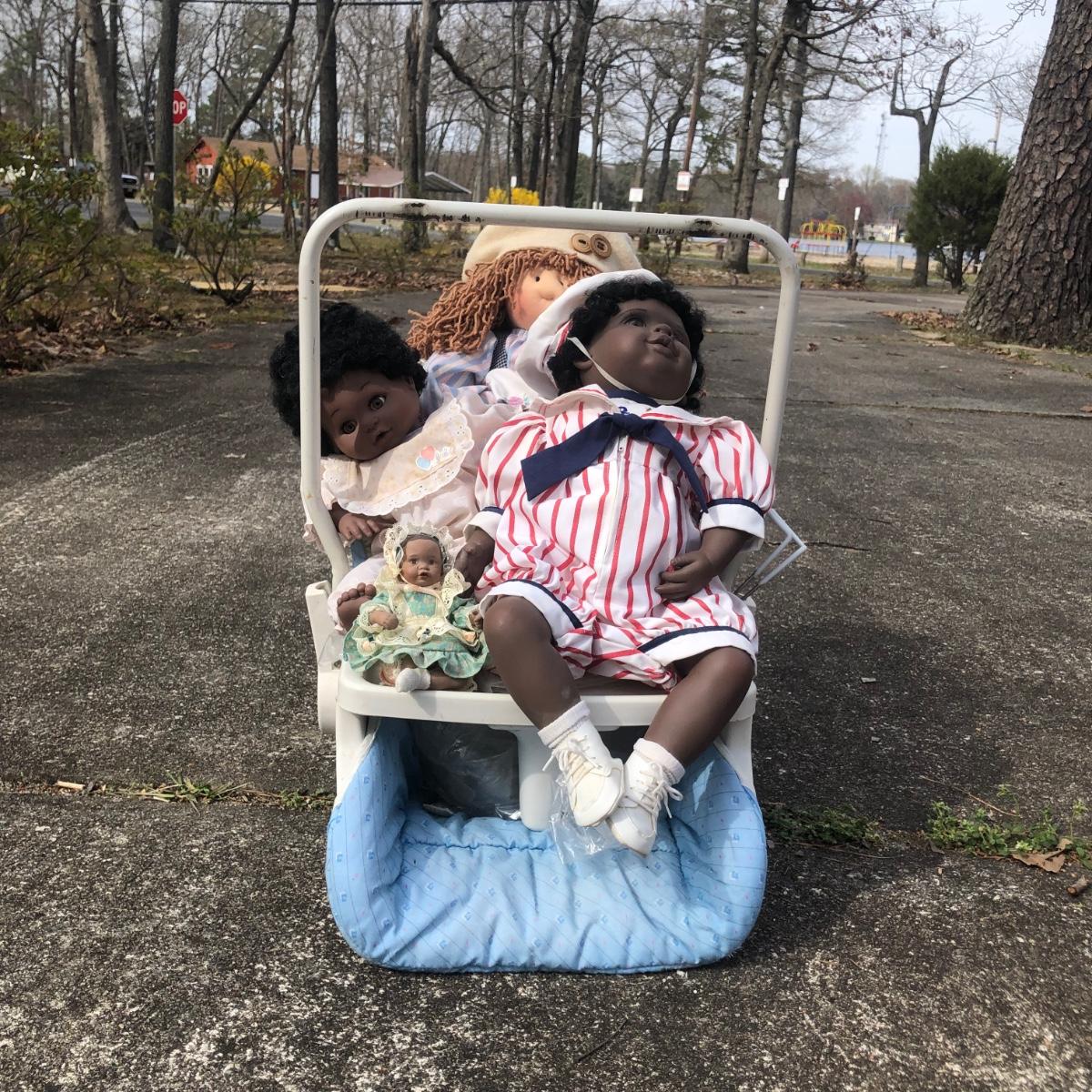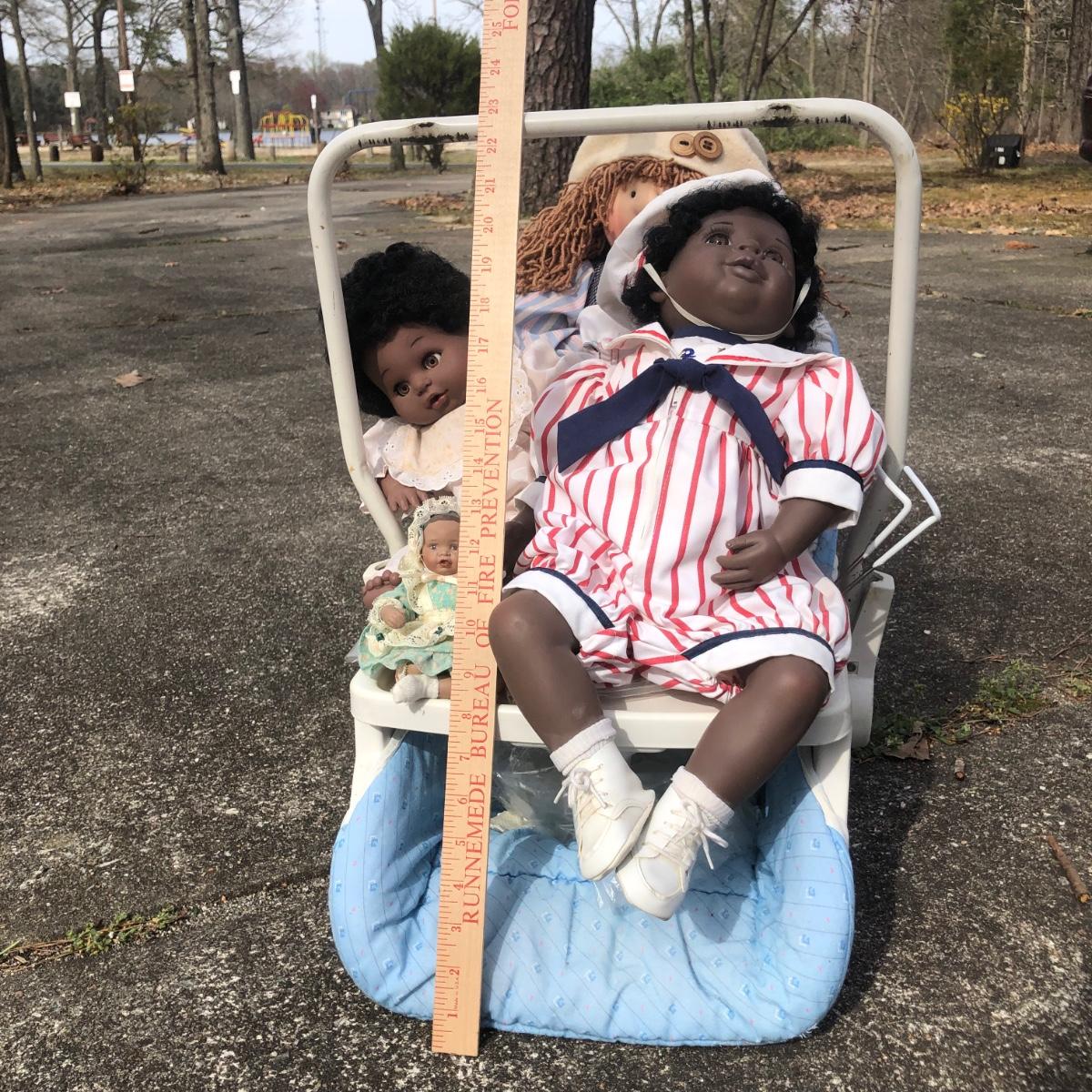 LOT 40M: Collection of Vinyl/Cloth Dolls w/ Baby Seat
