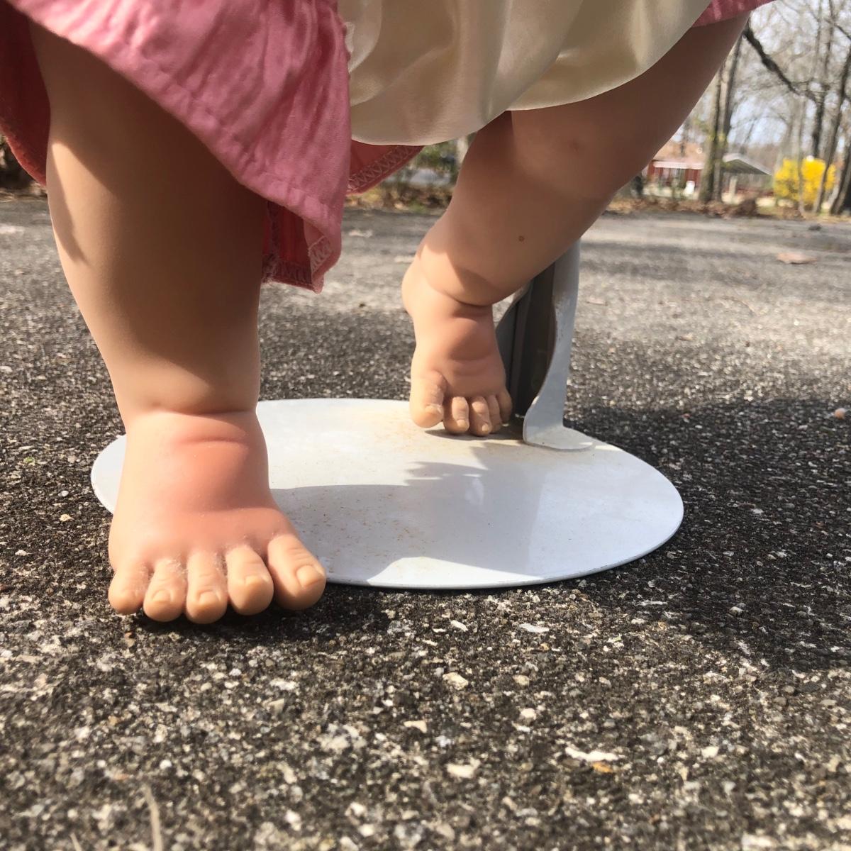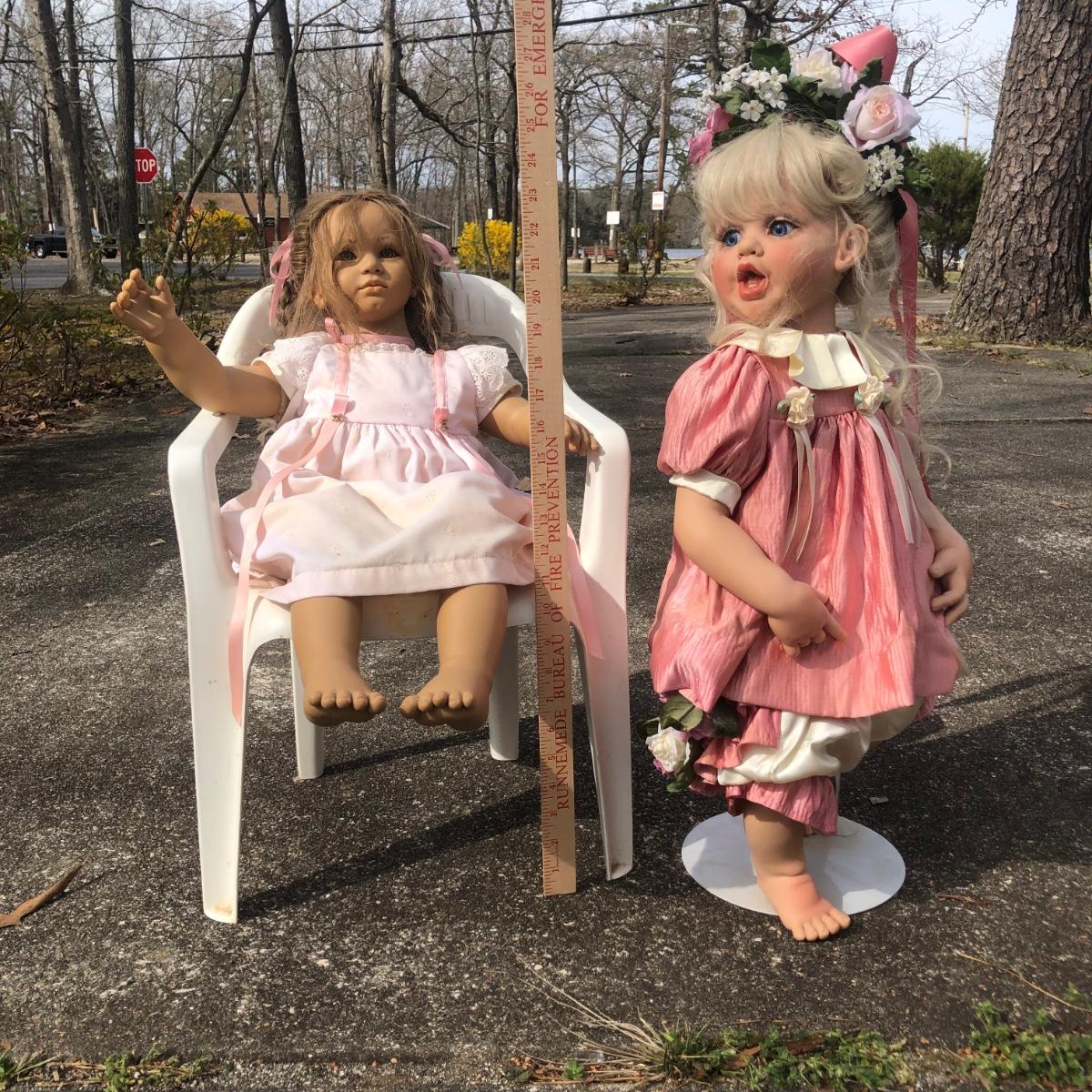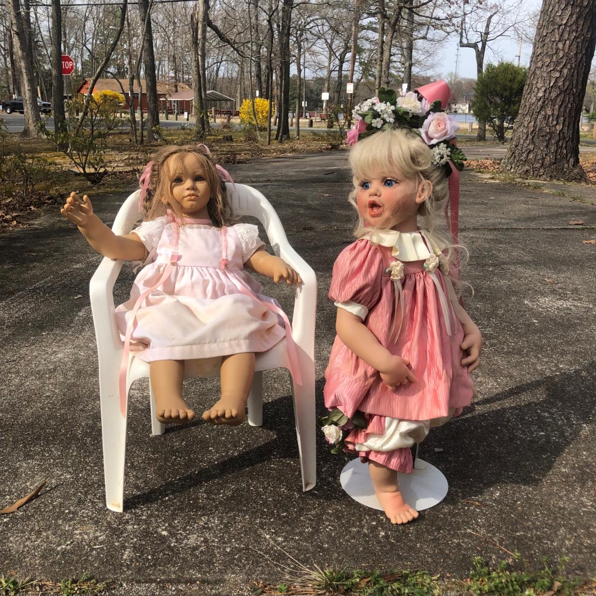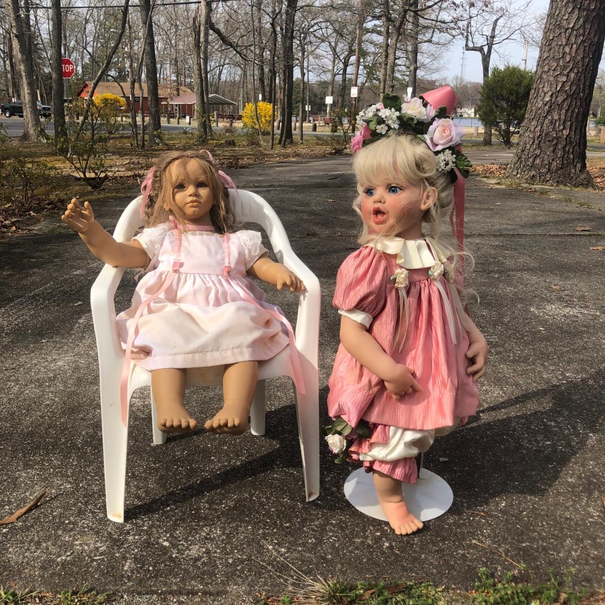 LOT 41M: Porcelain/Vinyl Dolls in Pink w/ Plastic Chair