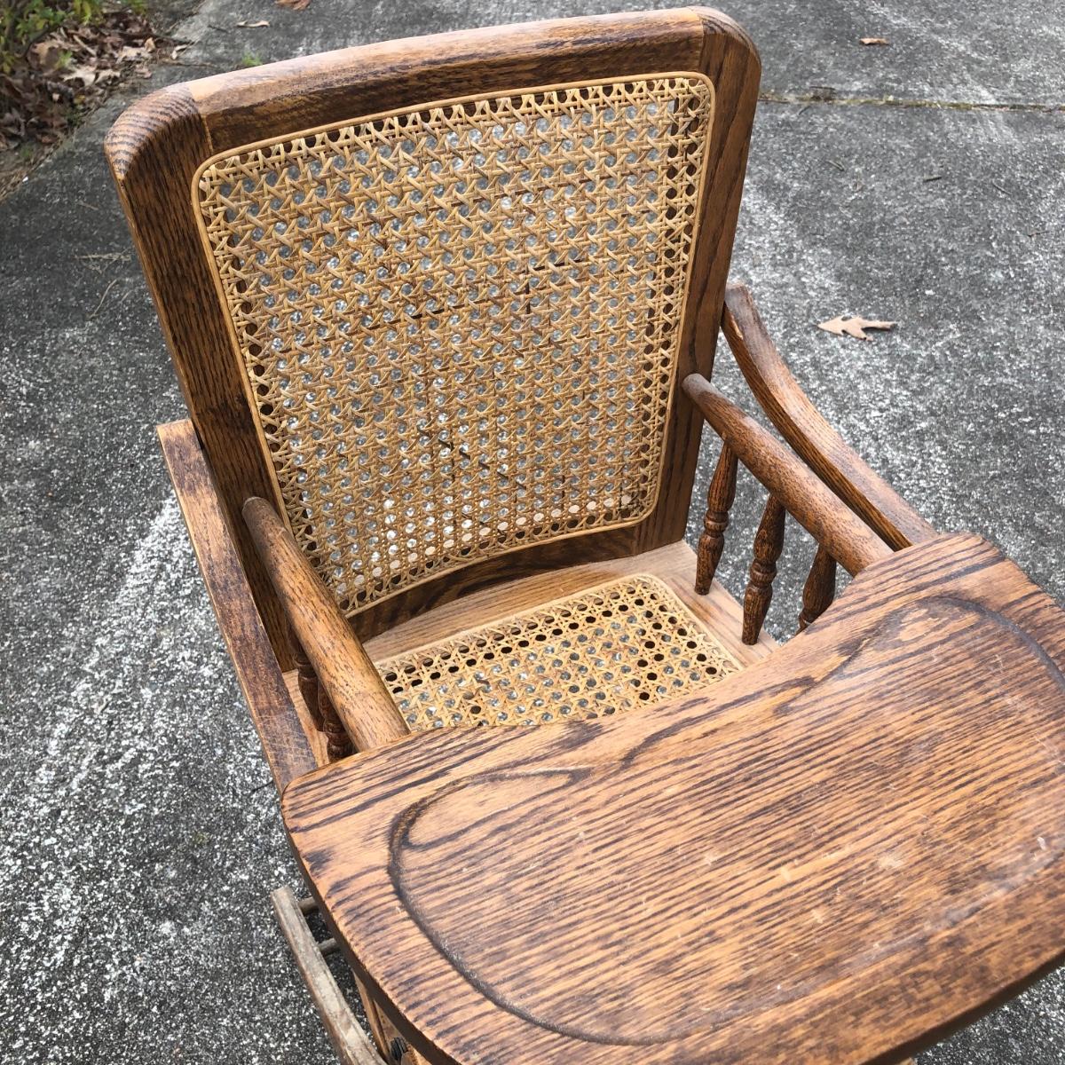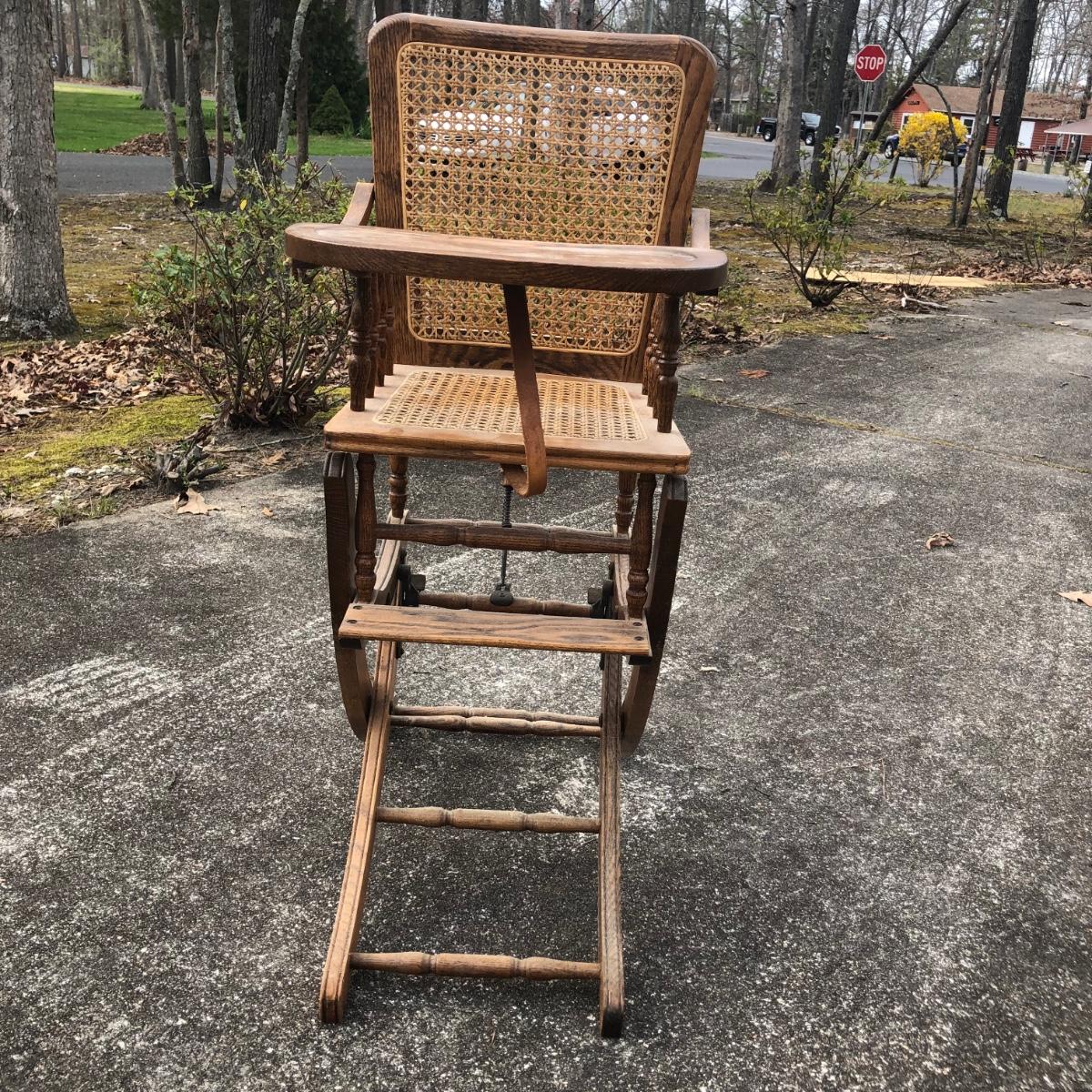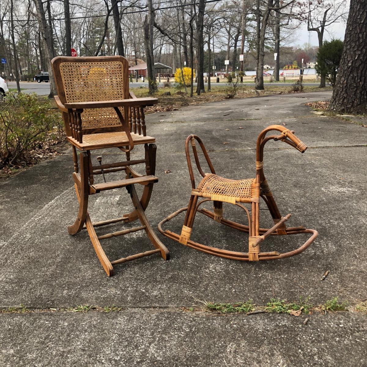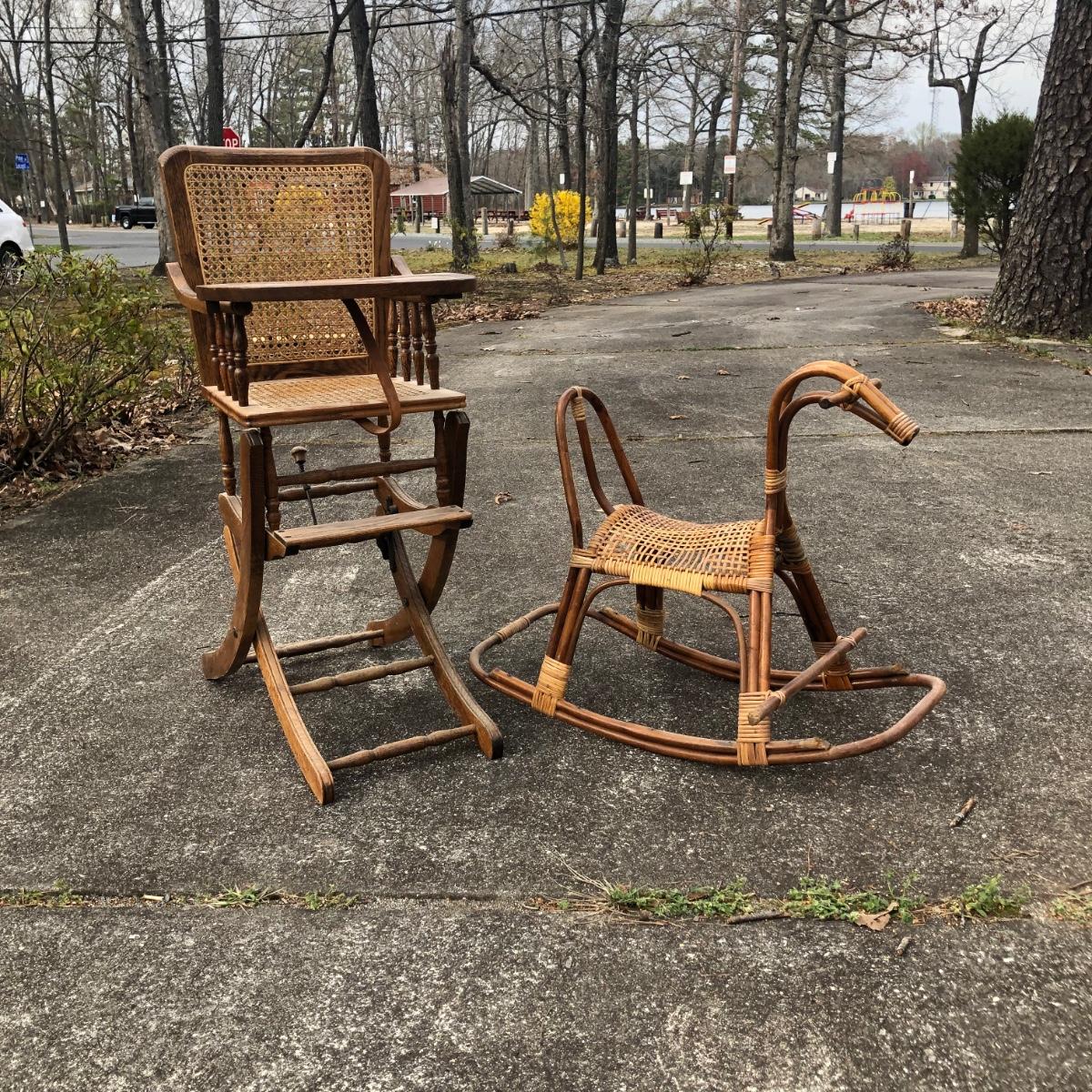 LOT 43M: Vintage Wicker High Chair & Rocking Horse