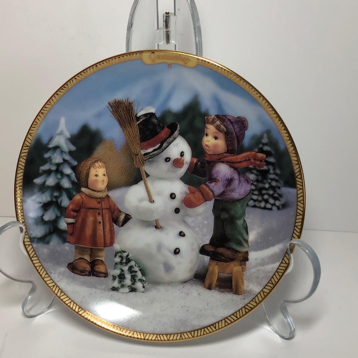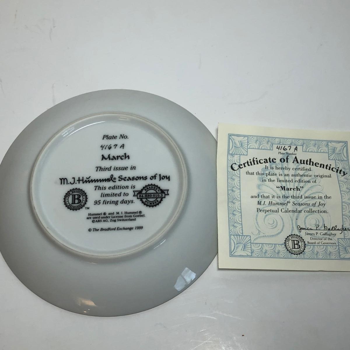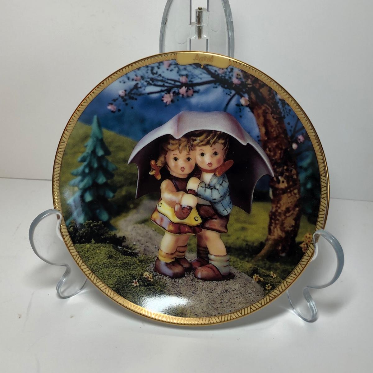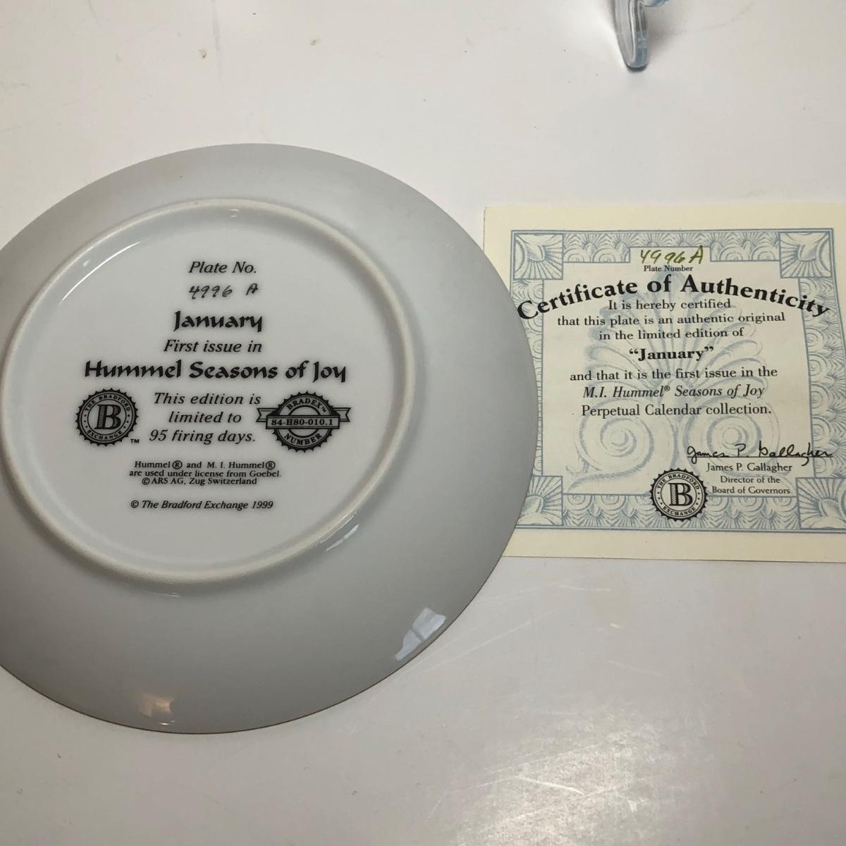 LOT 45M: M.I. Hummel/Goebel Collection: Lamp, Wall Clock, Seasons of Joy Plates, Follow the Leader Water Globe & Goebel Collectors' Club Poster