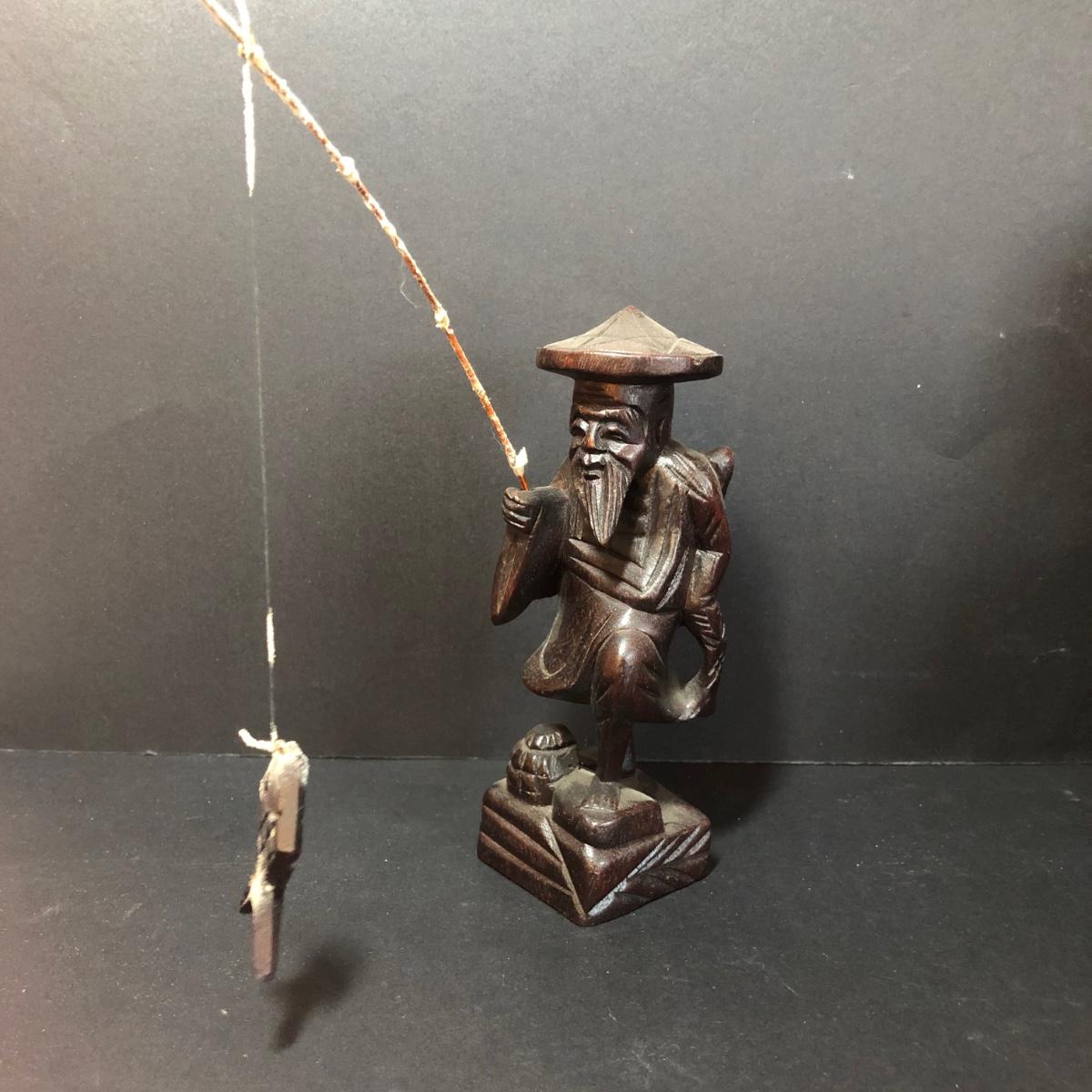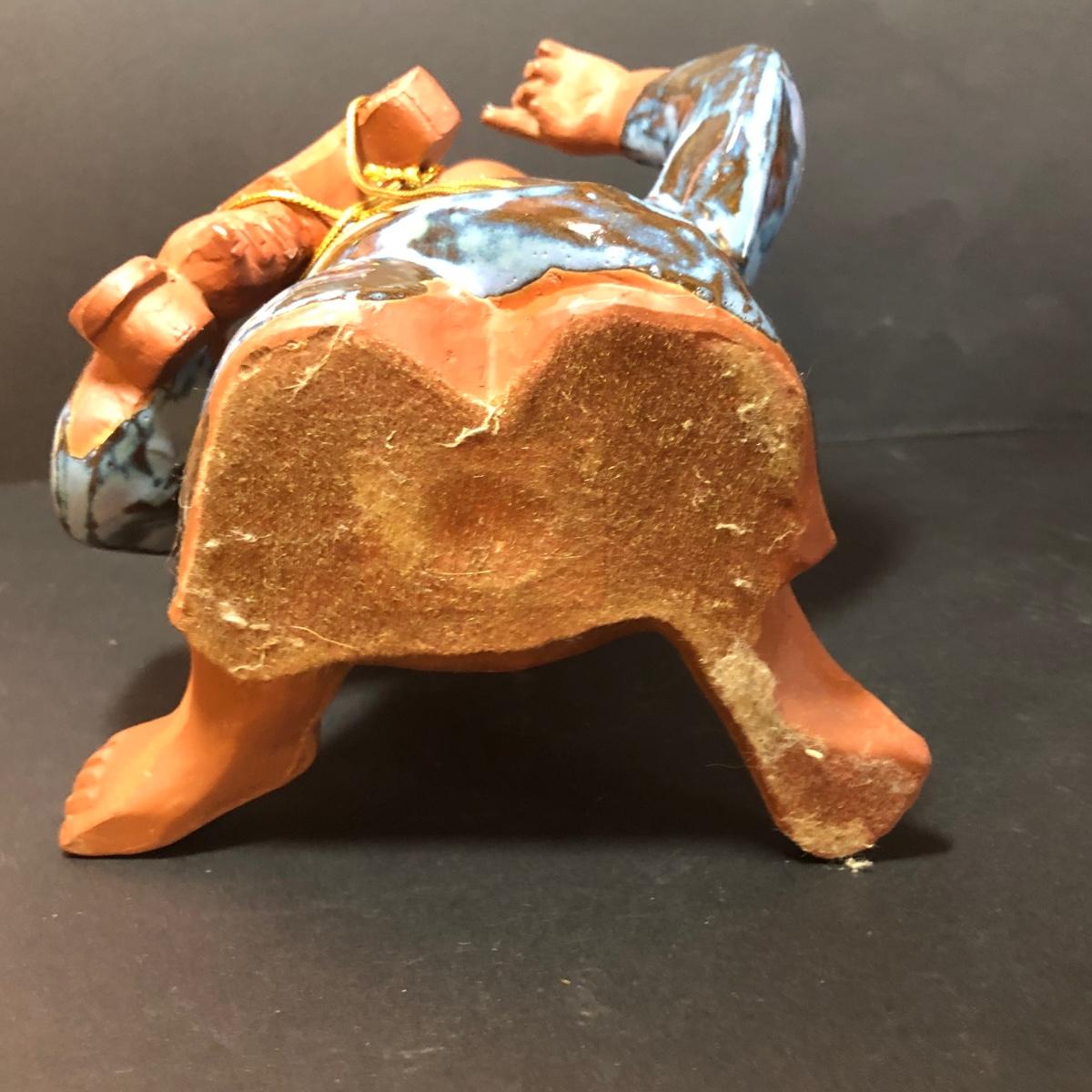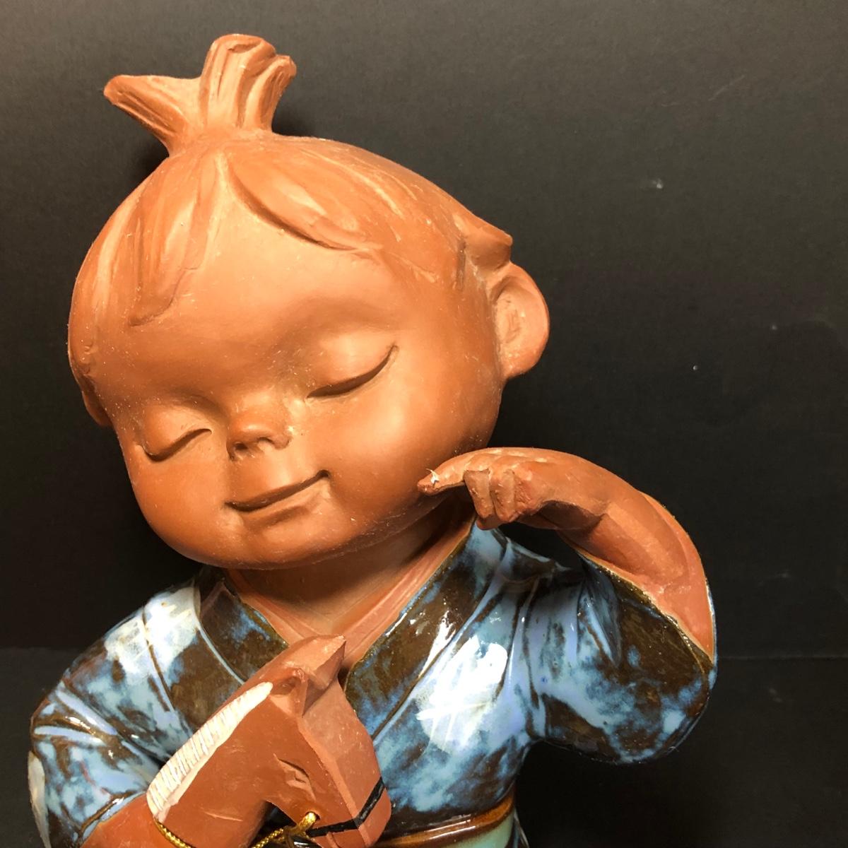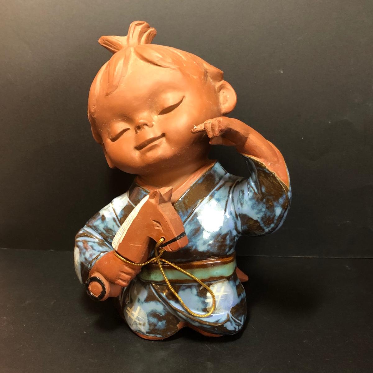 LOT 47M: Vintage Japanese Uctci Clay Pottery Girl, Brass Colored Turtle, Wooden Fisherman & More
