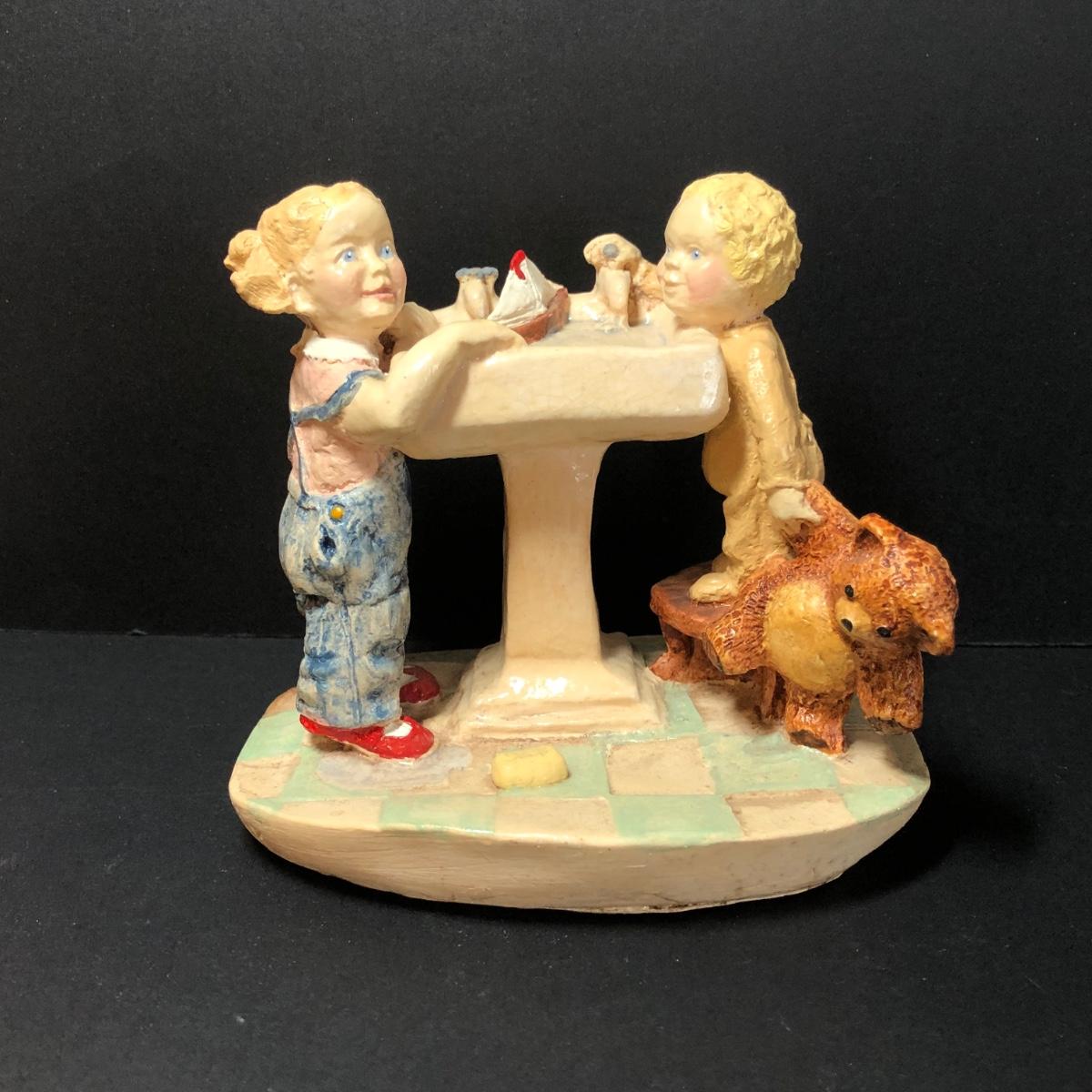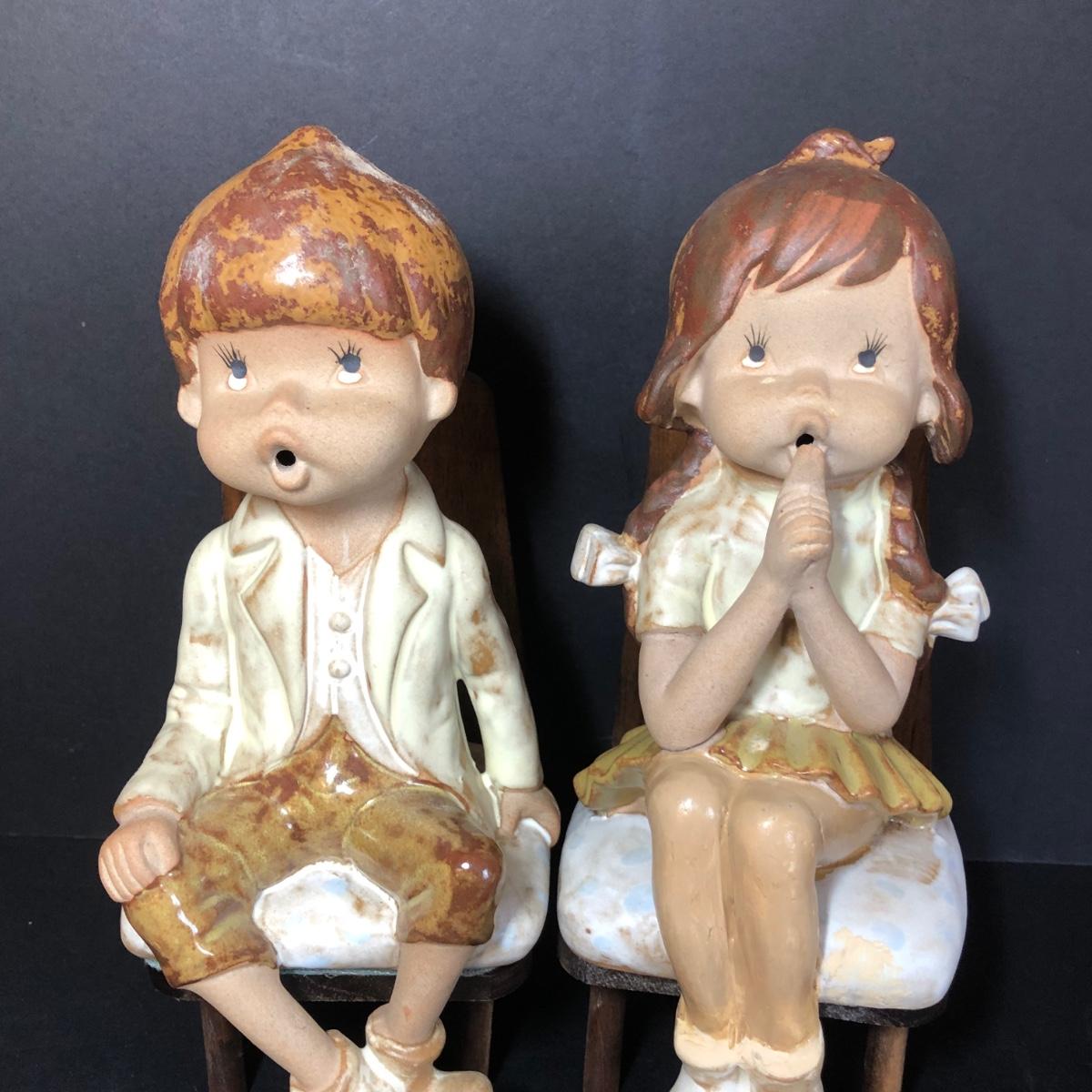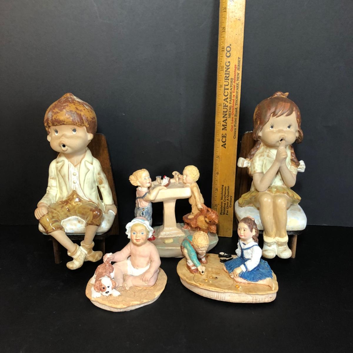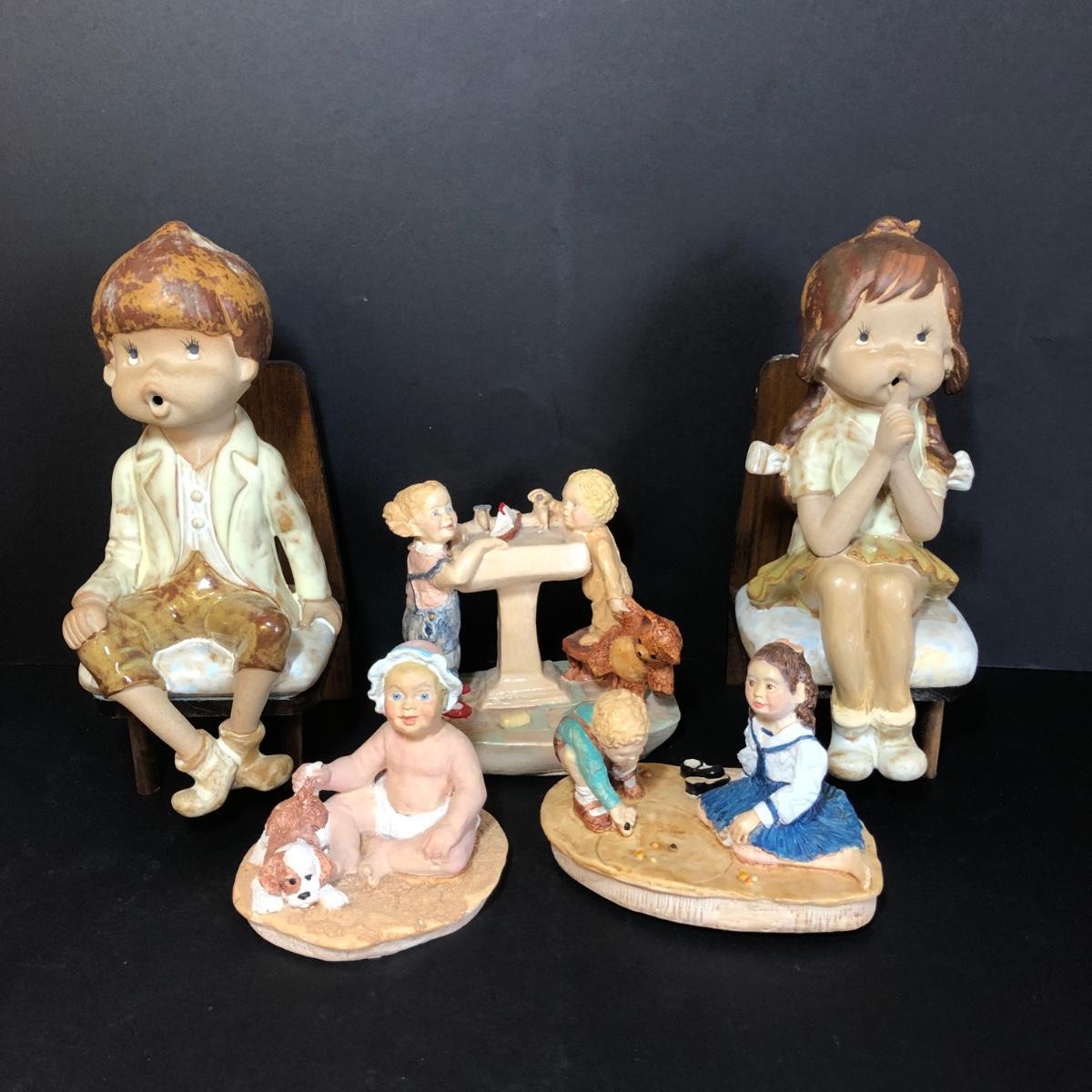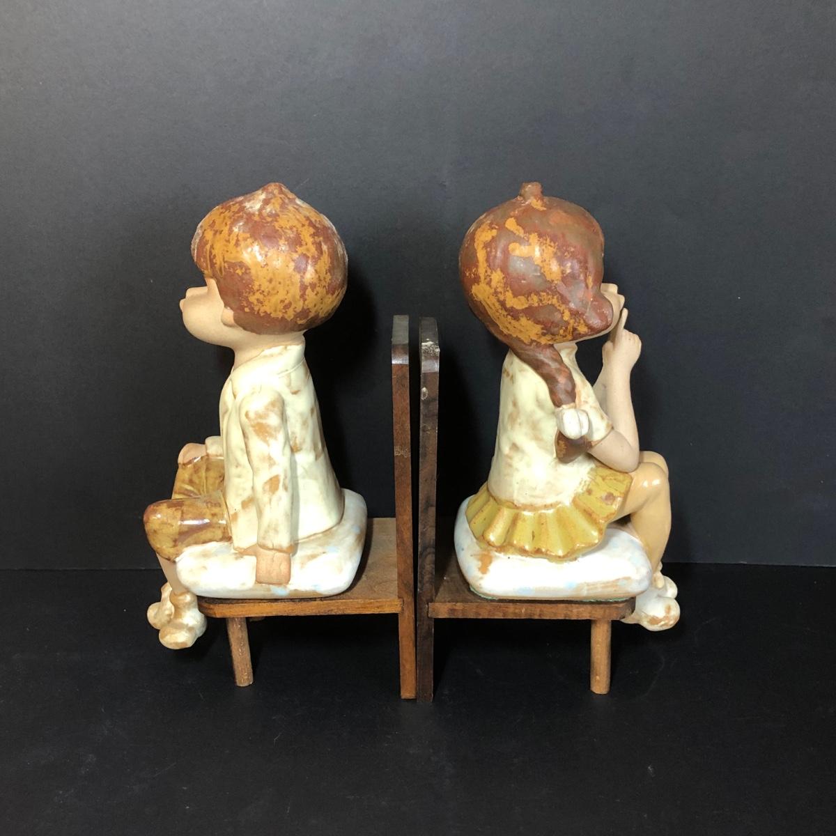 LOT 48M: Vintage Sitting Children Bookends & Pottery Figures