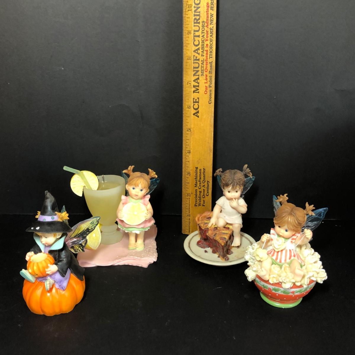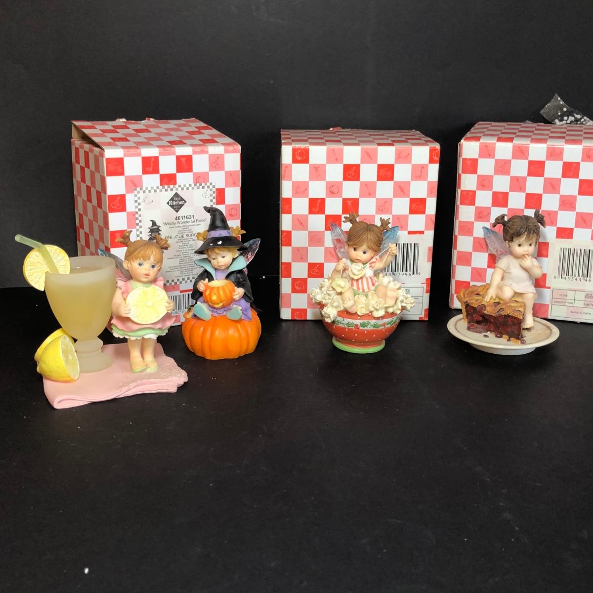 LOT 49M: My Little Kitchen Fairies Collection - 2005 Lemonade Fairie, 2008 Witchy Wonderful Fairie, Stringing Popcorn Fairie & 2001 Sugar Pie Fairie