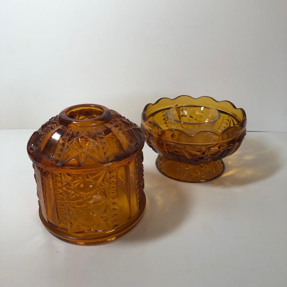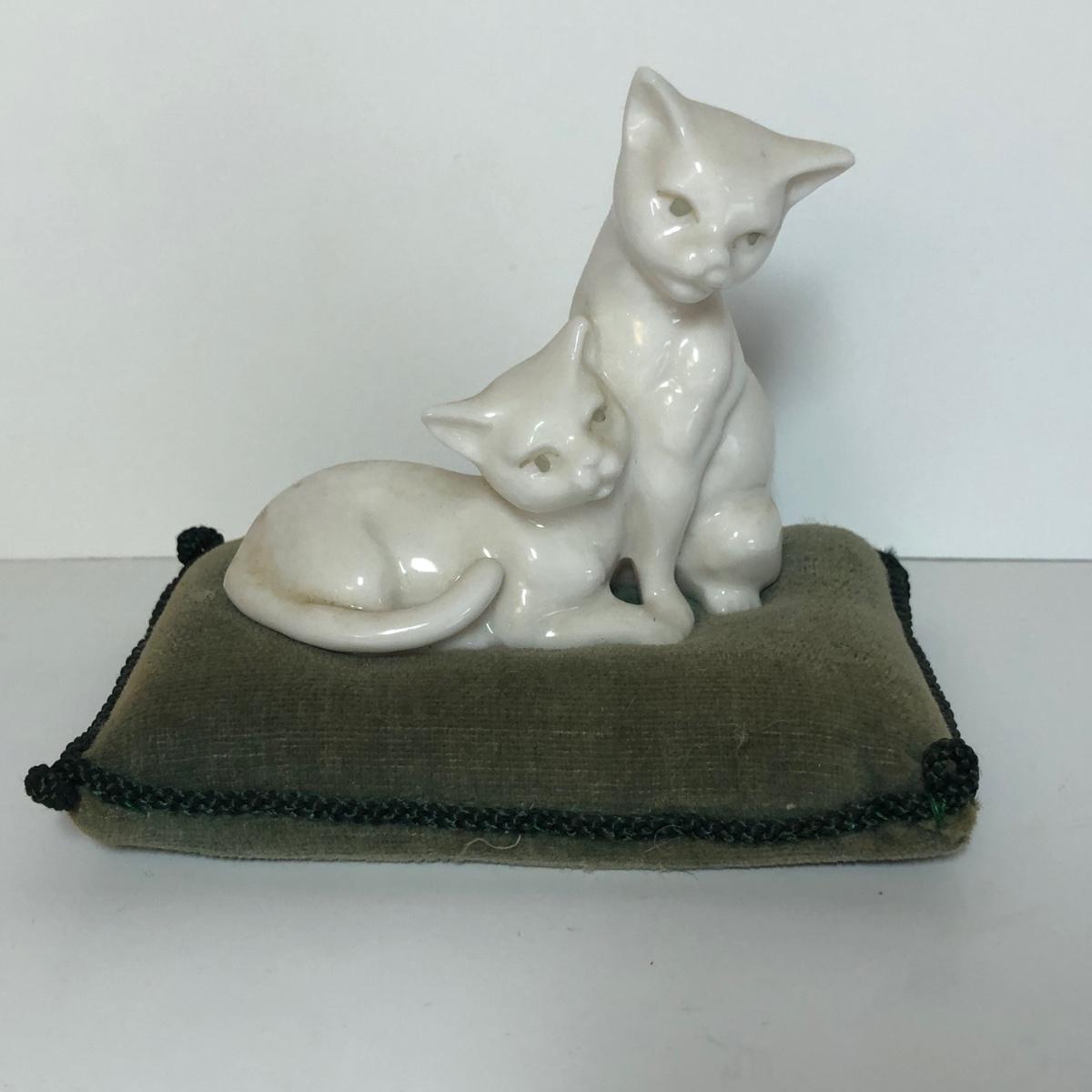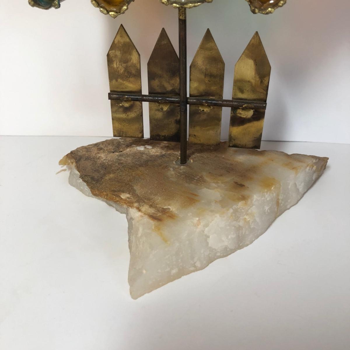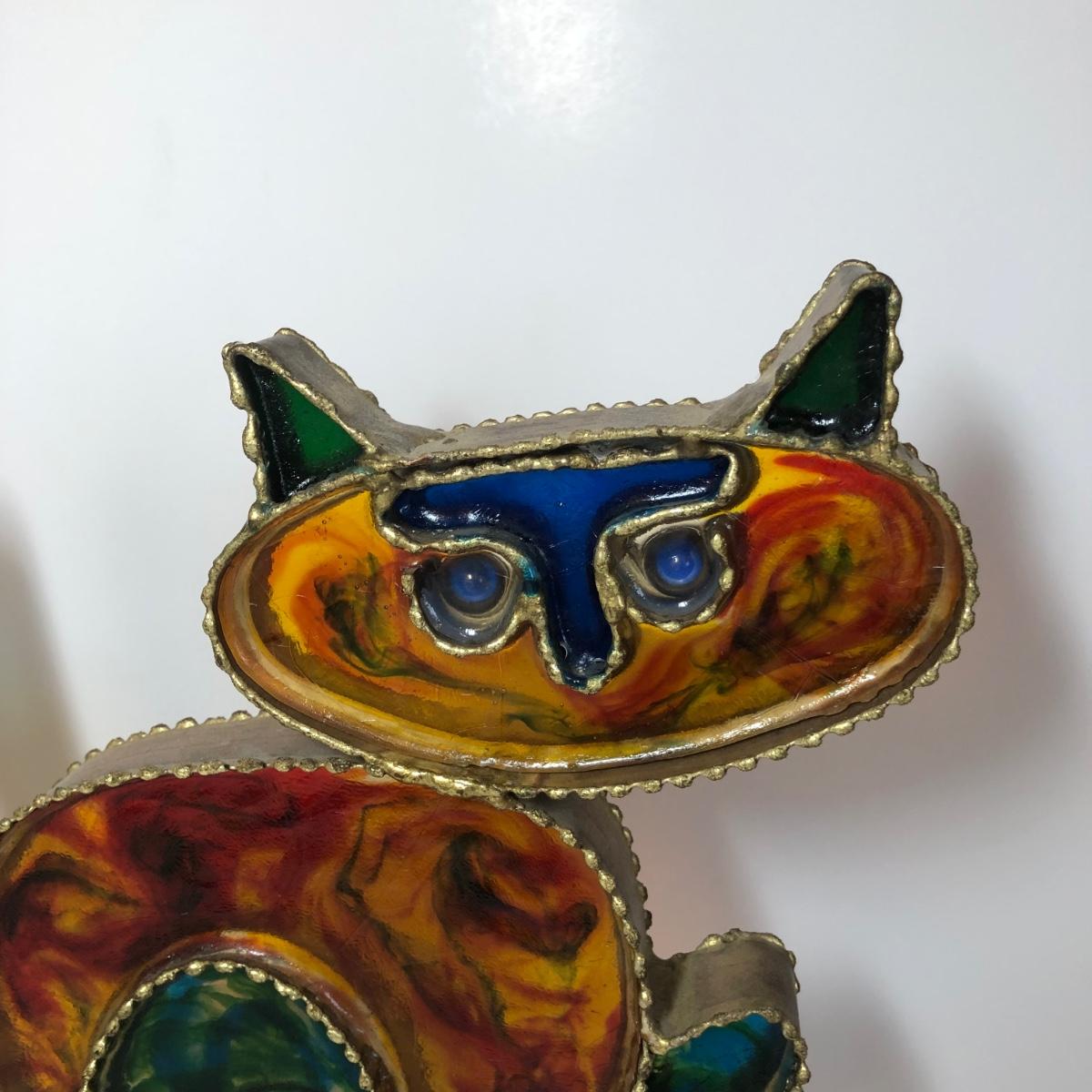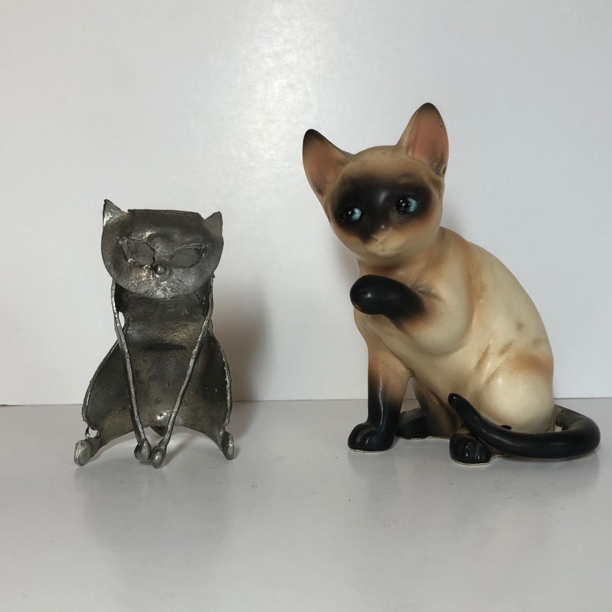 LOT 51M: Stained Glass Cat Sculpture, Miniature Clocks, Amber Glass Candle holder & Cat Figurines