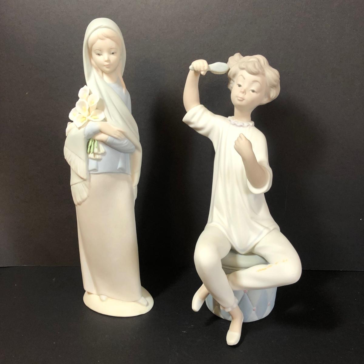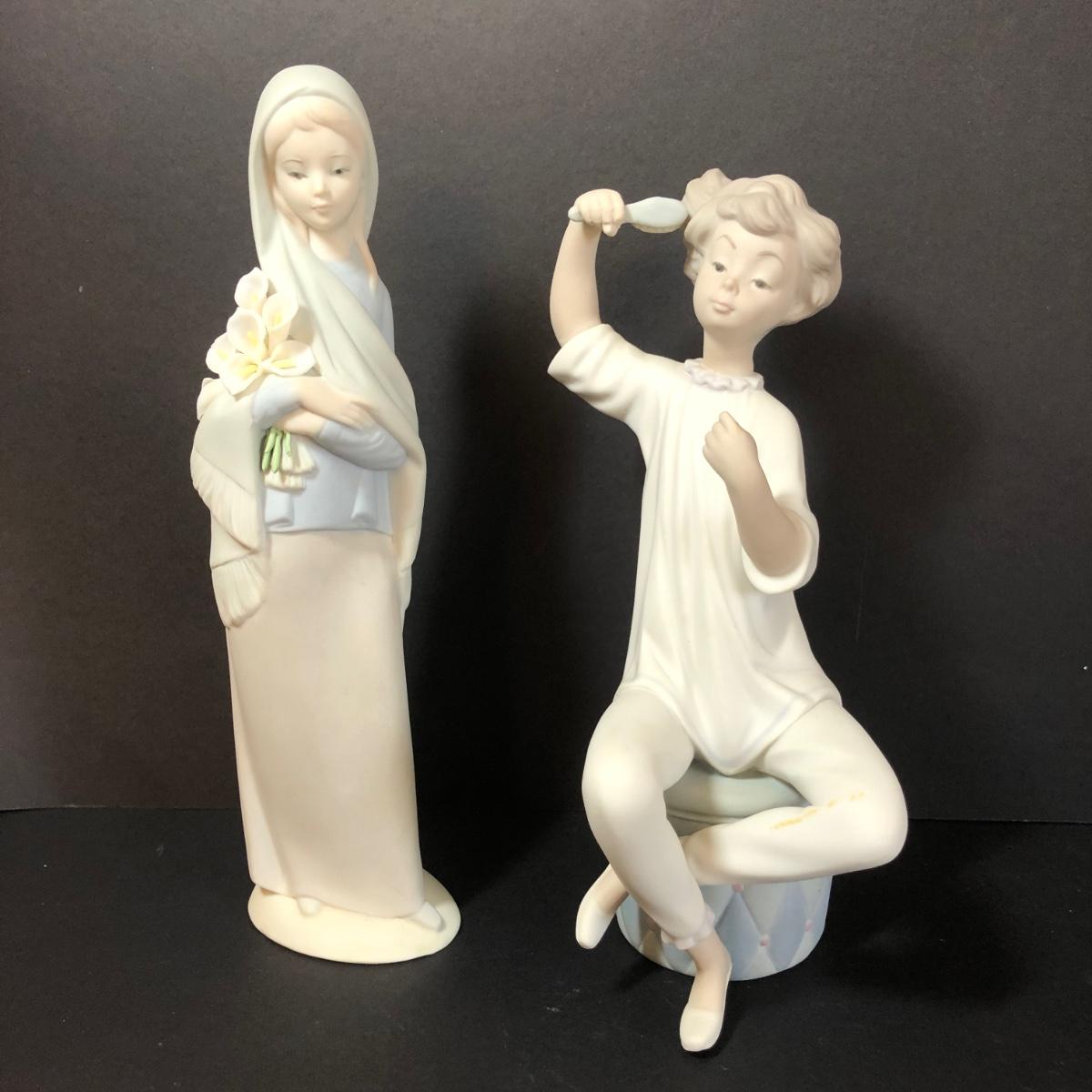 LOT 54M: Vintage Lladros - "Girl with Flowers" #4650 & "Girl with Brush and Mirror" #1081
