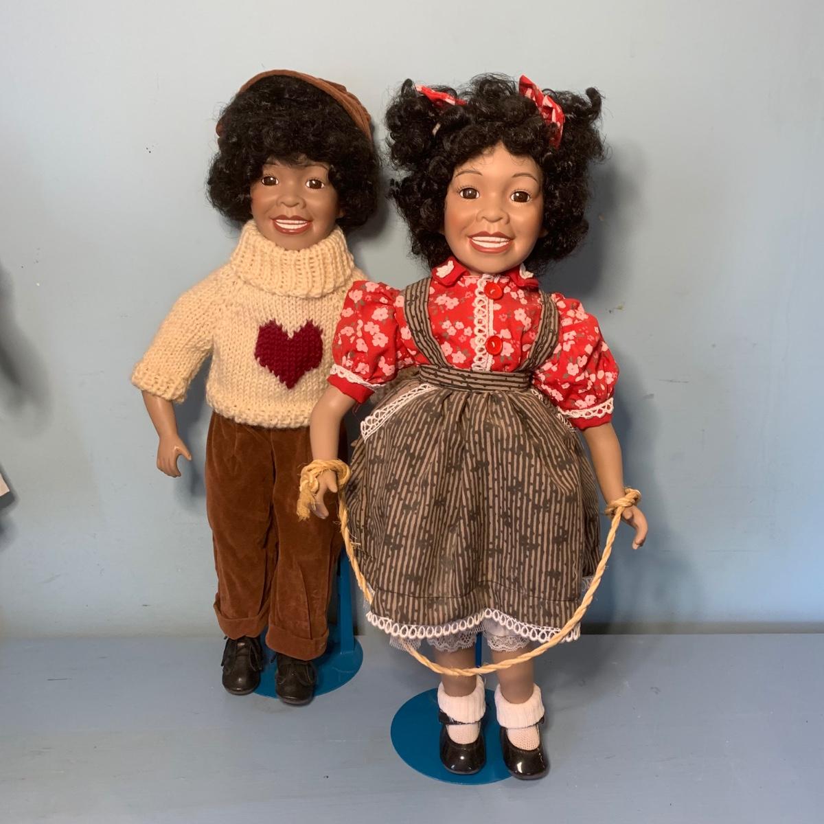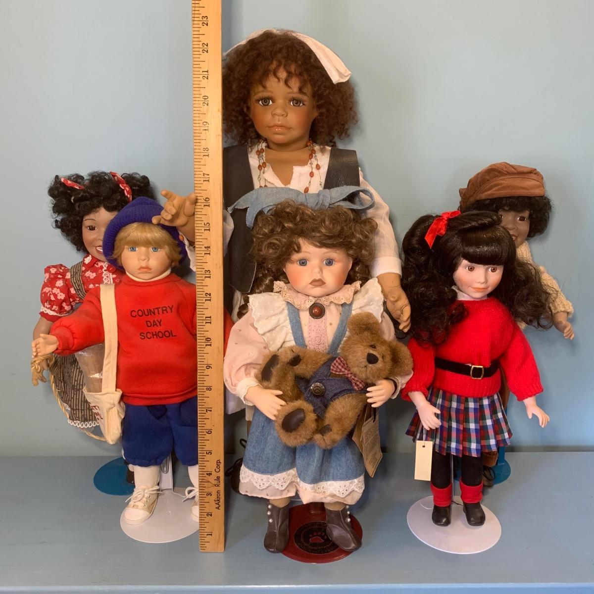 All dolls have been on display and will need a little TLC/gentle cleaning. As always, every effort is made to show any damage/wear and they may or may not be in their original clothes. While no dolls are shown with their boxes, there will be a box room available if you would like to try to find the box. It is not known if the COA are in the boxes and no COAs have been found, if found they will be made available.