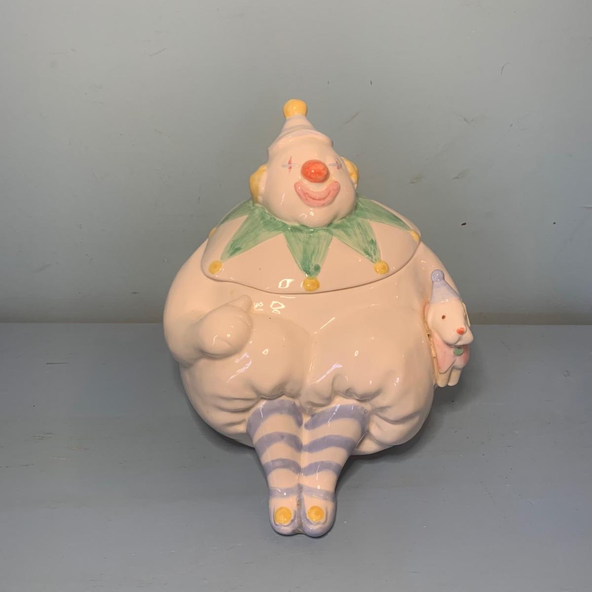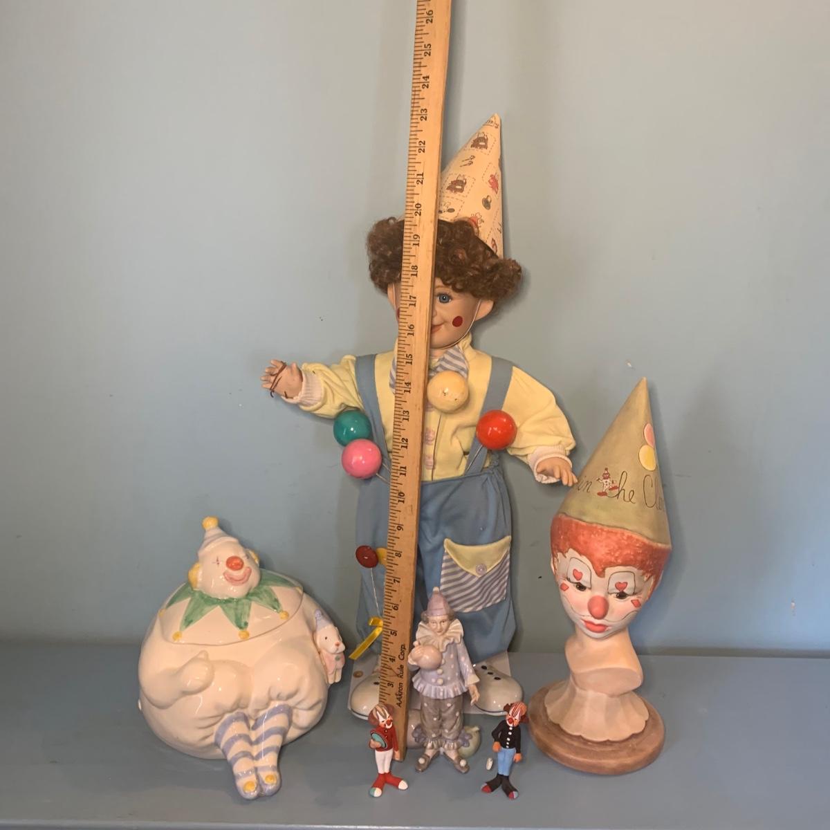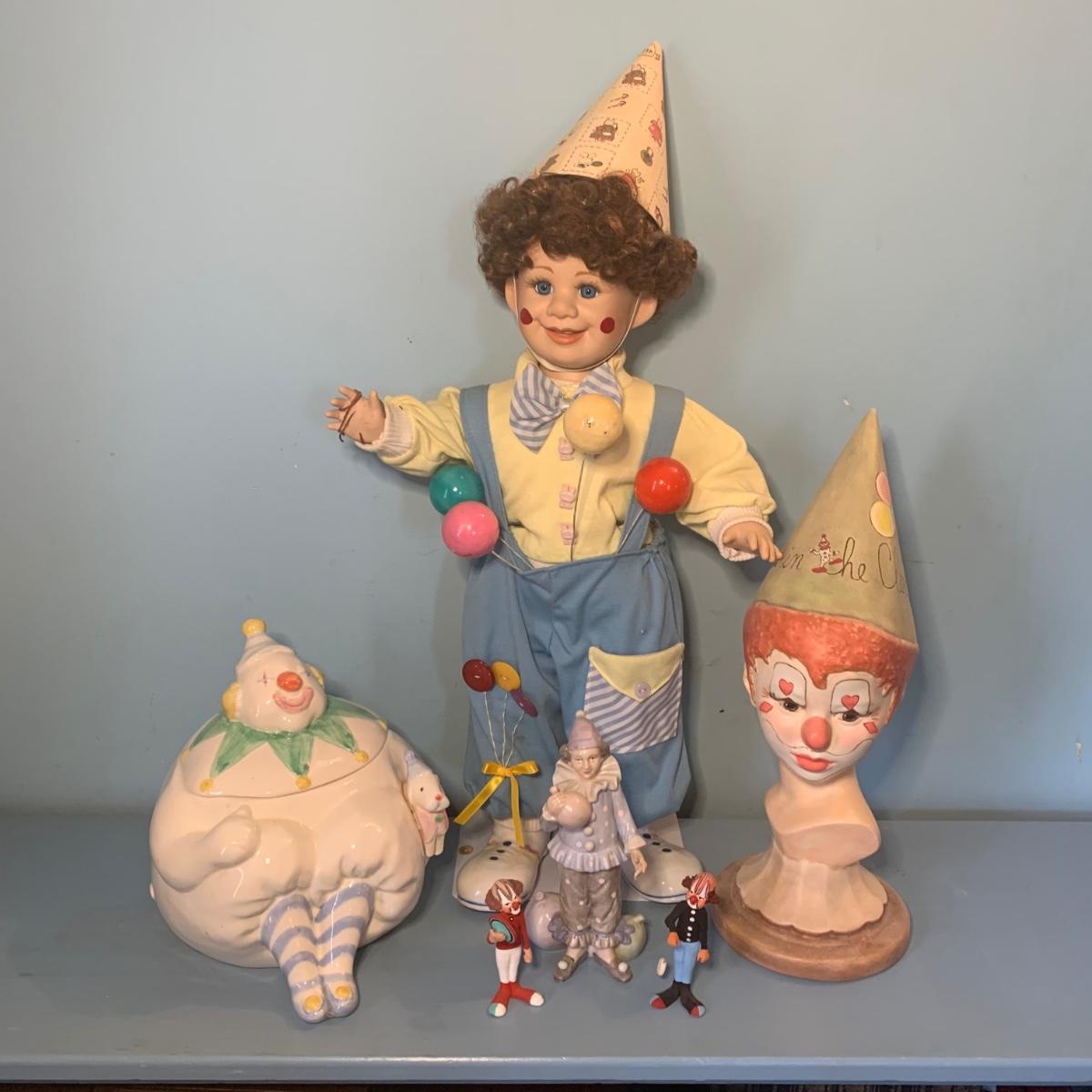 LOT 72R: Vintage Clown Collection: Fitz & Floyd Cookie Jar, Lefton, Moments Treasured Porcelain Doll & More