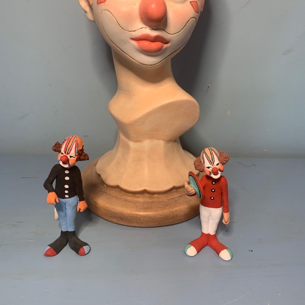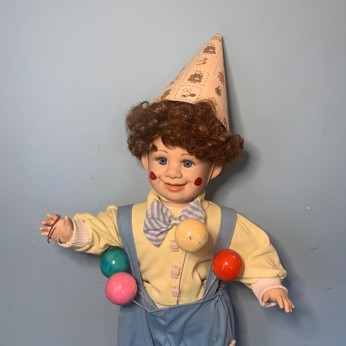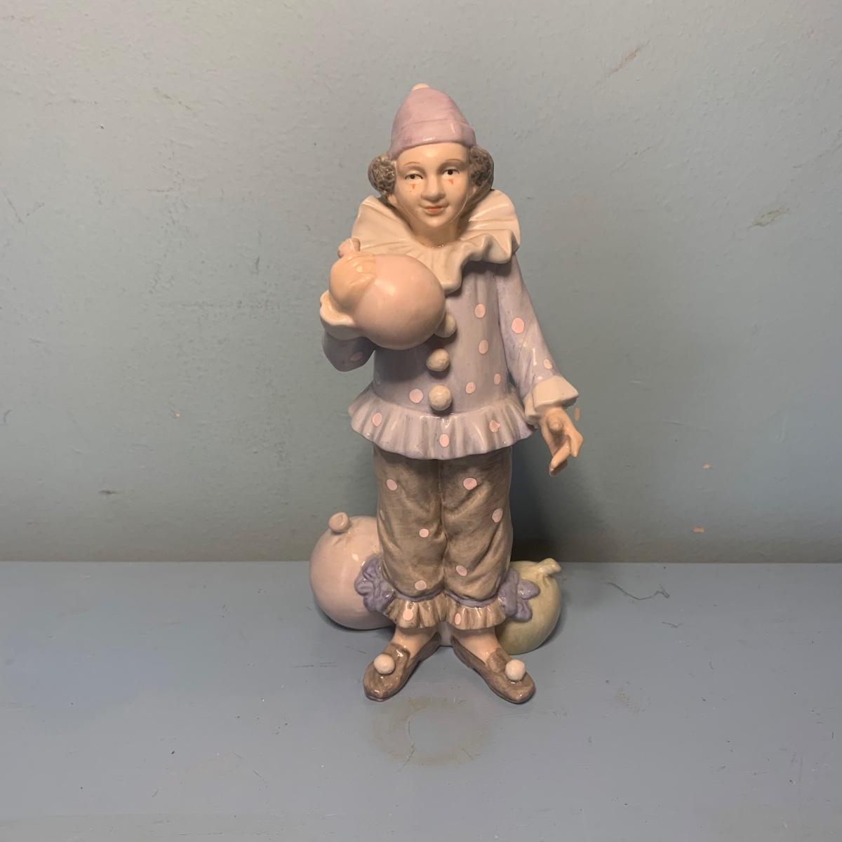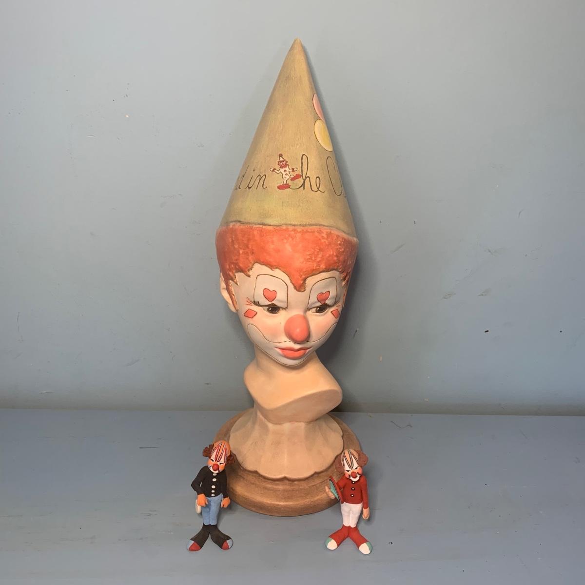 LOT 72R: Vintage Clown Collection: Fitz & Floyd Cookie Jar, Lefton, Moments Treasured Porcelain Doll & More