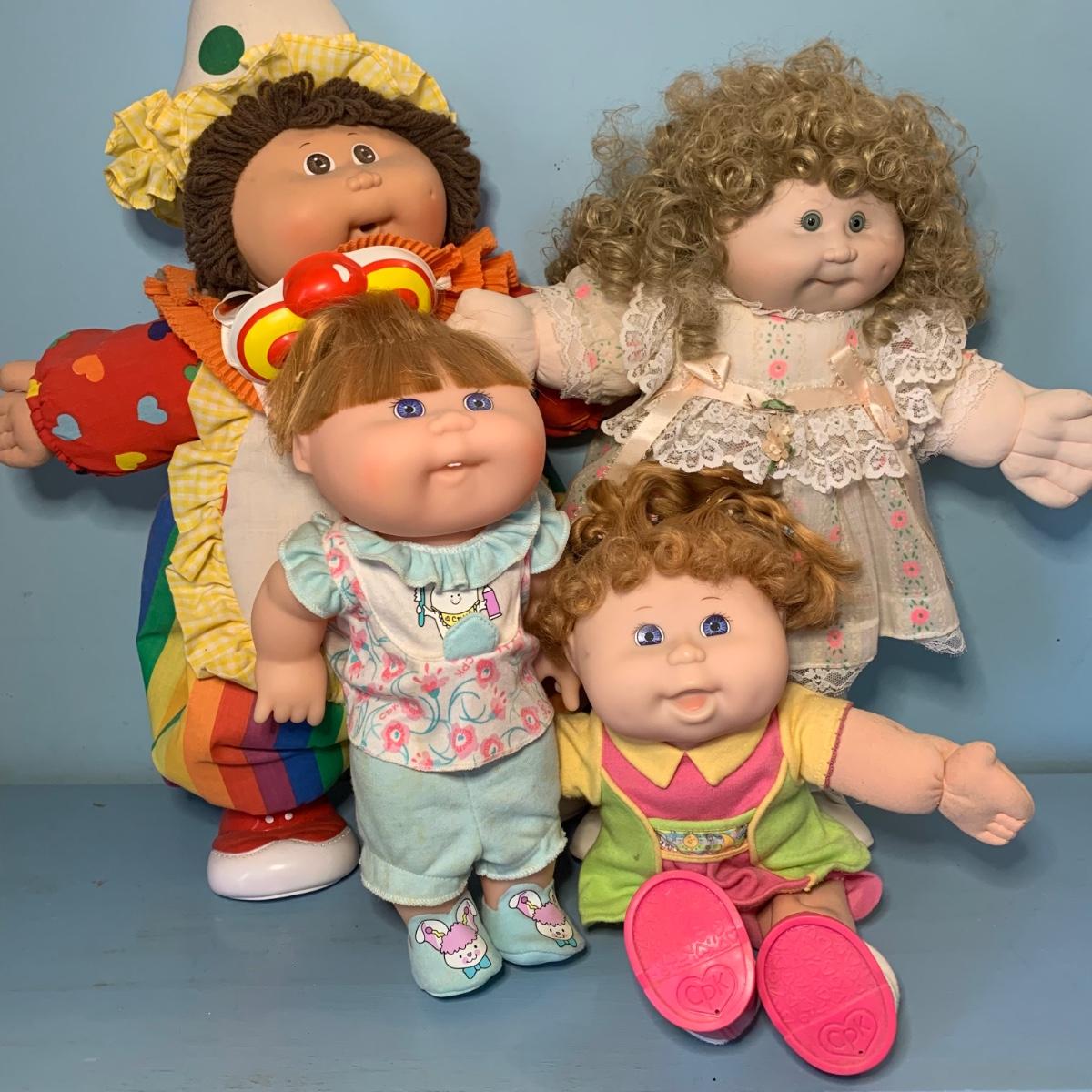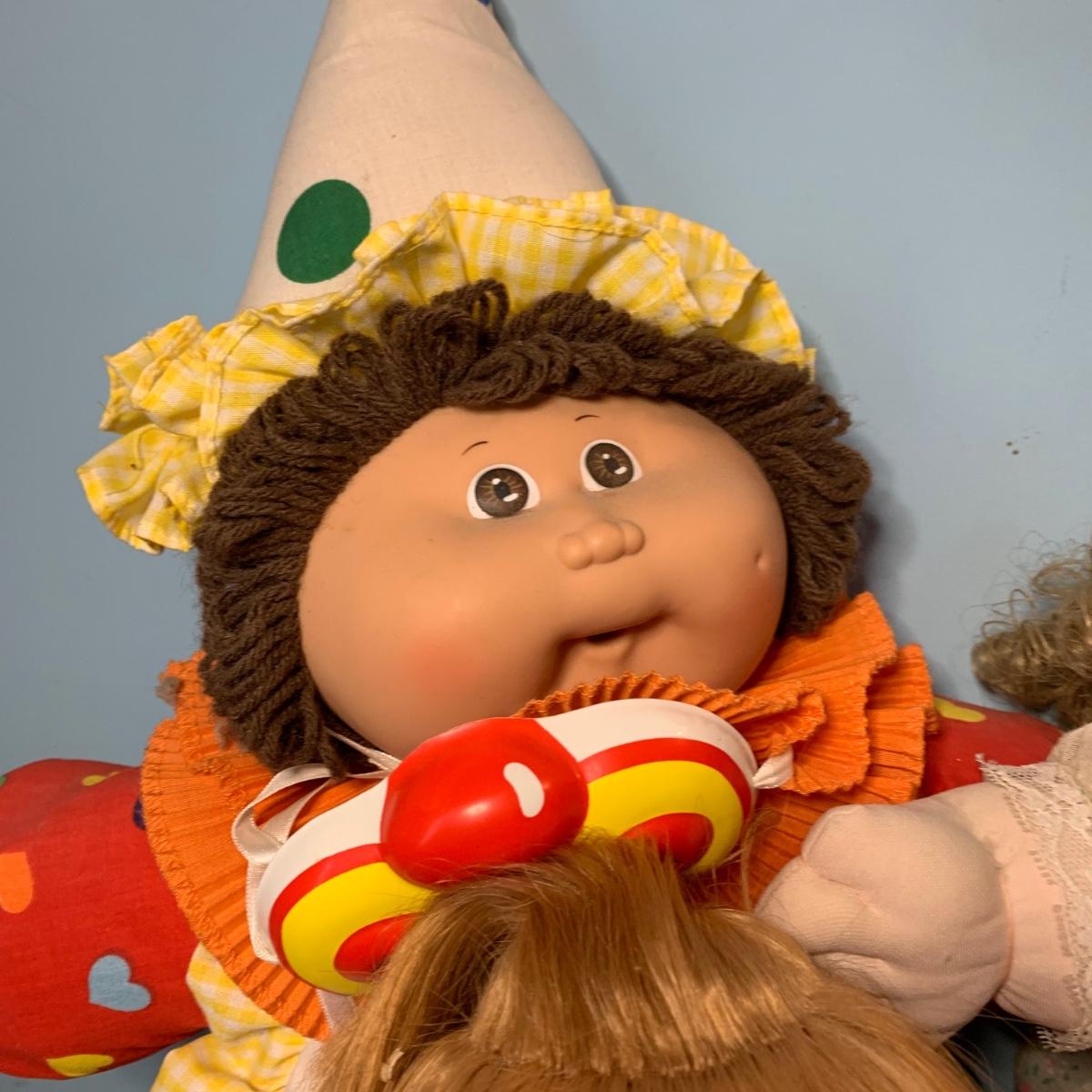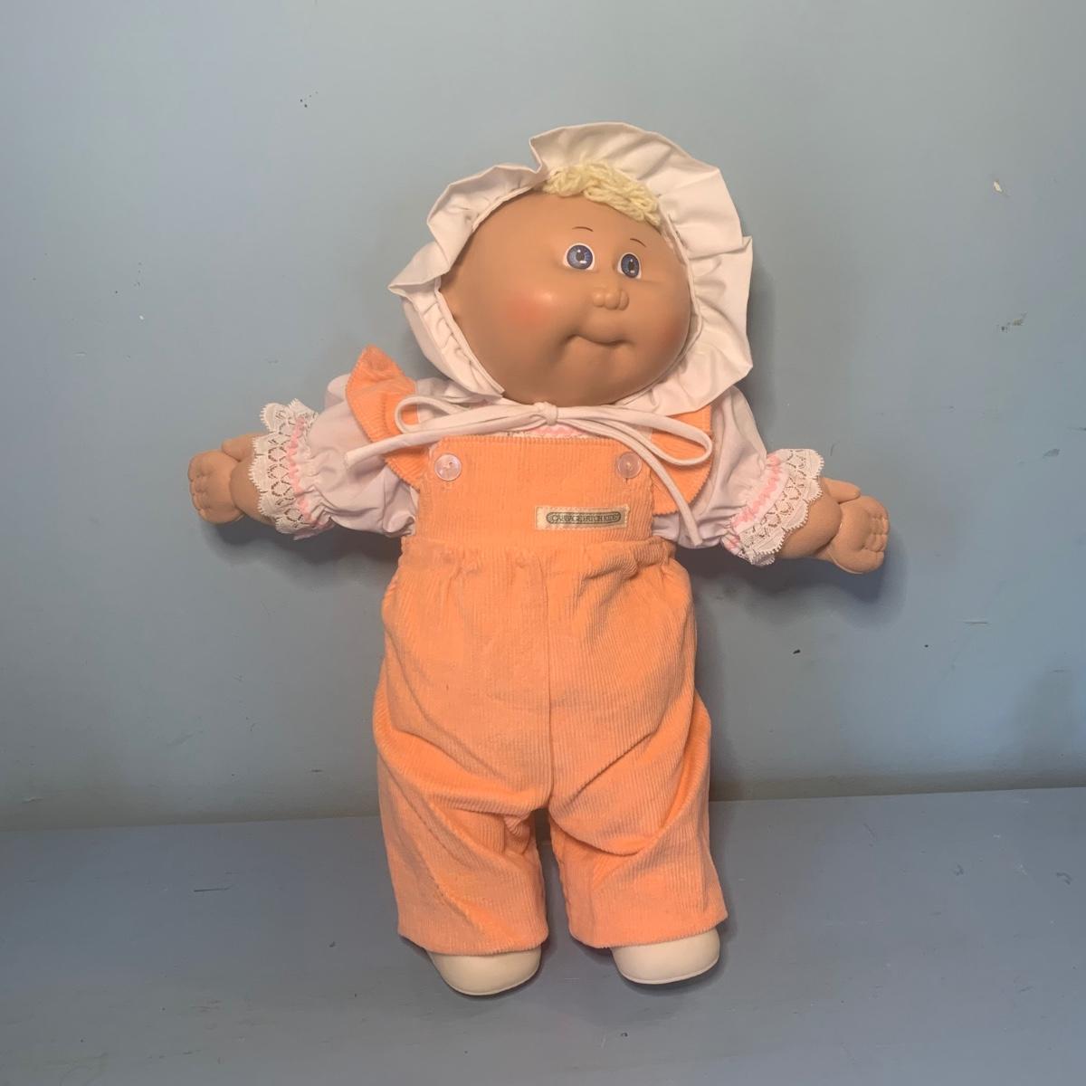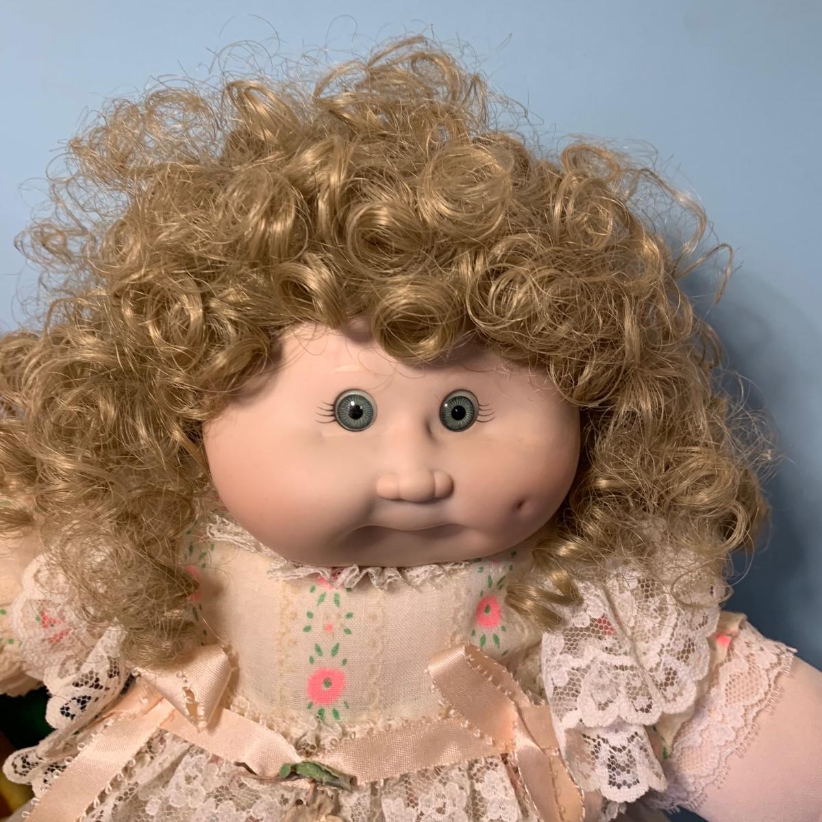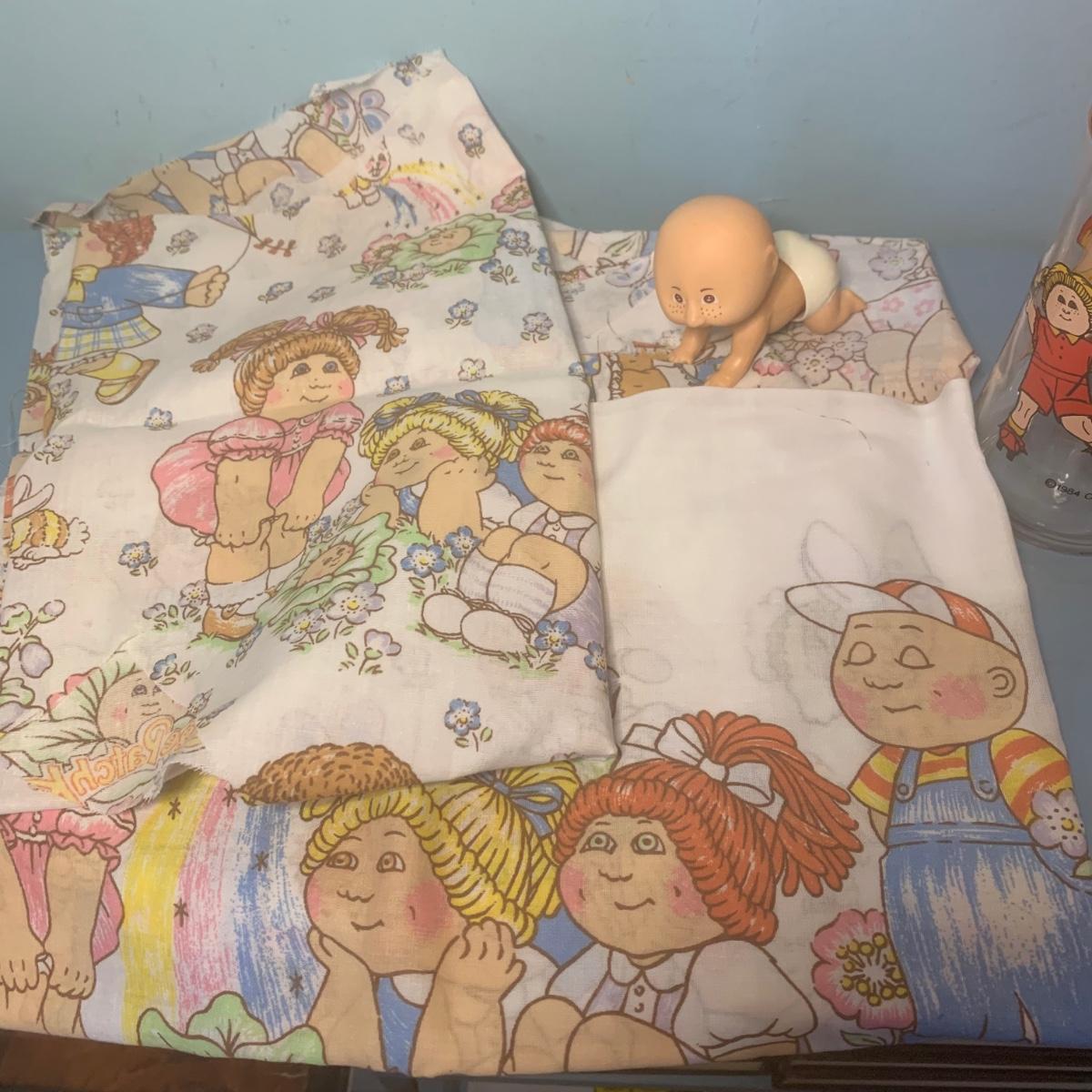 LOT 76R: Cabbage Patch: Lamp, Beverage Glasses Dolls, Porcelain Doll  & Unmeasured Fabric Scraps