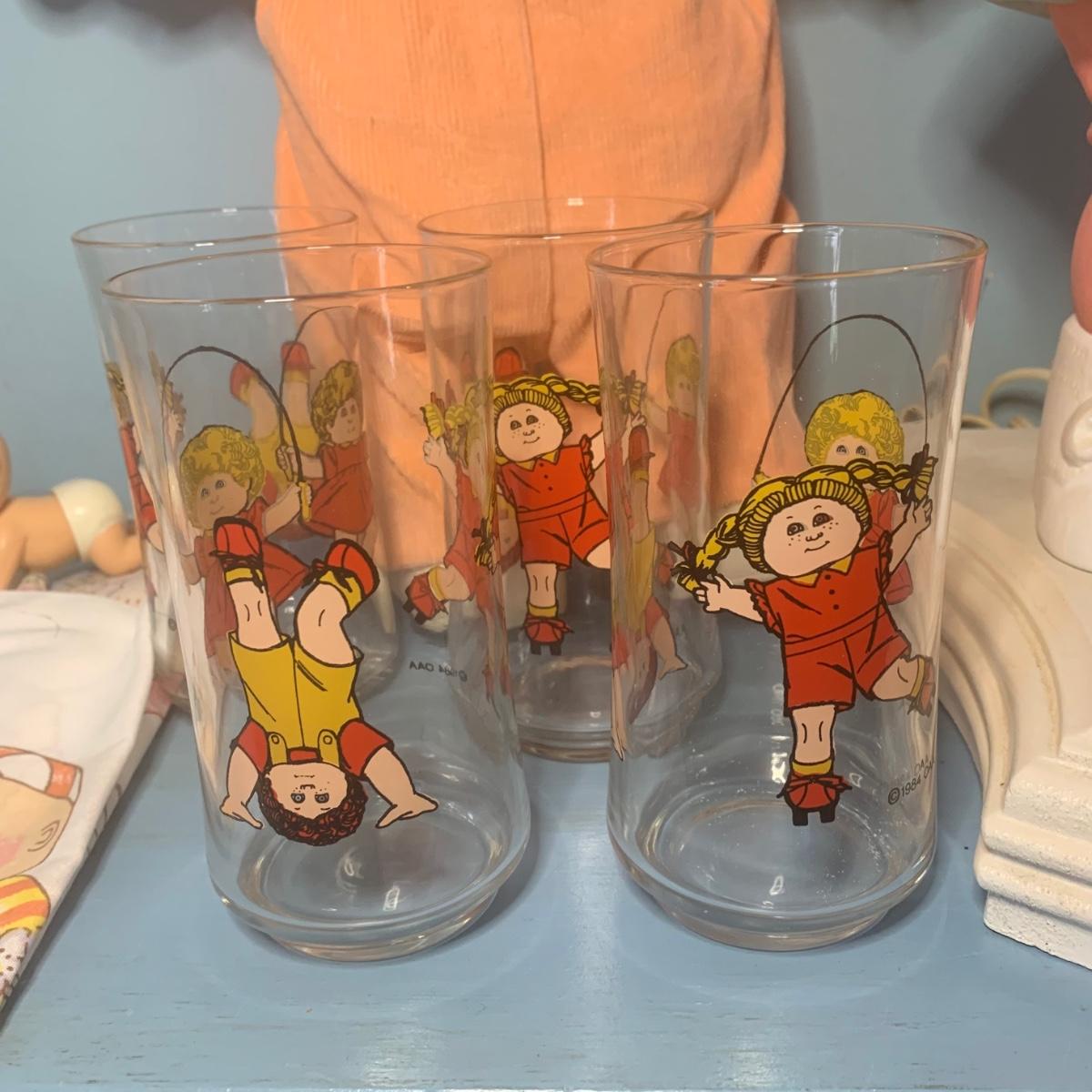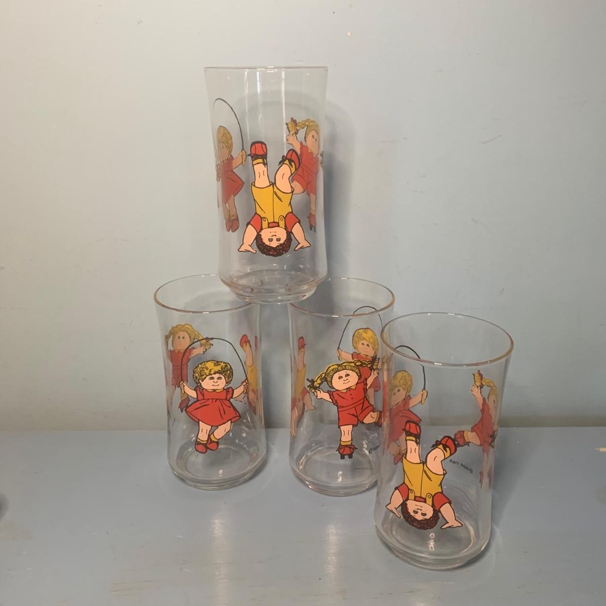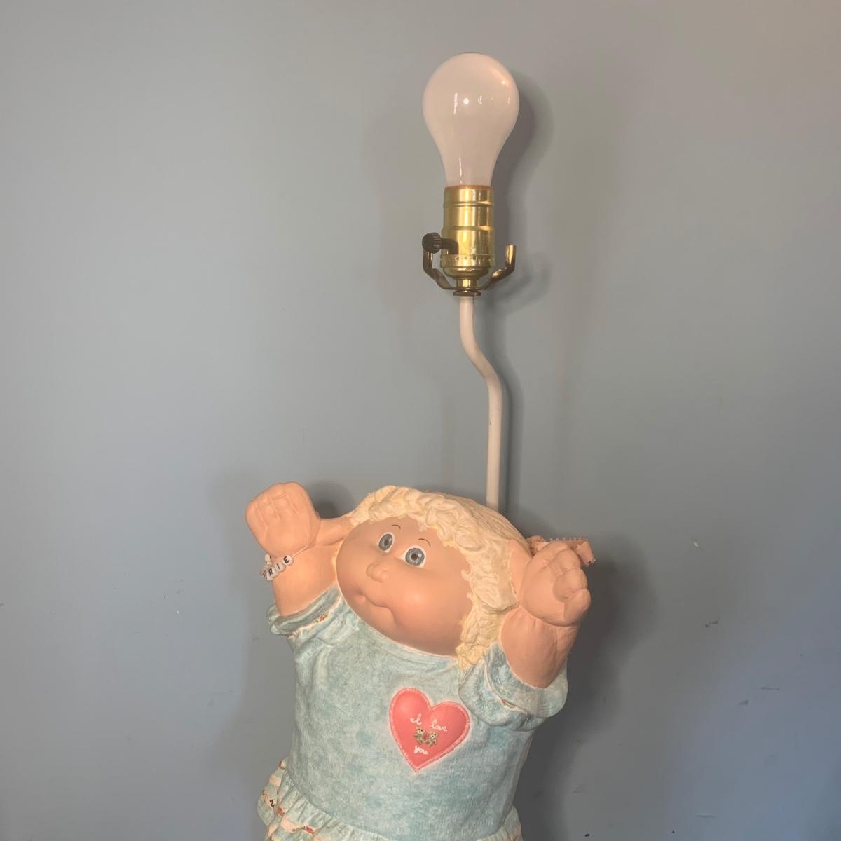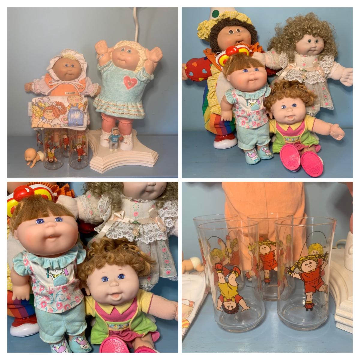 LOT 76R: Cabbage Patch: Lamp, Beverage Glasses Dolls, Porcelain Doll & Unmeasured Fabric Scraps