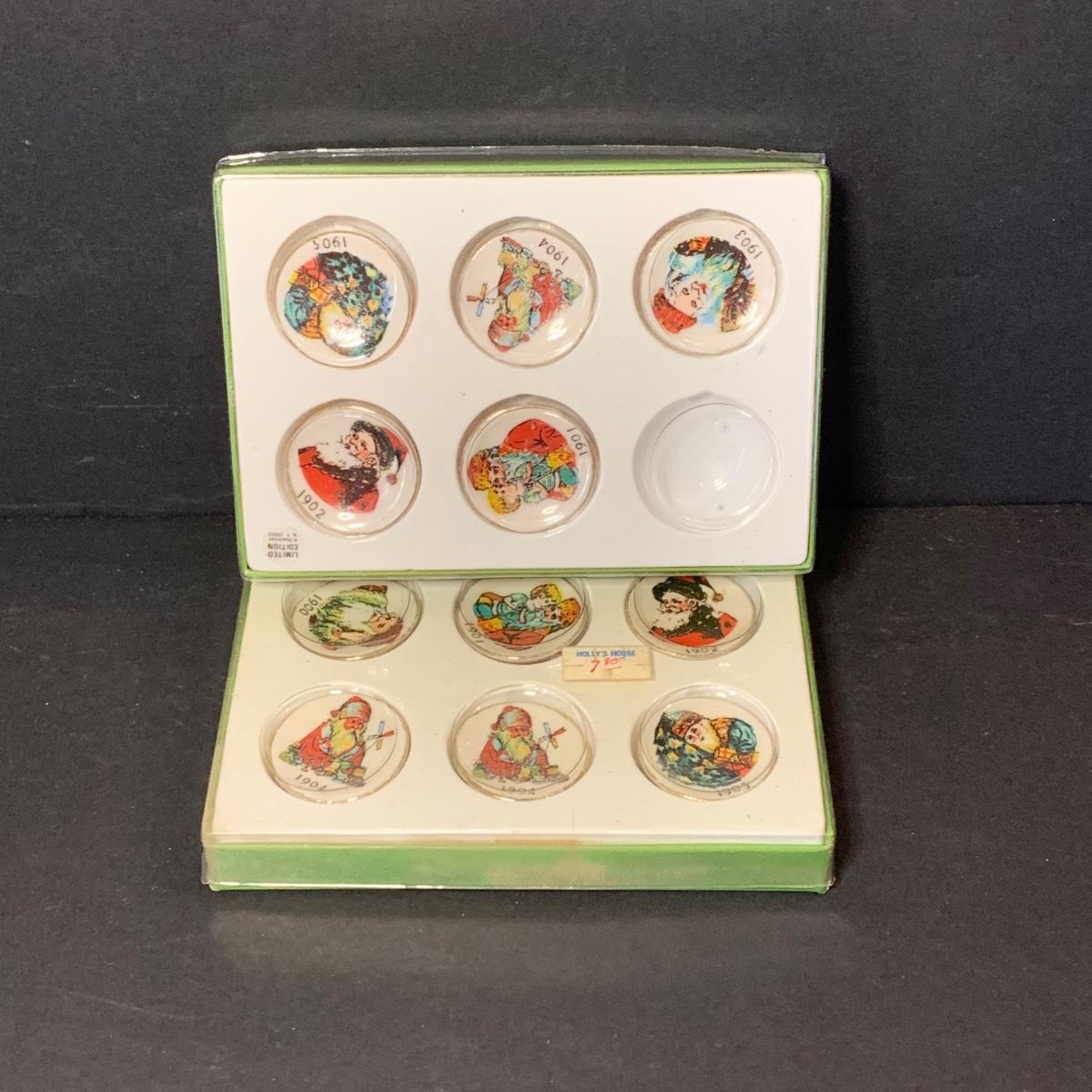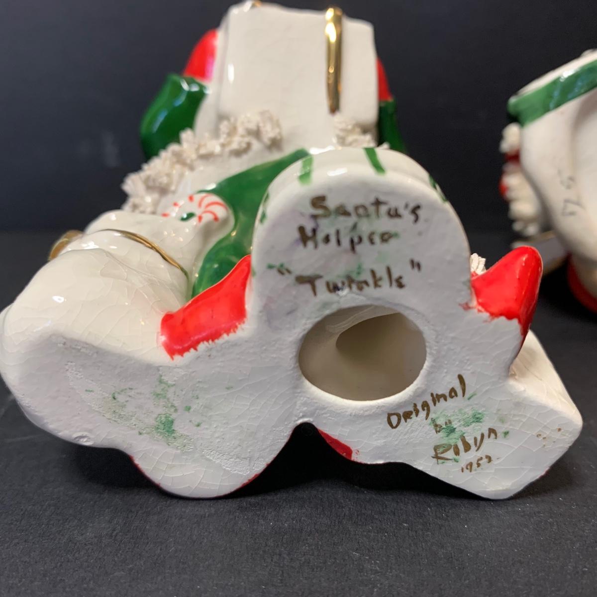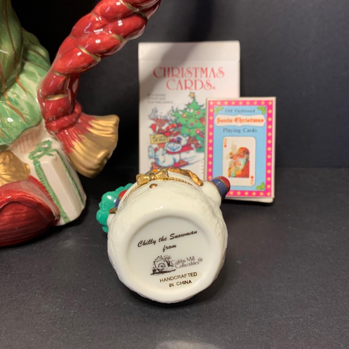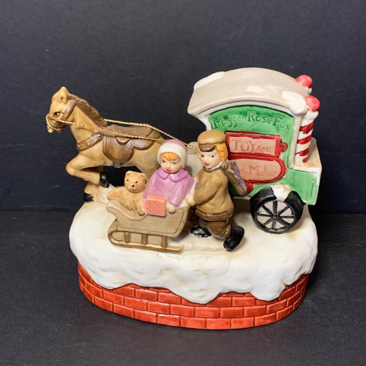 LOT 79R: Vintage Christmas & More: Spaghetti Trim Figures, Fitz & Floyd Pitcher, Miniature Porcelain Plates & Music Boxes