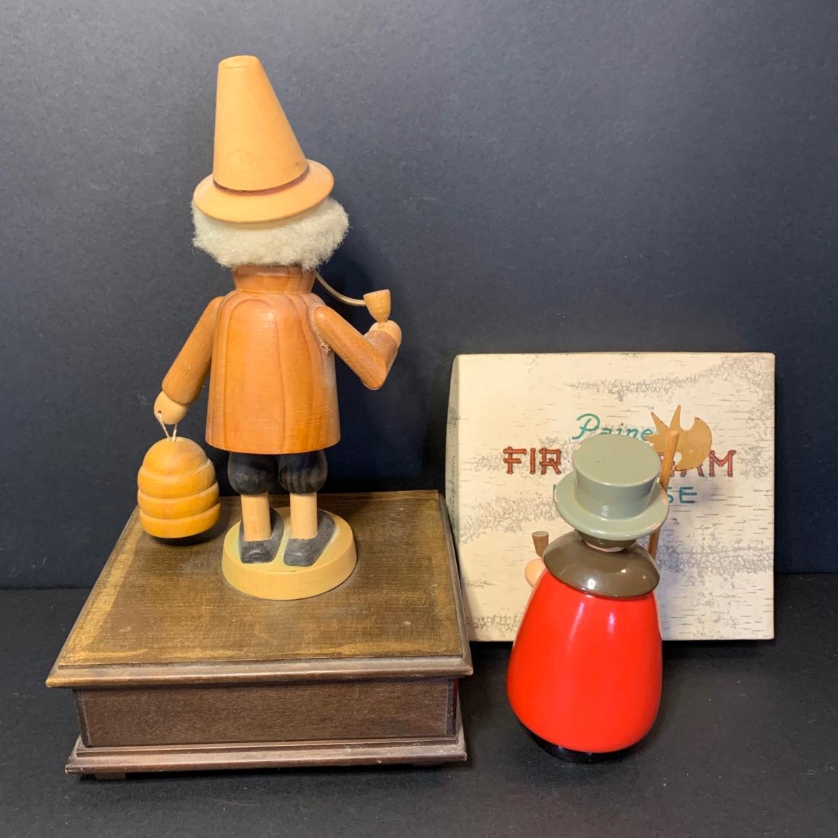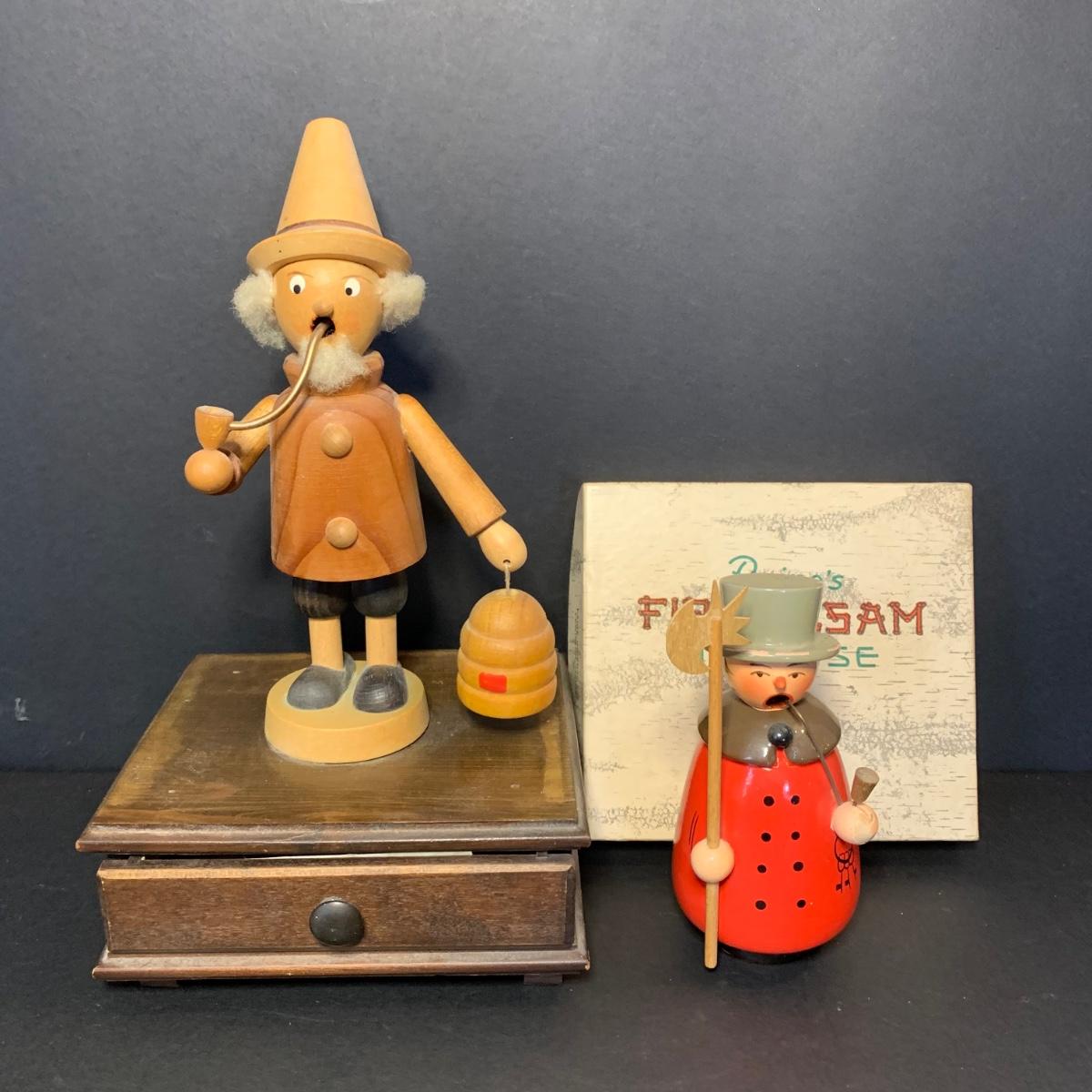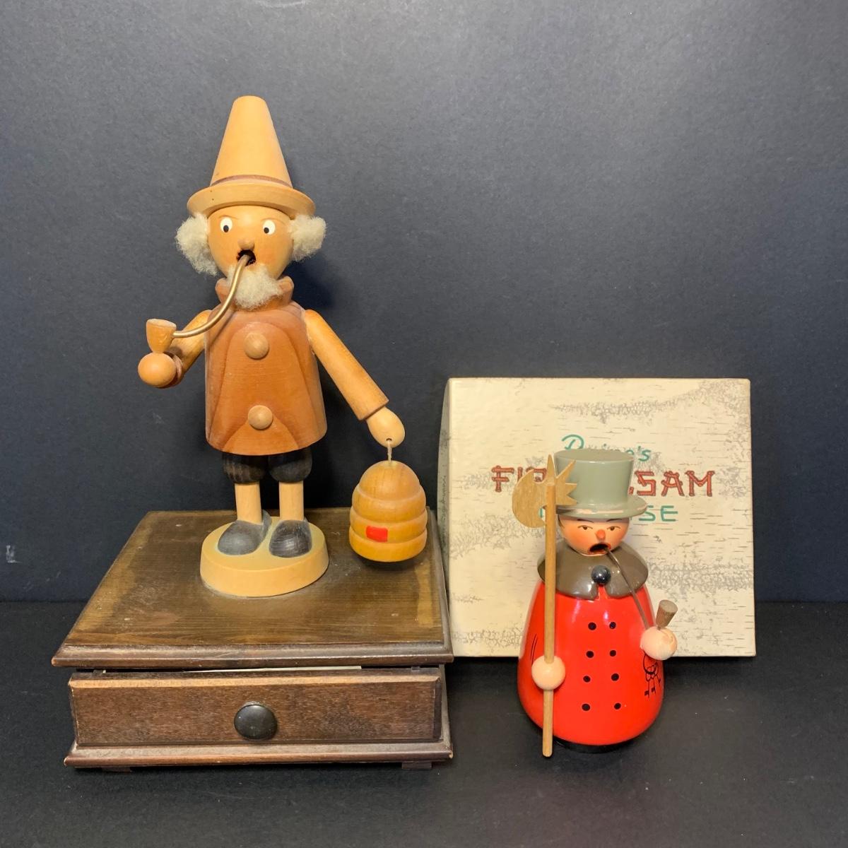 LOT 84R: German Wooden Smokers: Man w/Axe & Keys & Bee Keeper on Music Box