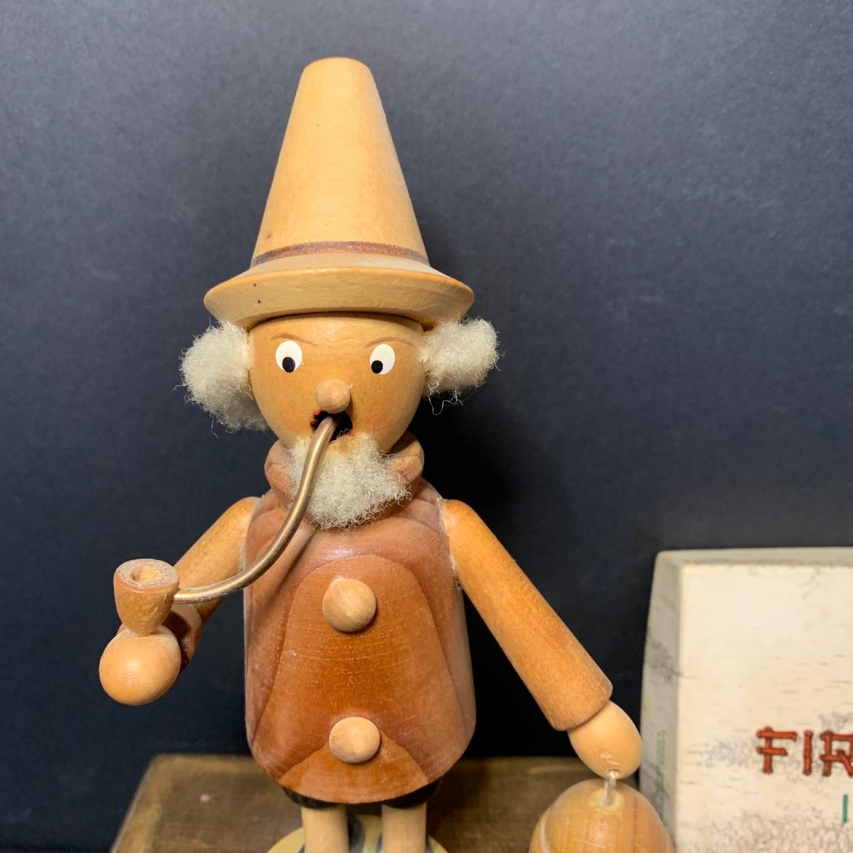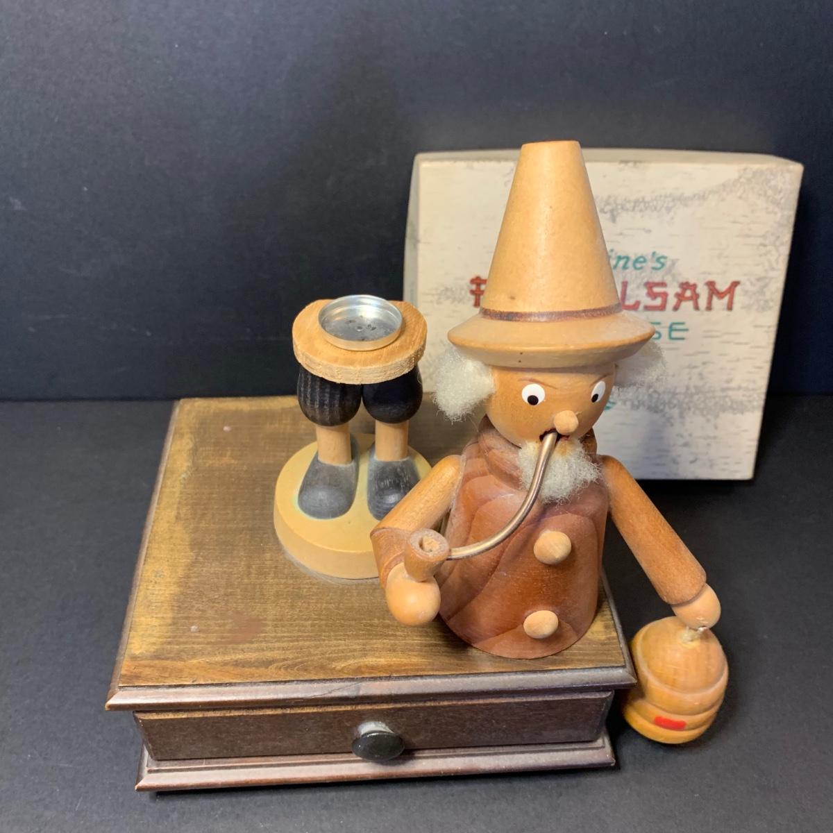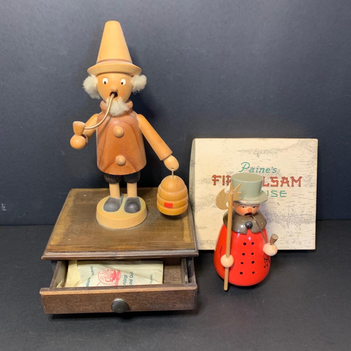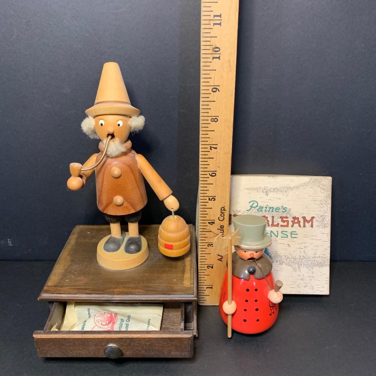 LOT 84R: German Wooden Smokers: Man w/Axe & Keys & Bee Keeper on Music Box