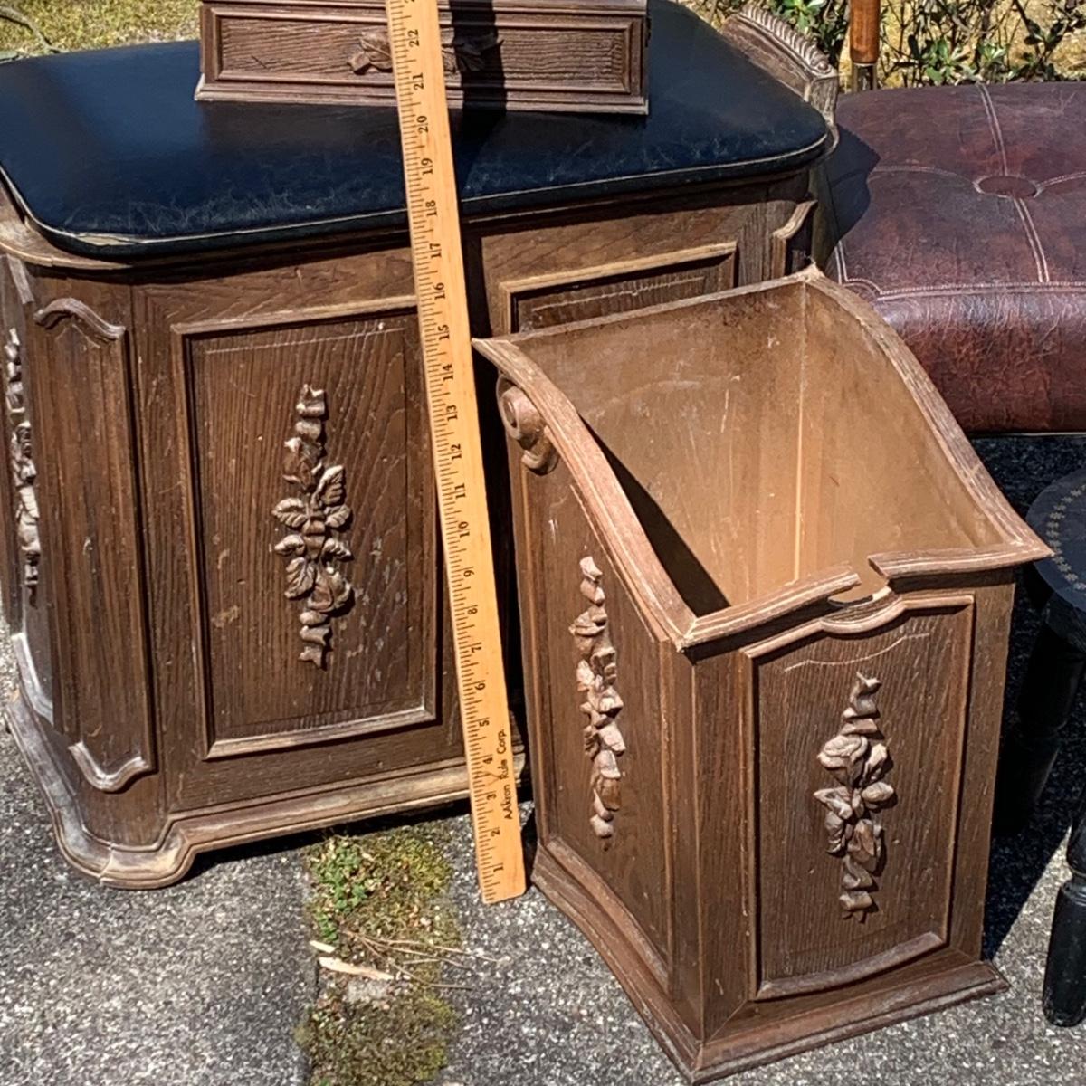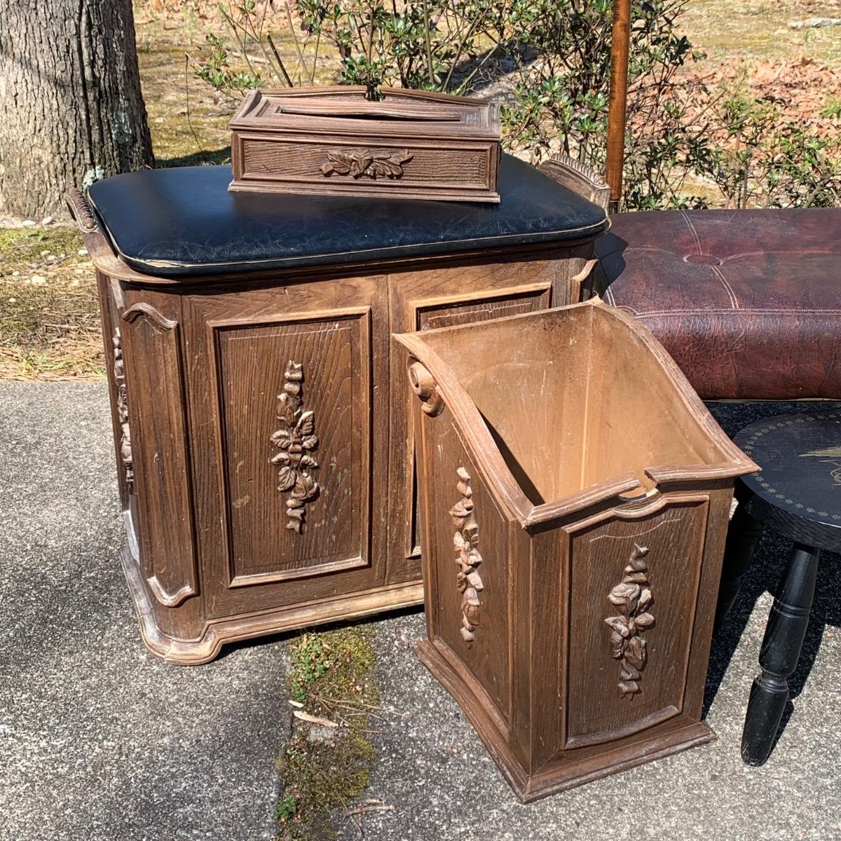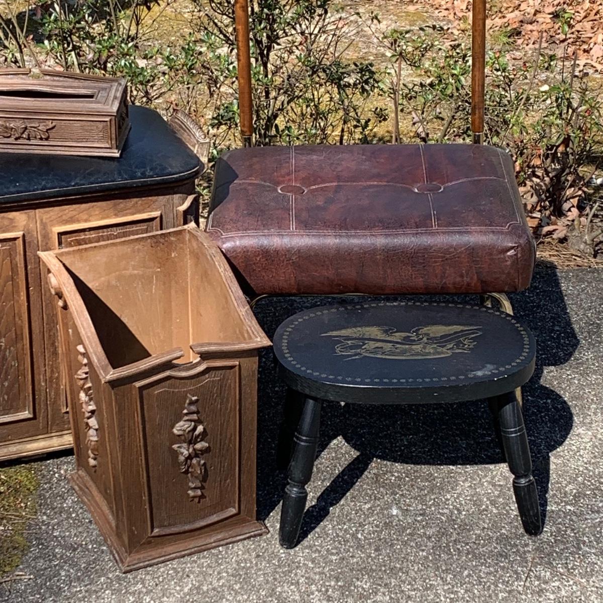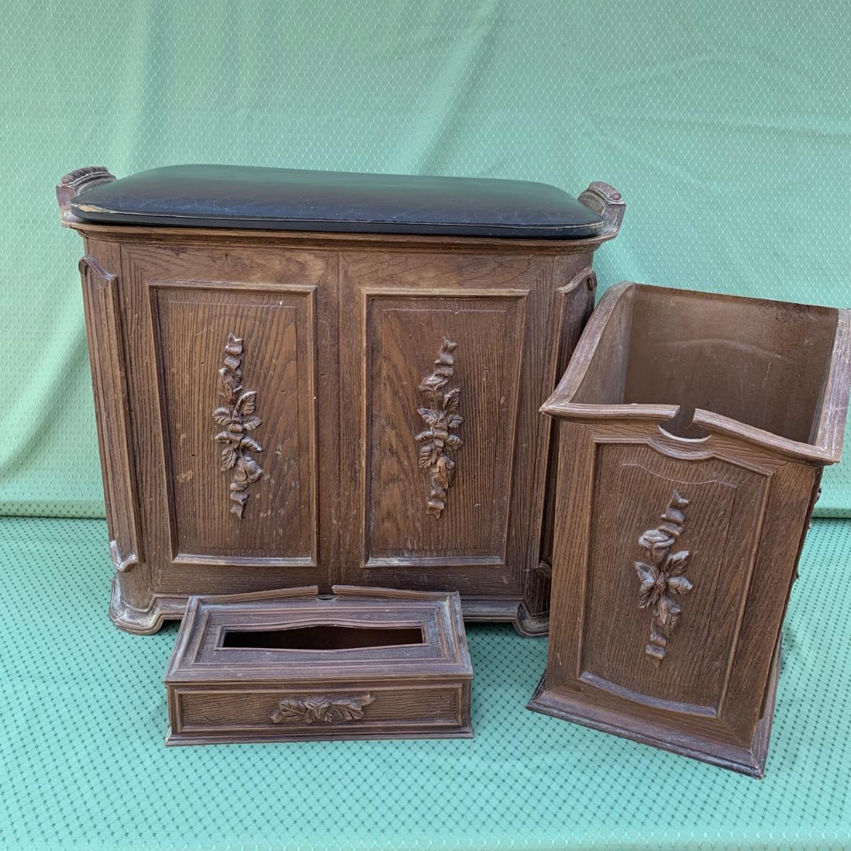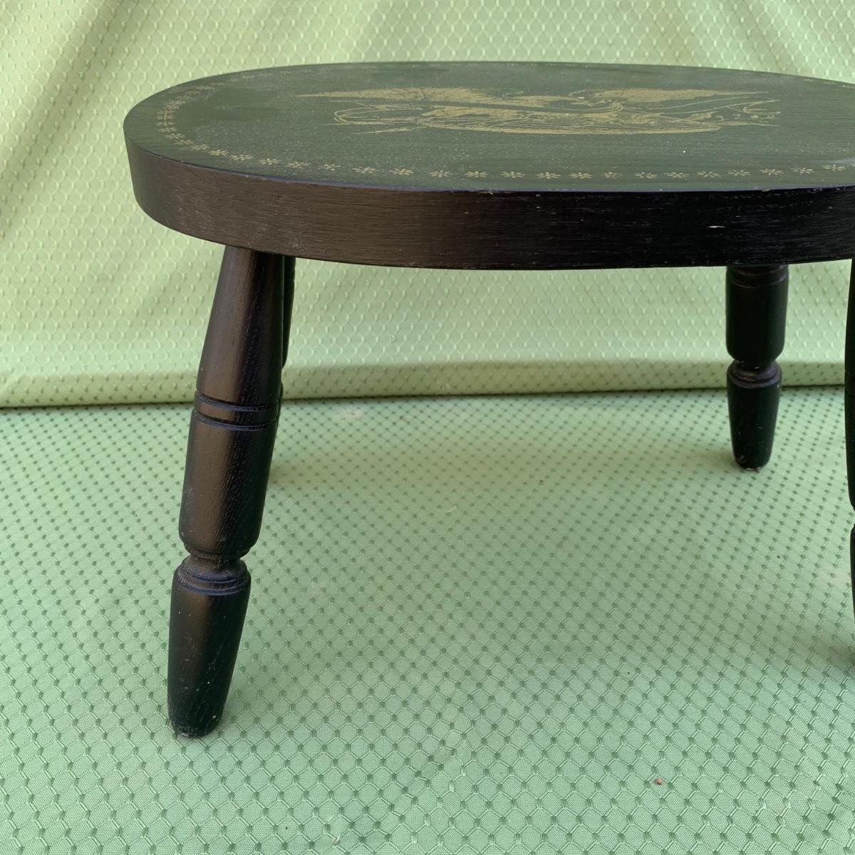 LOT 89: Vintage Black Step Stool, MCM Valet Stand/Butlers Seat & Wood-like Plastic Bathroom Accessories