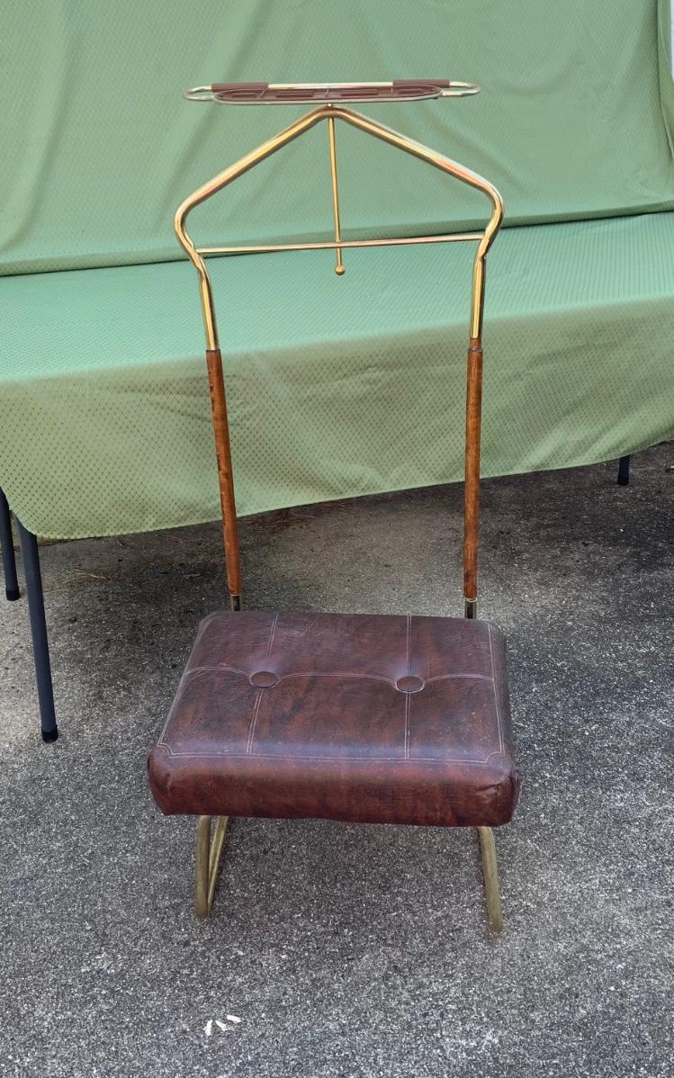 LOT 89:  Vintage Black Step Stool, MCM Valet Stand/Butlers Seat & Wood-like Plastic Bathroom Accessories