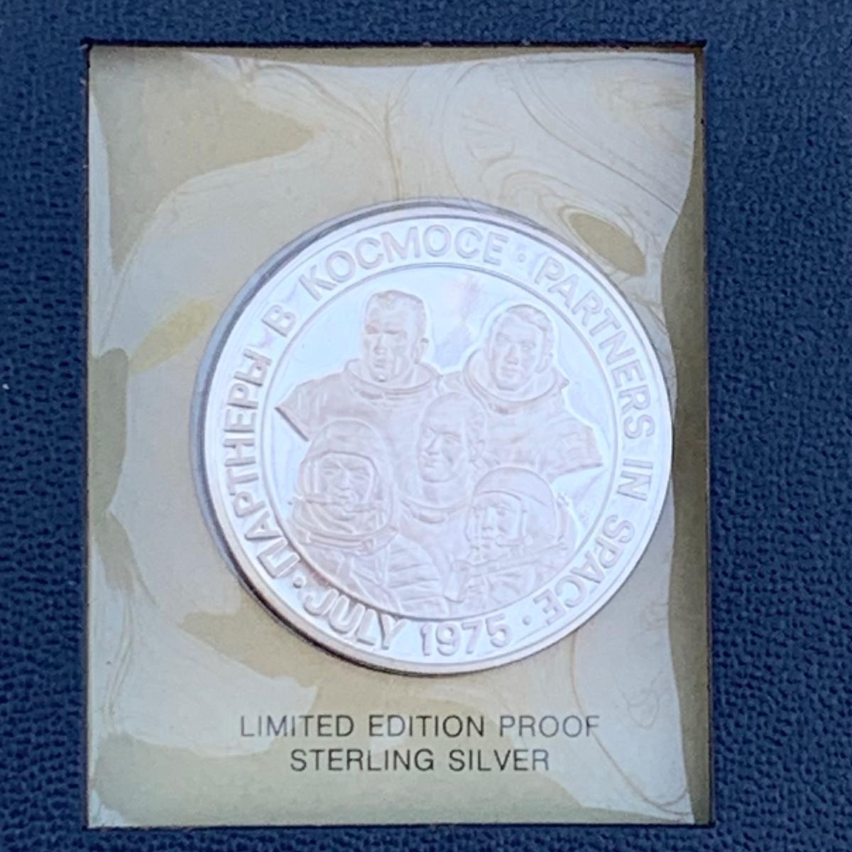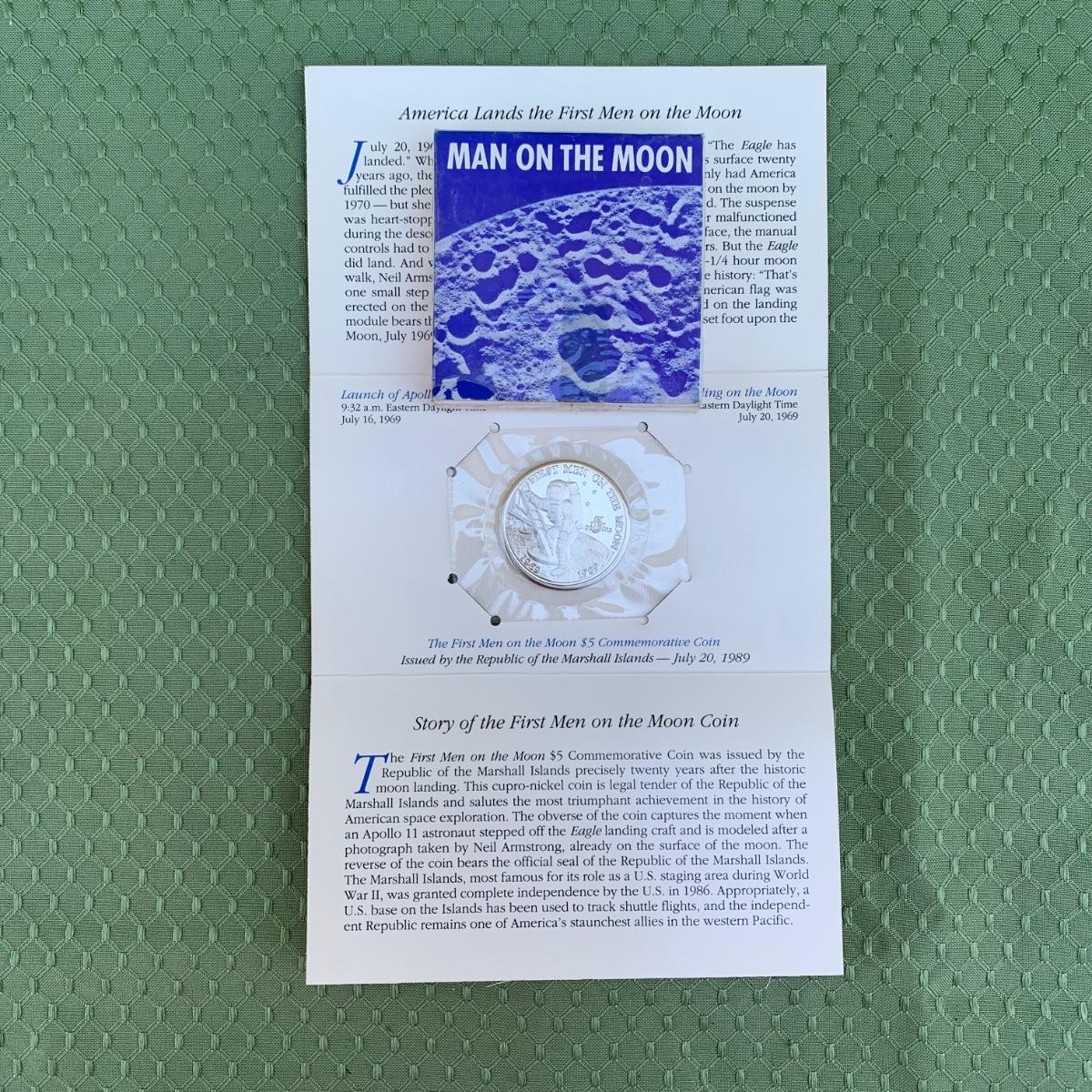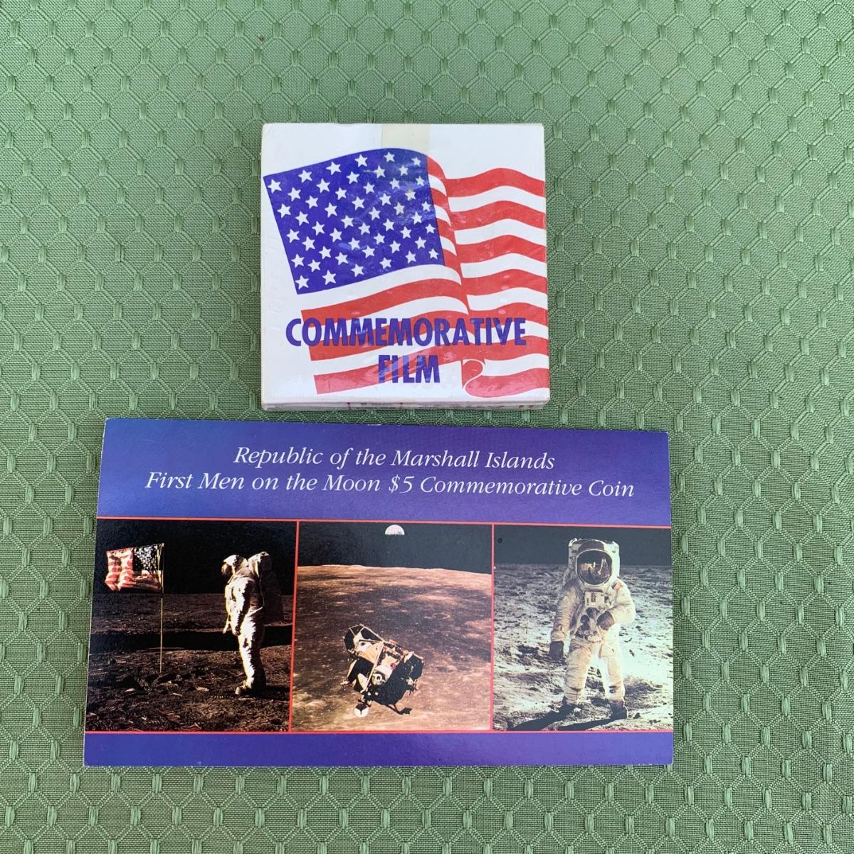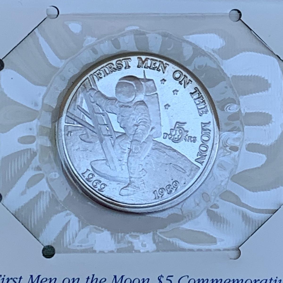 LOT 94R: Patriotic Collection:Apollo  Space Mission Sterling Silver Coin & Stamp Set "First Men On The Moon" $5 Commemorative Coin in Paper Sleeve & More