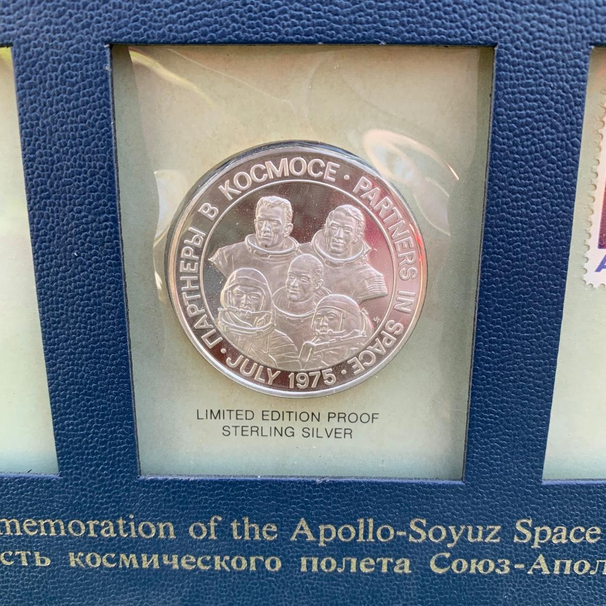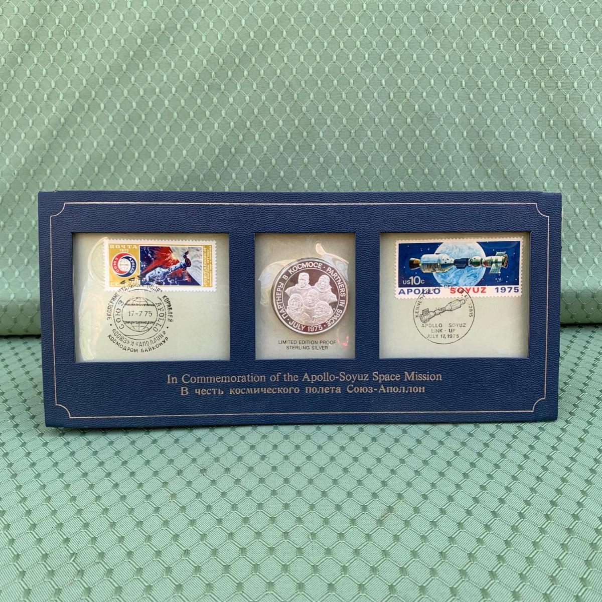 LOT 94R: Patriotic Collection:Apollo Space Mission Sterling Silver Coin & Stamp Set "First Men On The Moon" $5 Commemorative Coin in Paper Sleeve & More