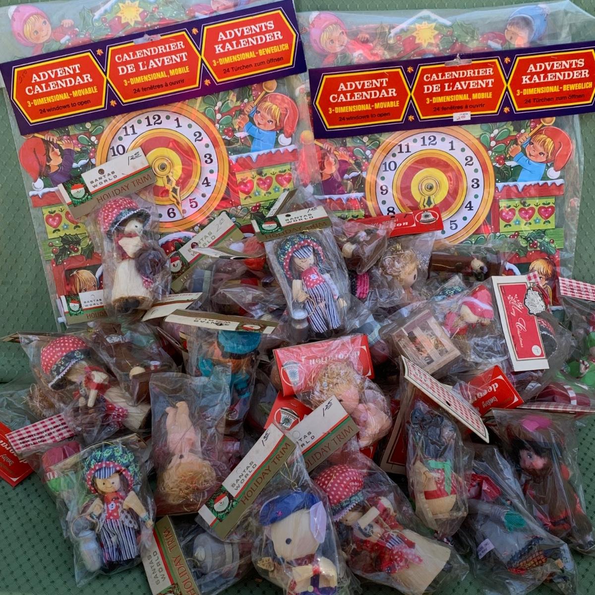 LOT 99R: Vintage Christmas New/Old Stock in Original Packaging Santas World Holiday Trim Ornaments &  Advent Calendars
