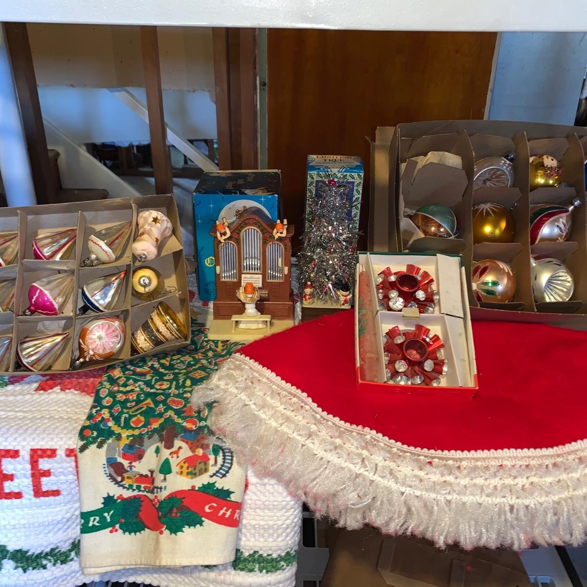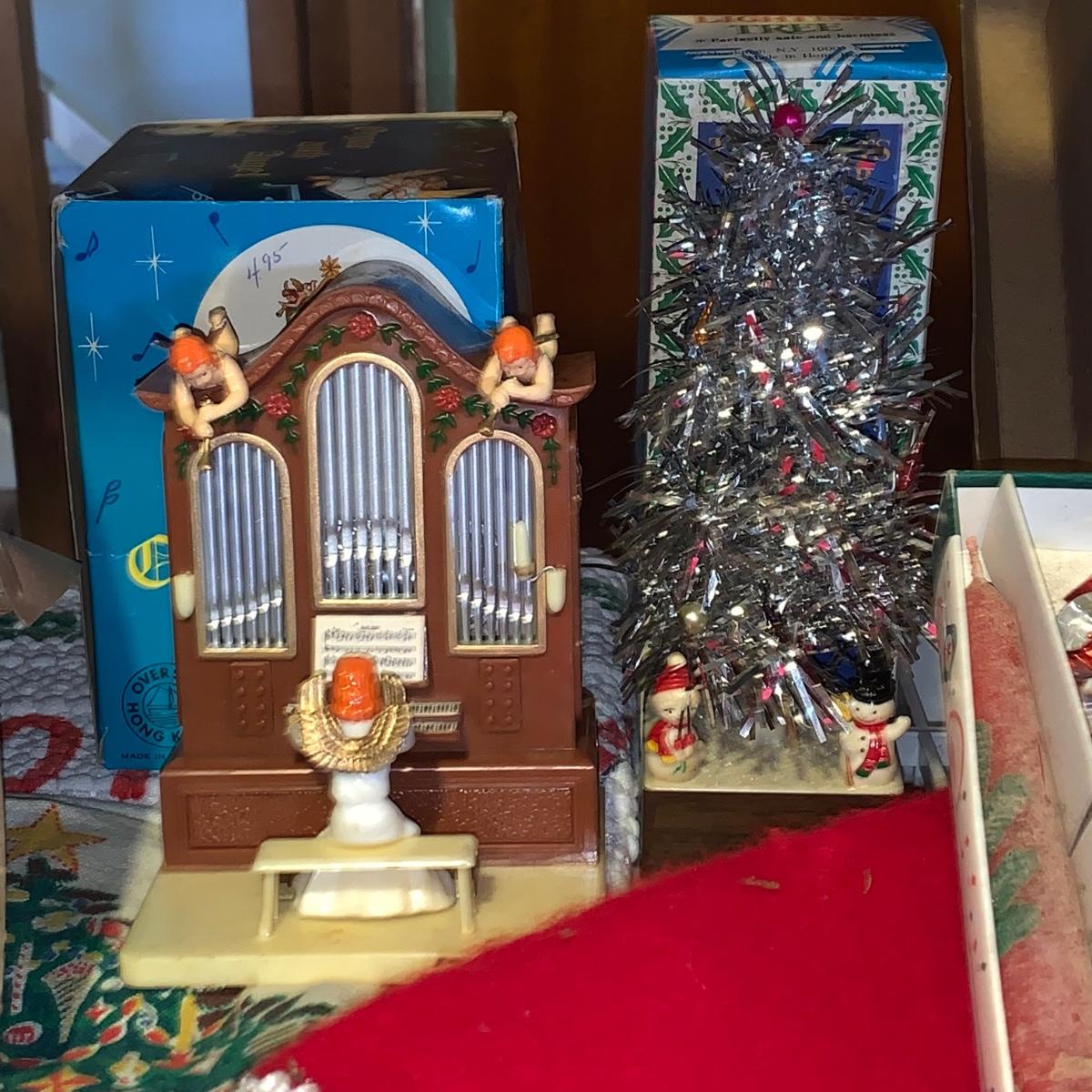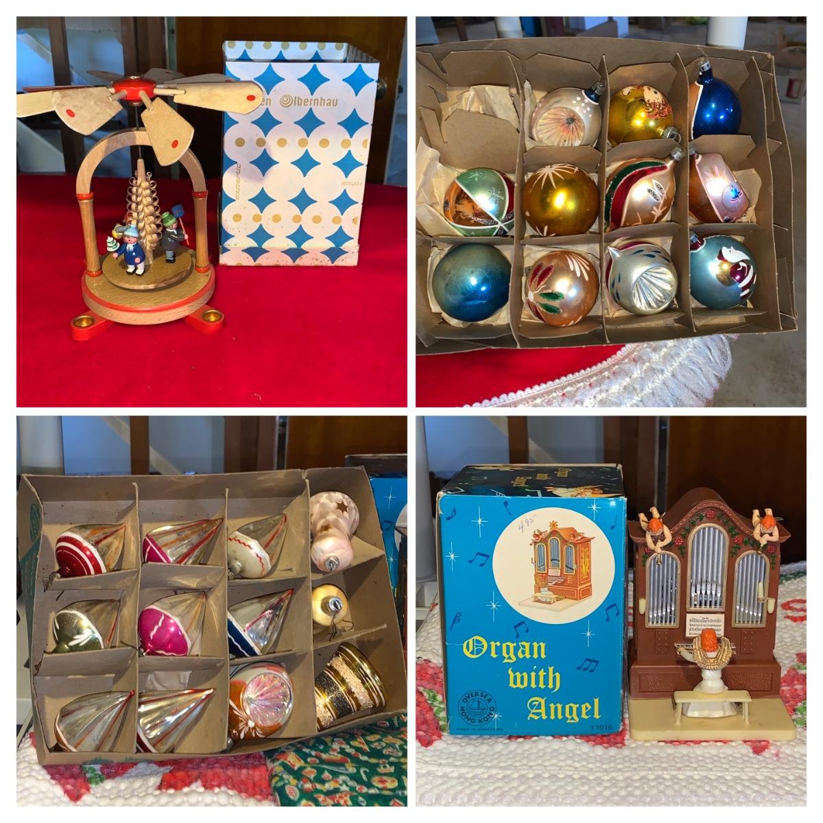 LOT 103R: Vintage German Erzgebirge w/Box, Christmas Ornaments, Organ w/Angel w/Box & More