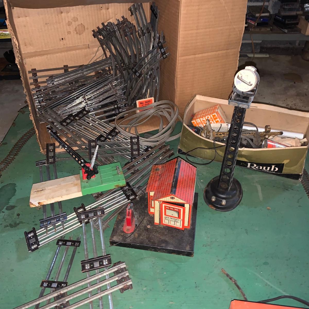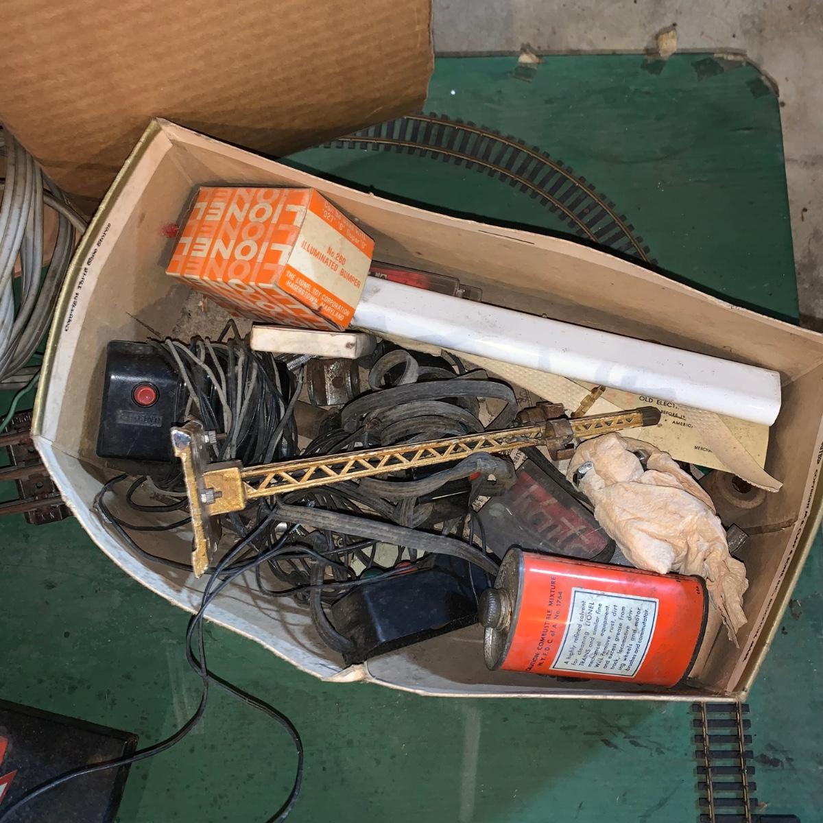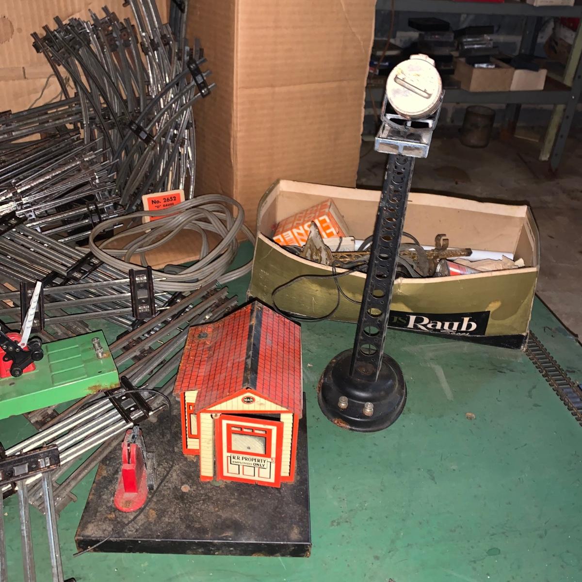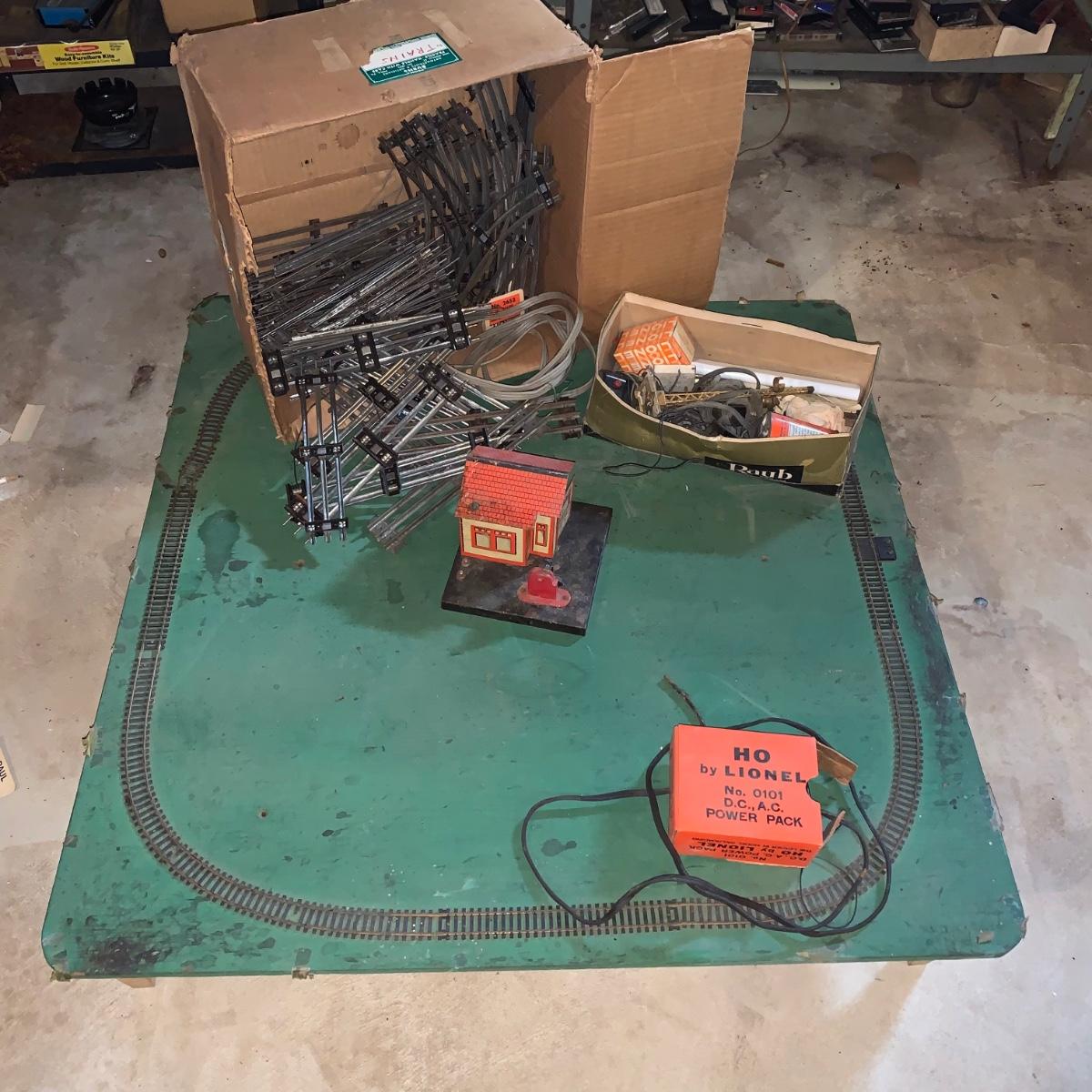 LOT 104R: Train Lot: Lionel HO Power Pack, Tin Train Accessories, Track, Platform & More