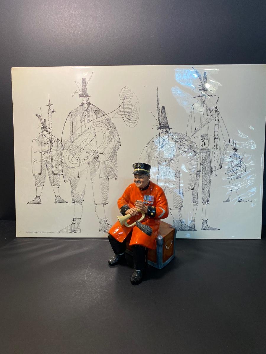 LOT 142: Royal Daulton "Past Glory" 2484 & Signed " Musical Instruments" Sketch by Flora