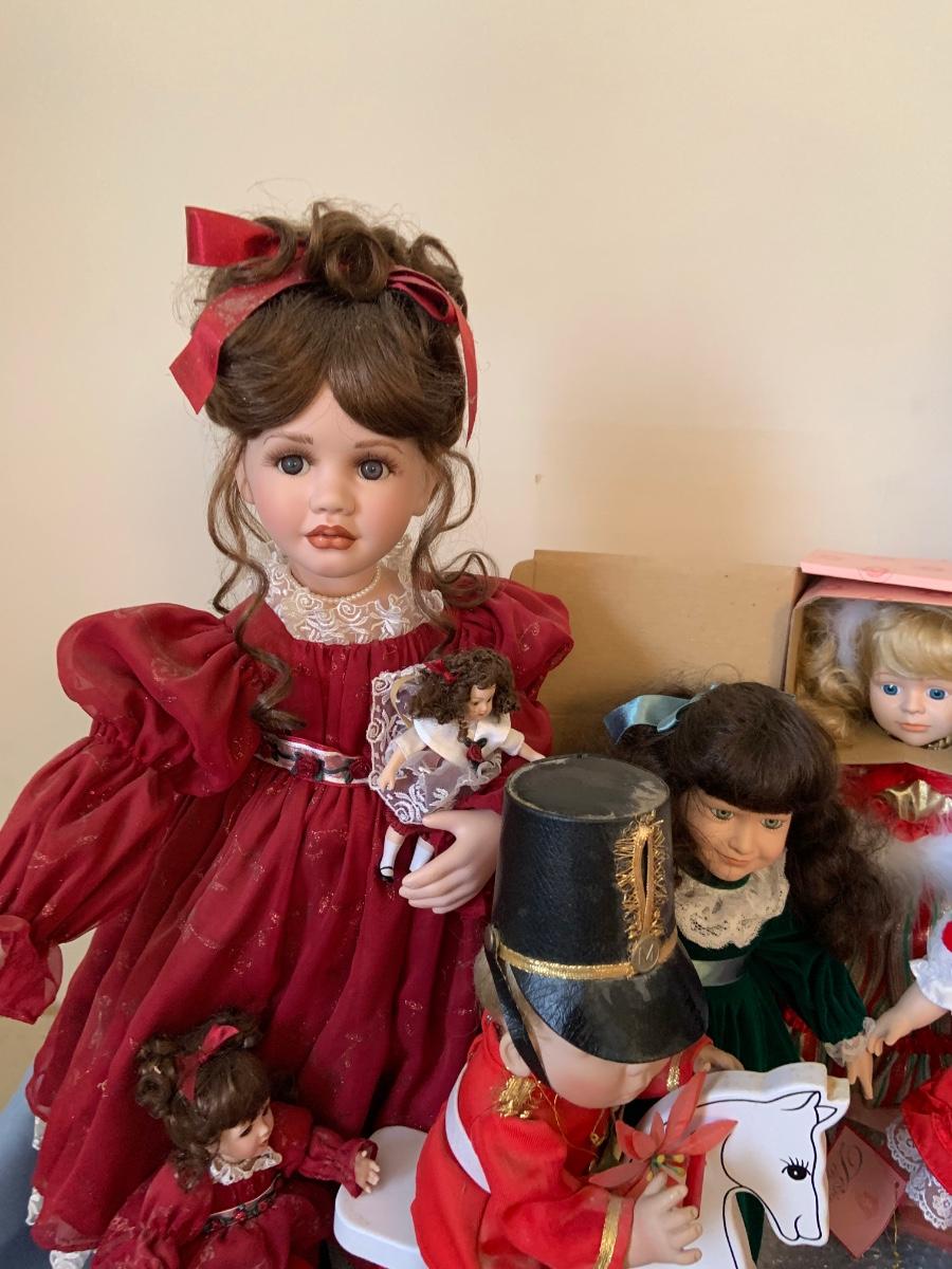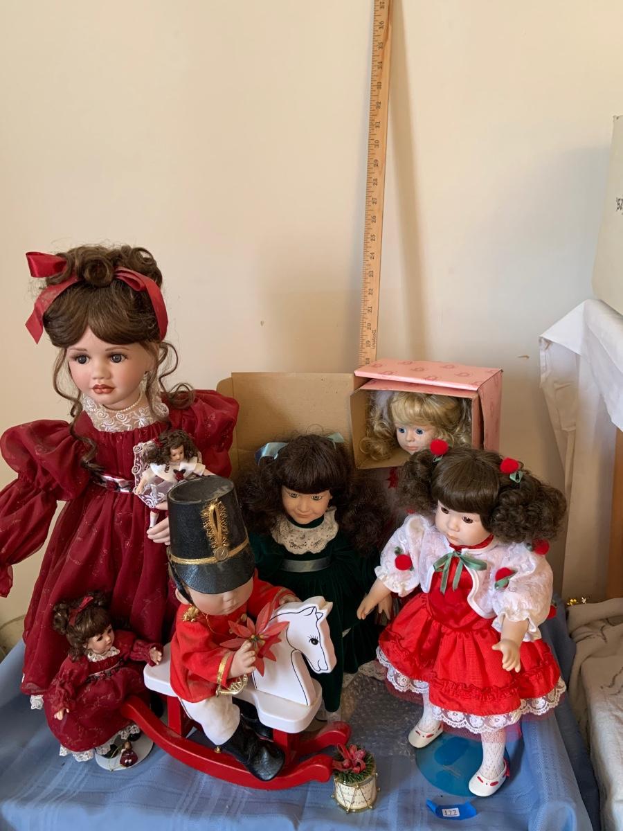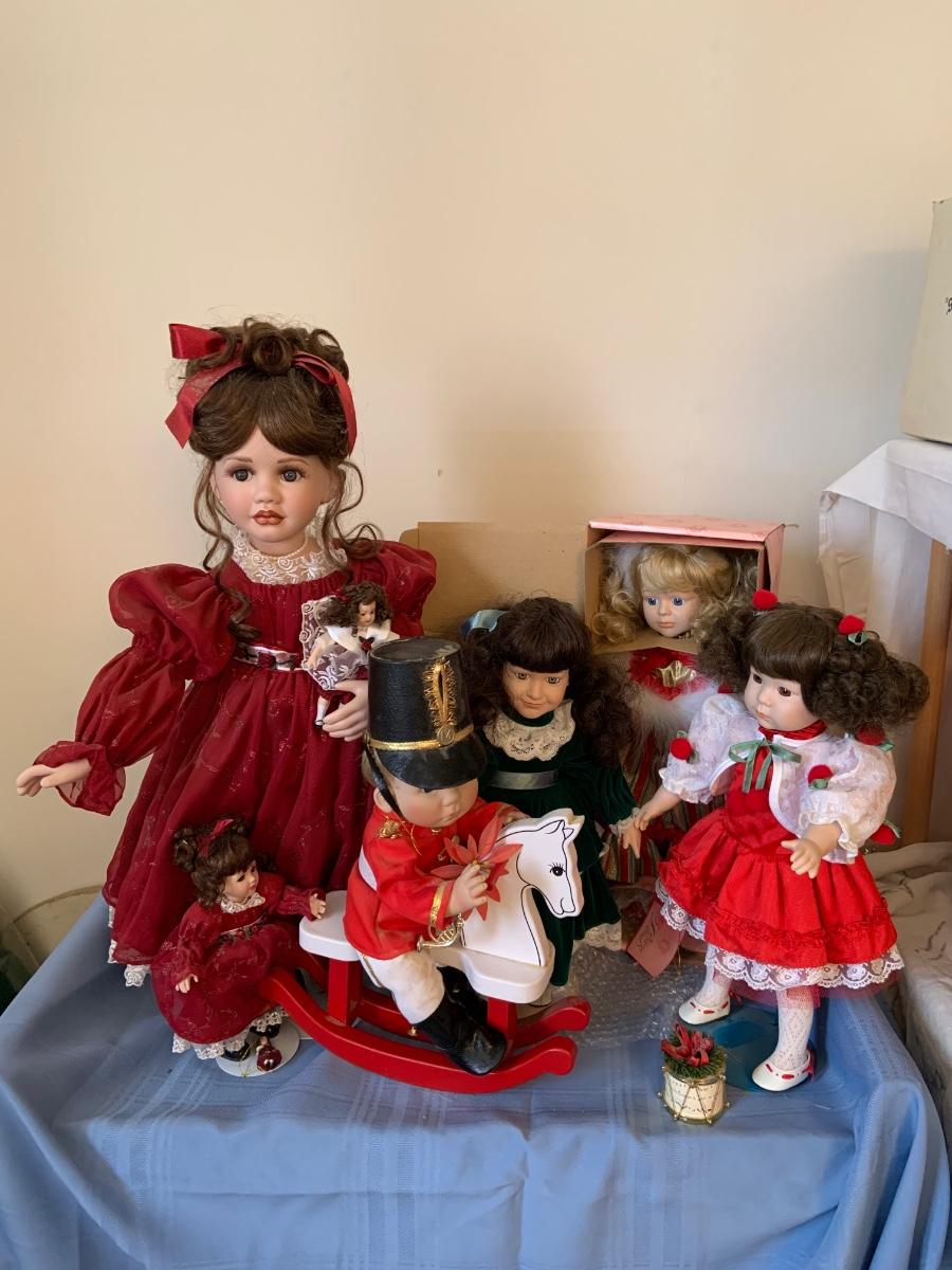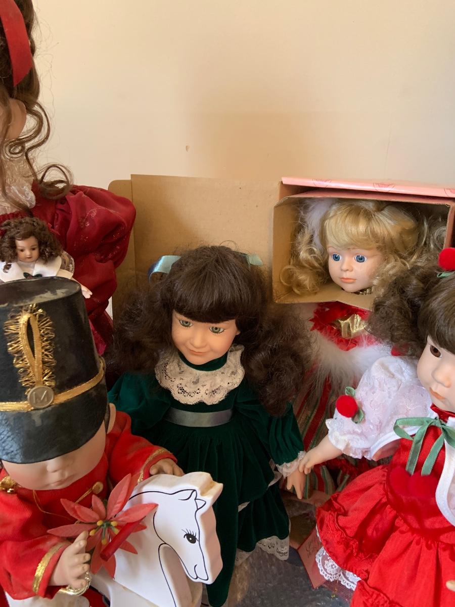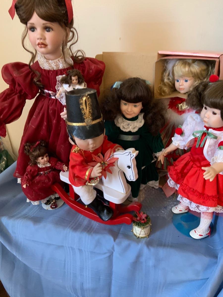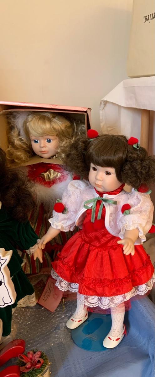 LOT:177G: Christmas is Coming  Assortment of Collectible Vinyl and Porcelain Dolls