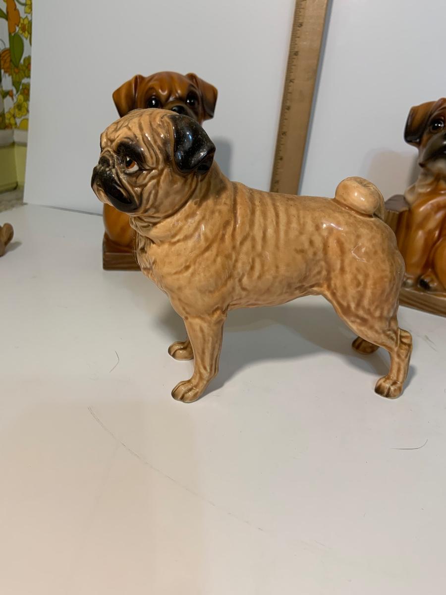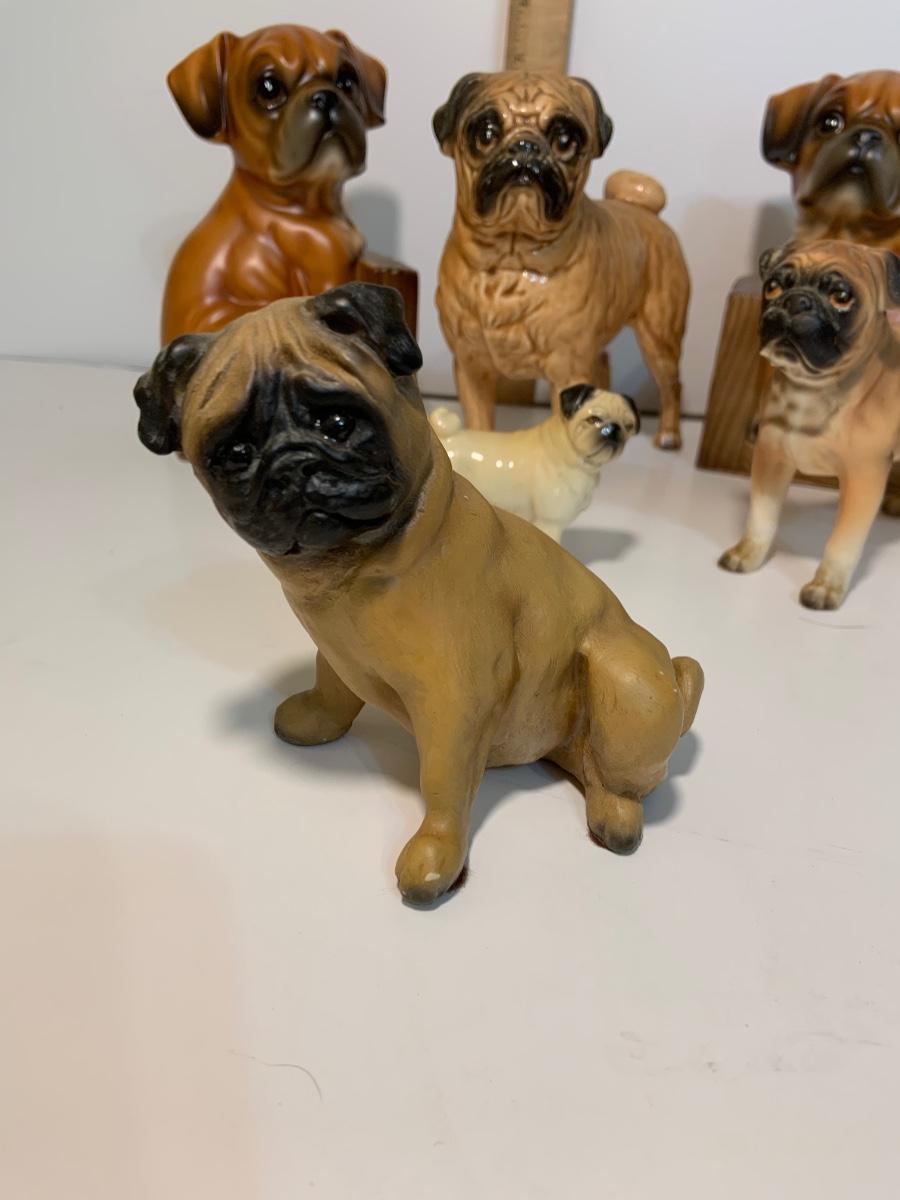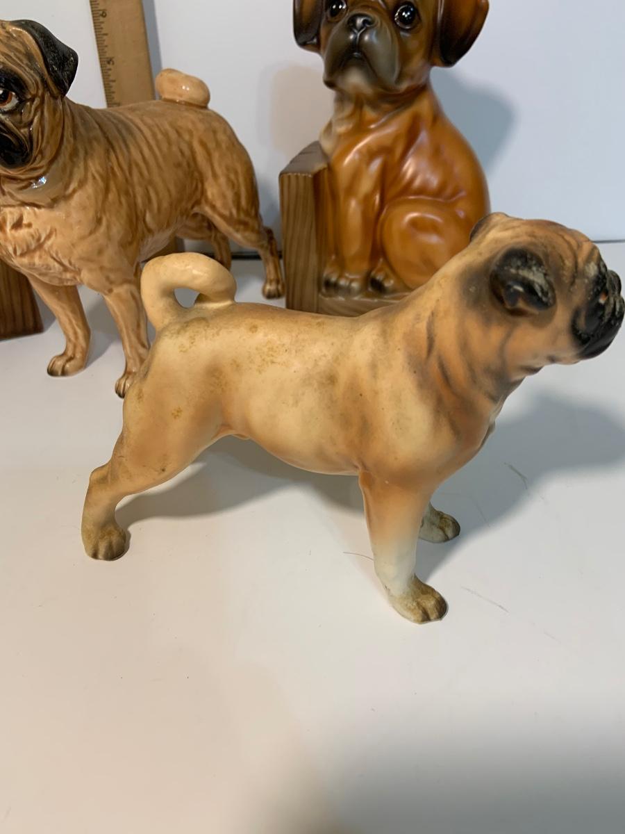 LOT:185G: Collection of Ceramic Pug Dogs Featuring a Pair of Bookends Made in Japan