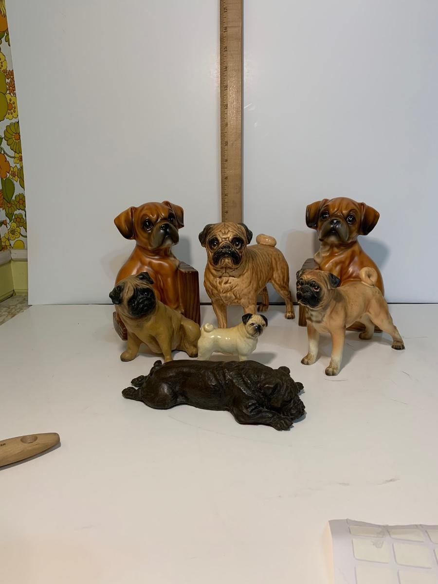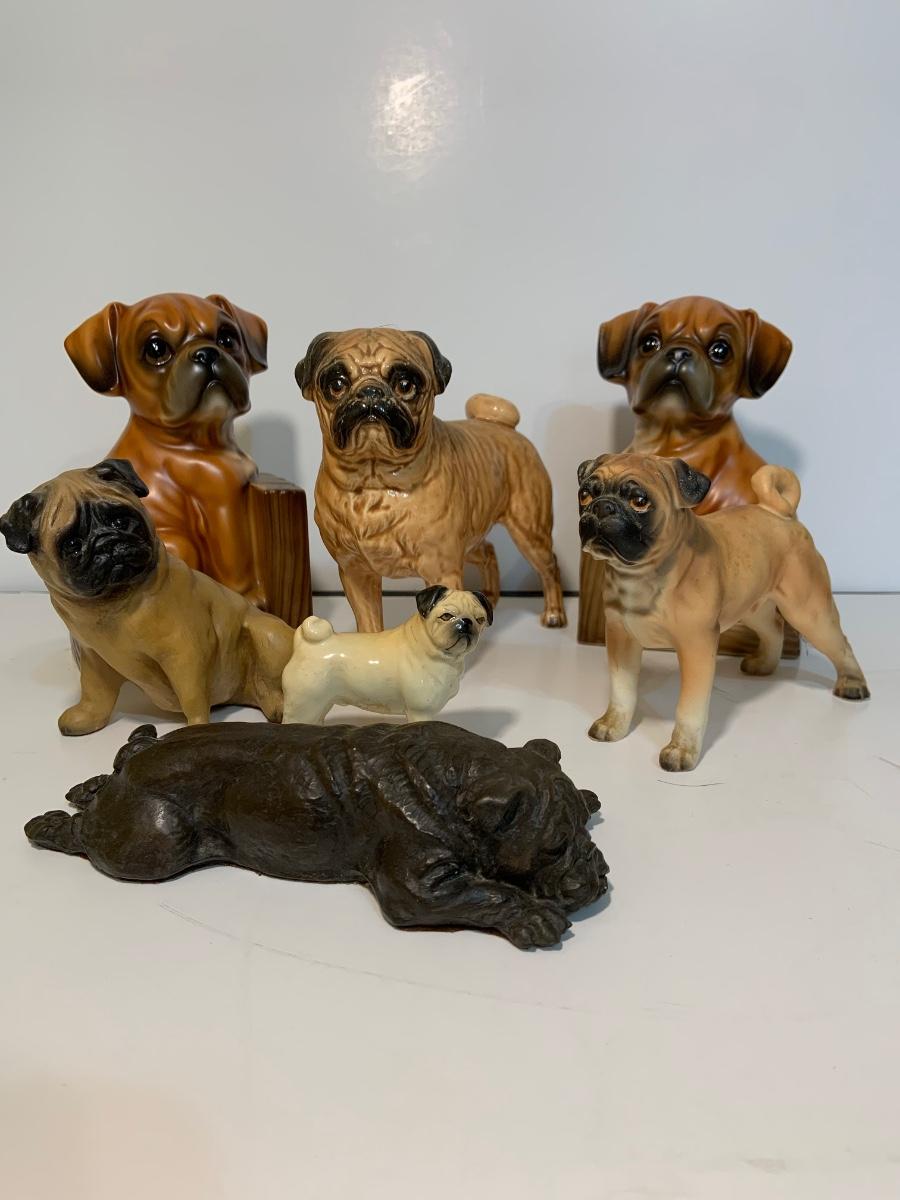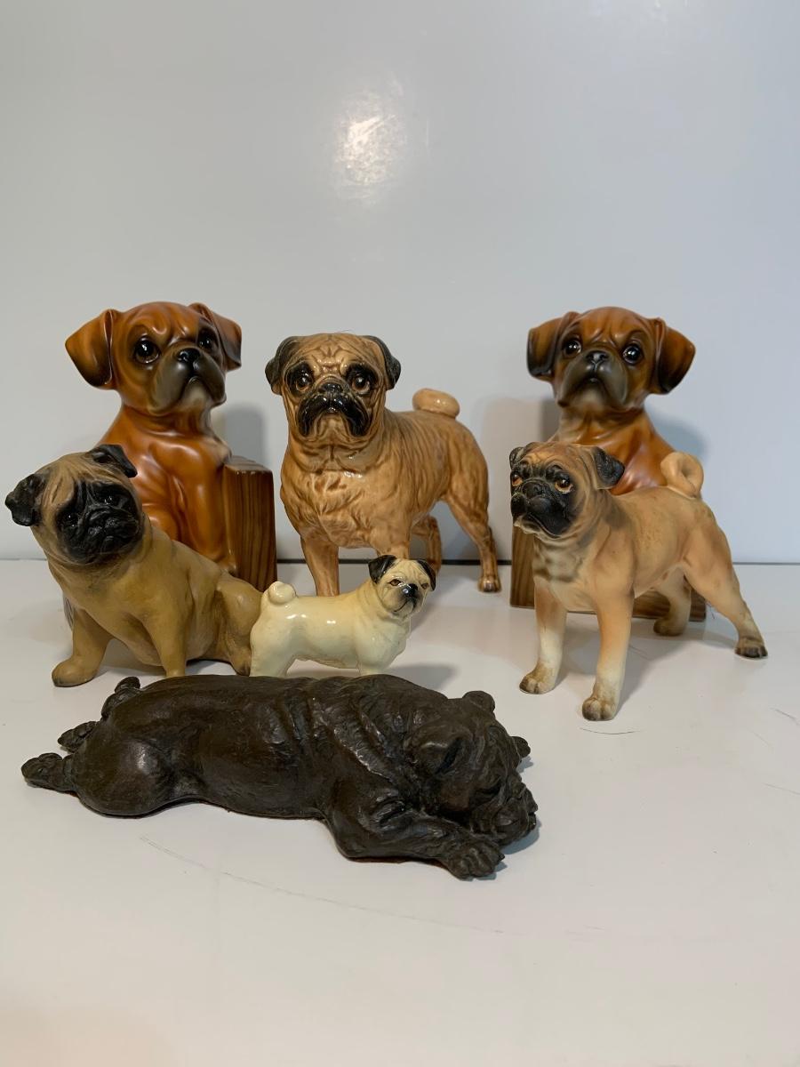 LOT:185G: Collection of Ceramic Pug Dogs Featuring a Pair of Bookends Made in Japan