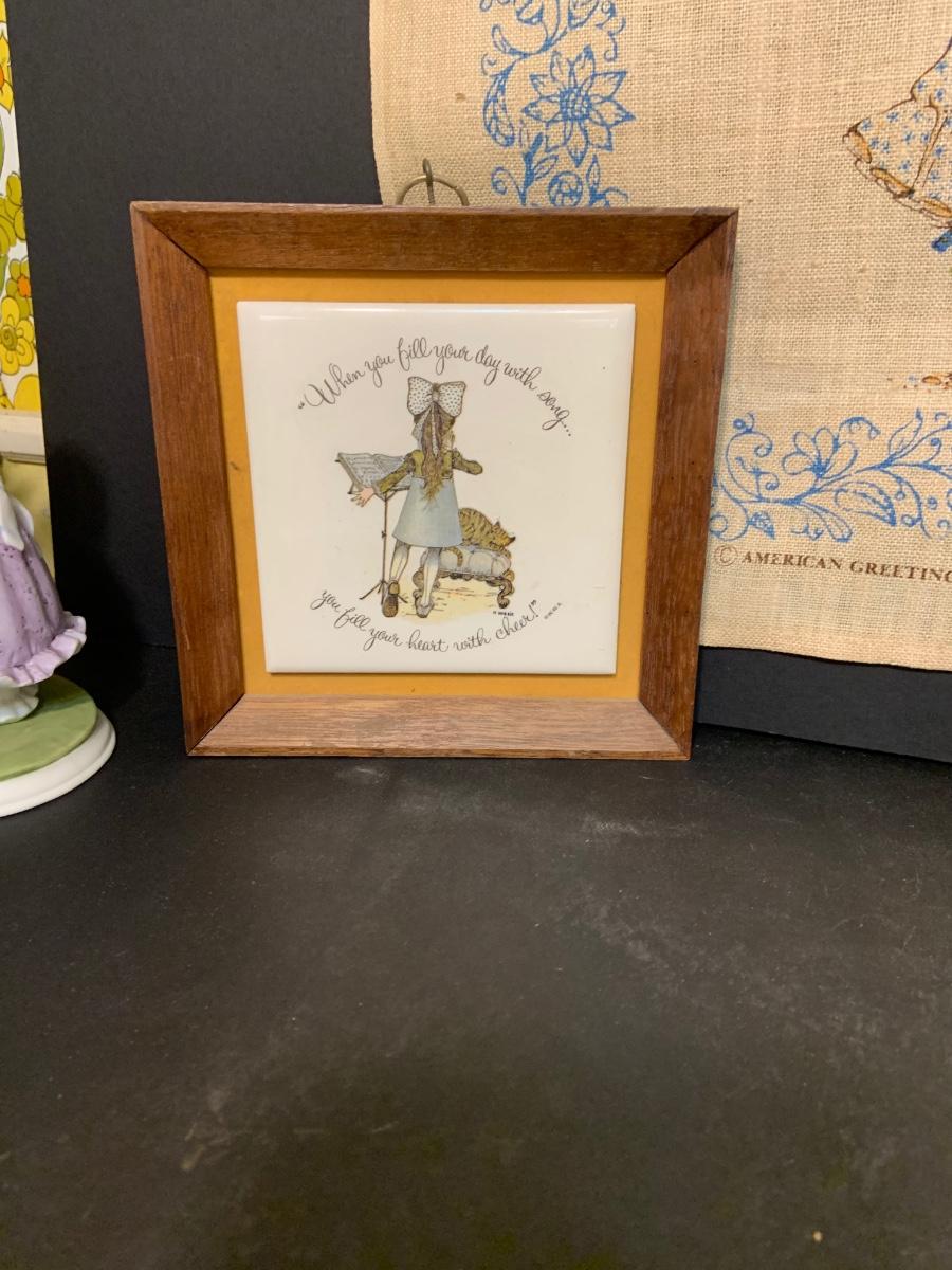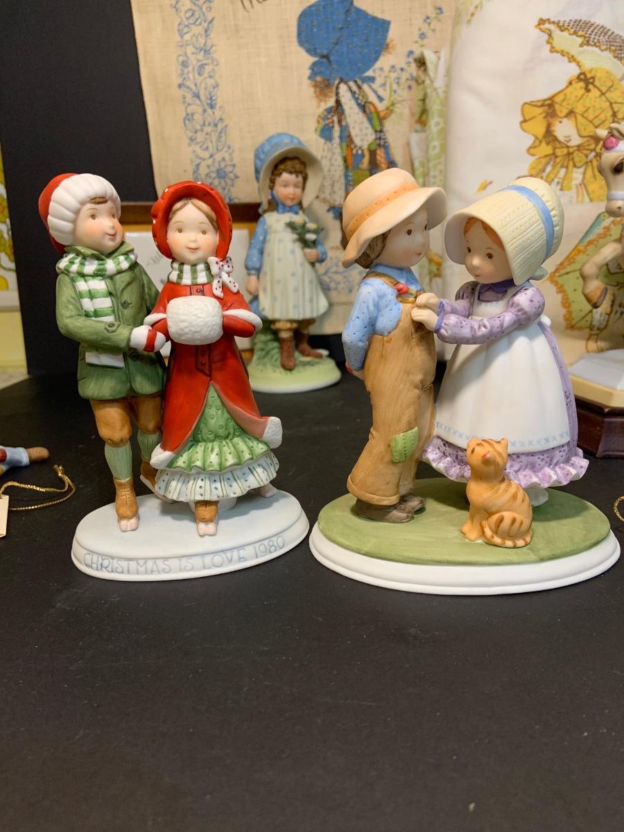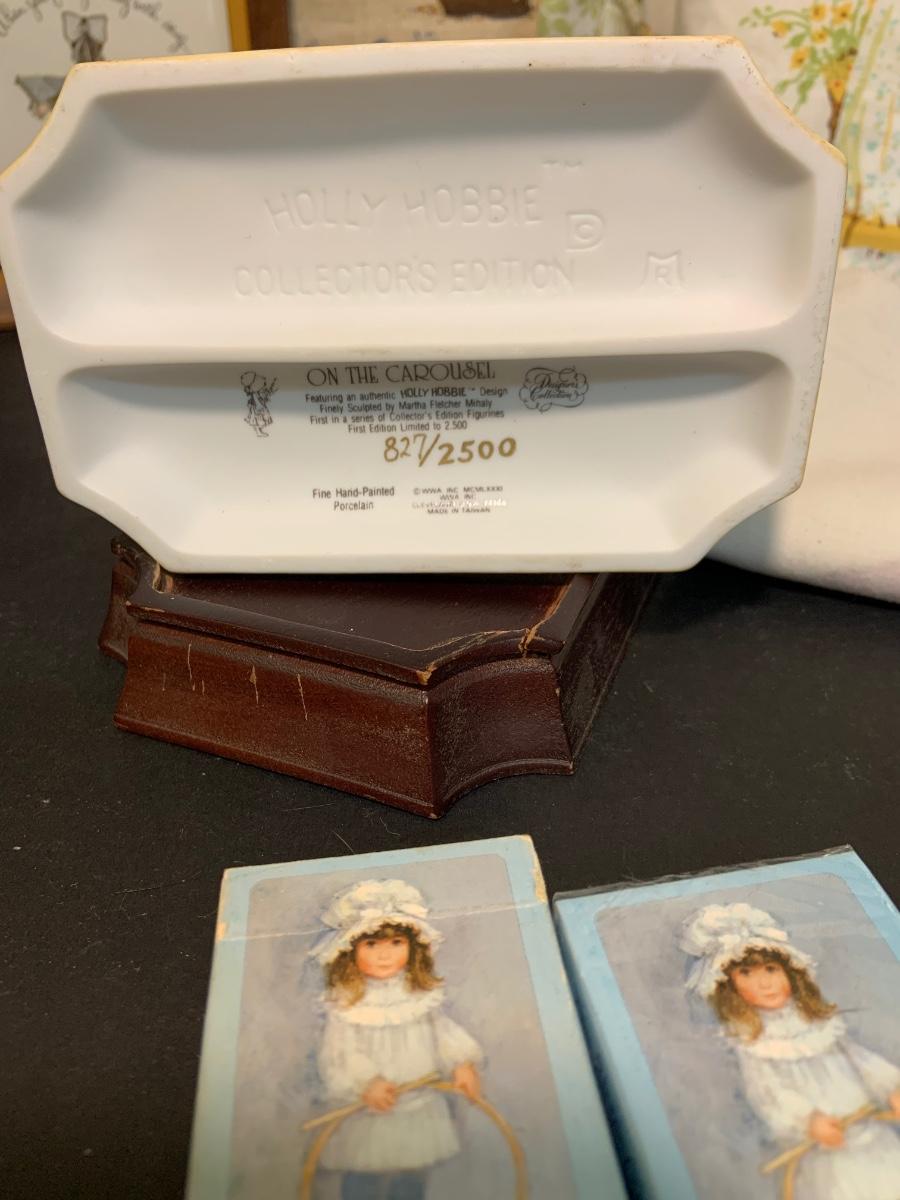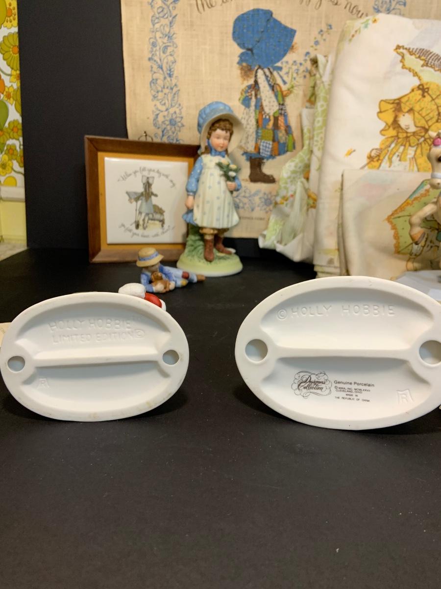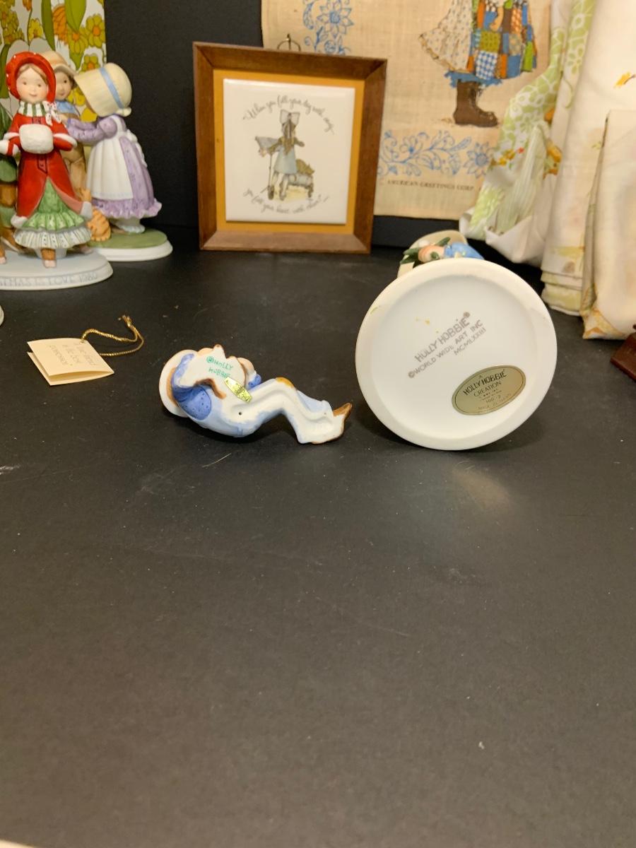 LOT:186G: Large Holly Hobby Collection Including Bed Sheets; Figurines - Holiday and Others; Playing Cards; a Wall Hanging and Plaque.