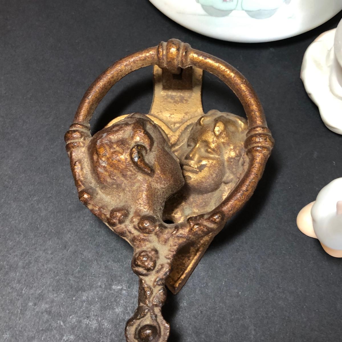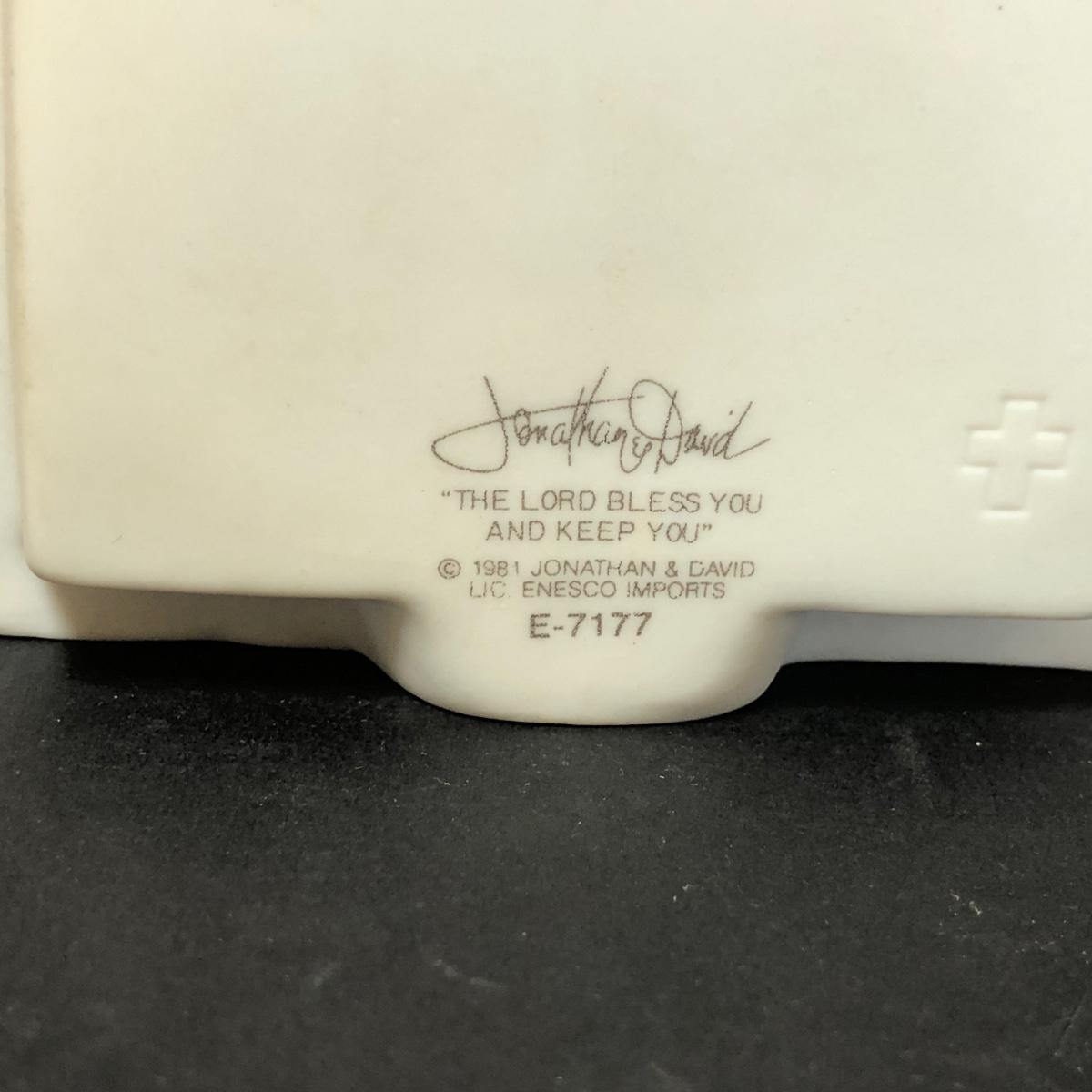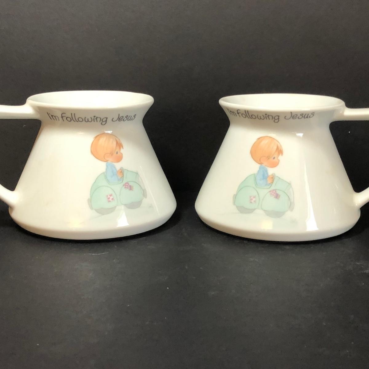 Includes an ornate music box tea pot, two "I'm Following Jesus" Precious moments mugs, three precious moments figurines, a kissing couple door knocker and a 2003 Goebel Figure named "One of Many Happy Anniversaries."