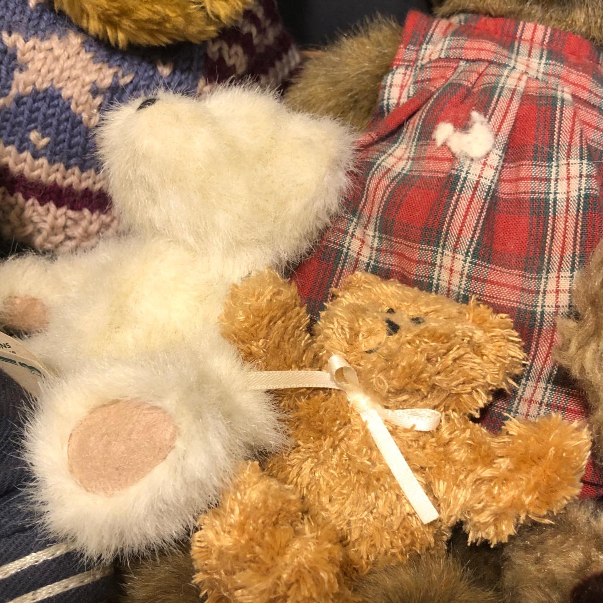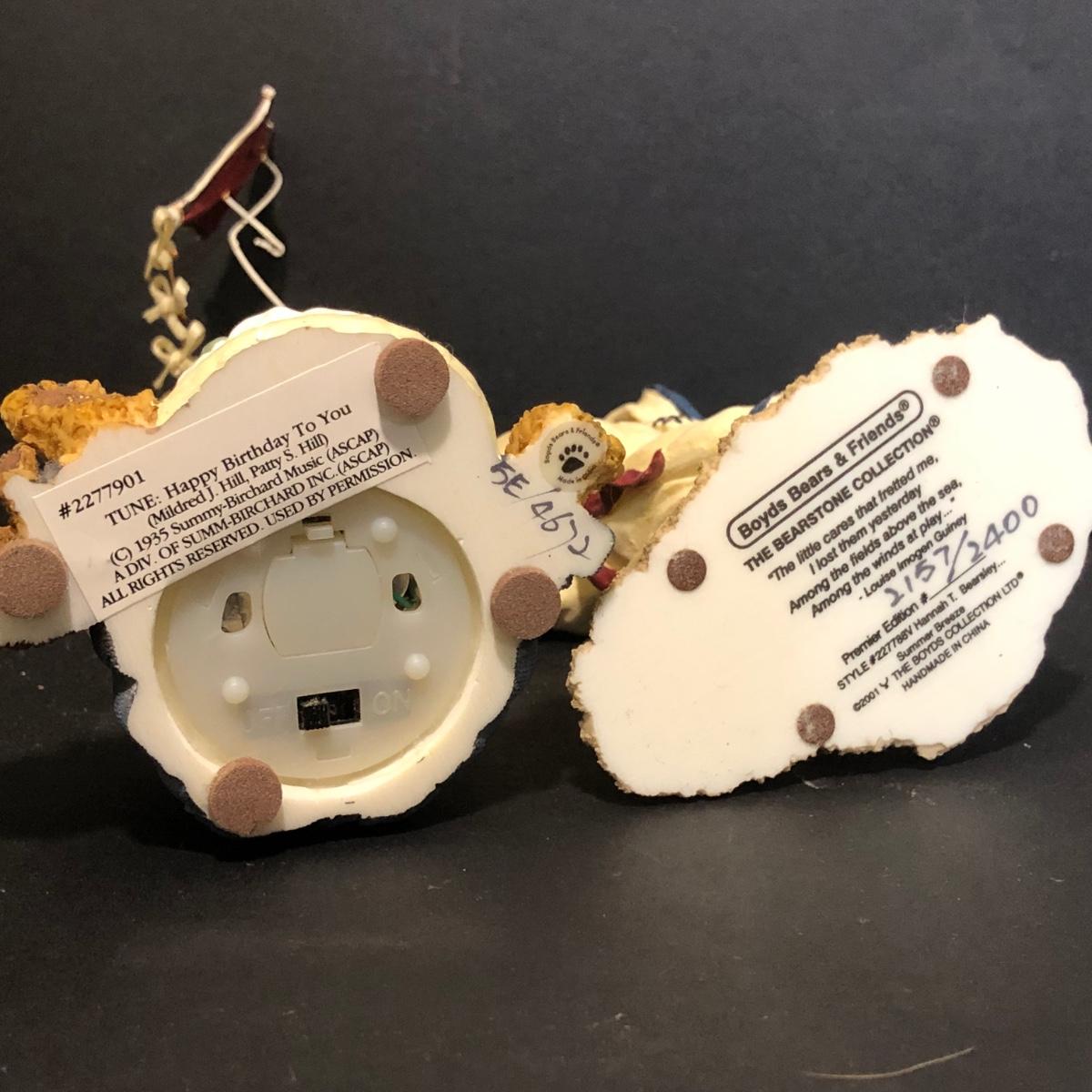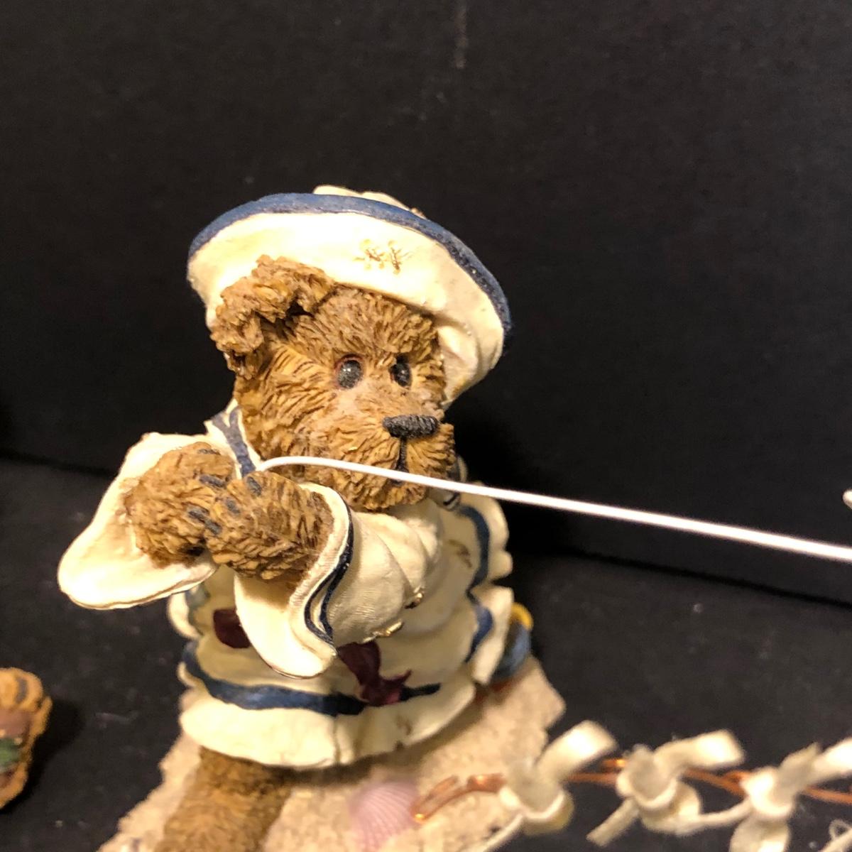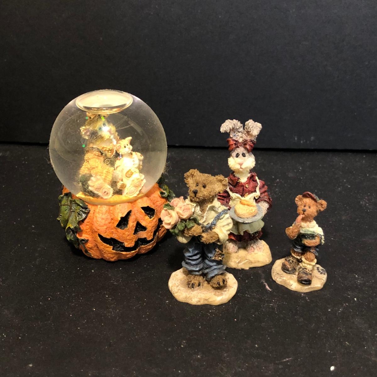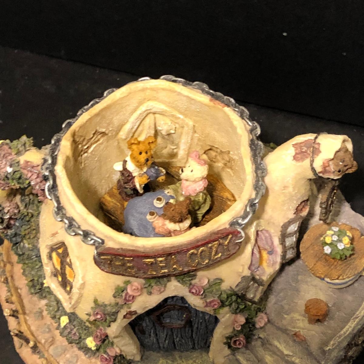 Includes a variety of Boyd's brand stuffed bears, small figures, a carriage and a wheel barrow.