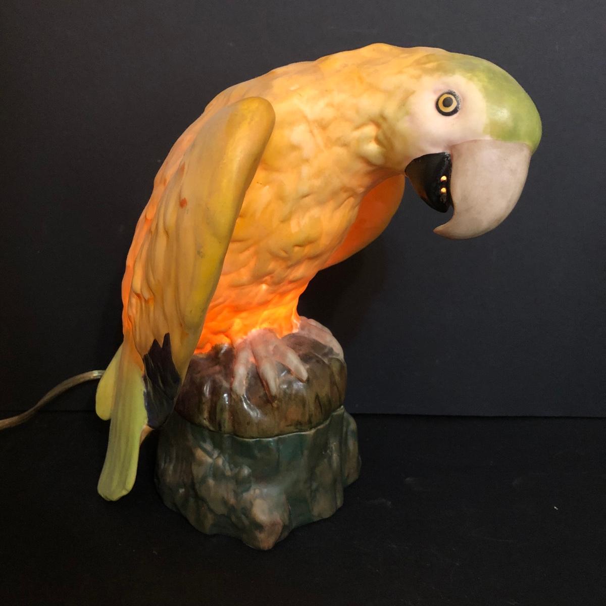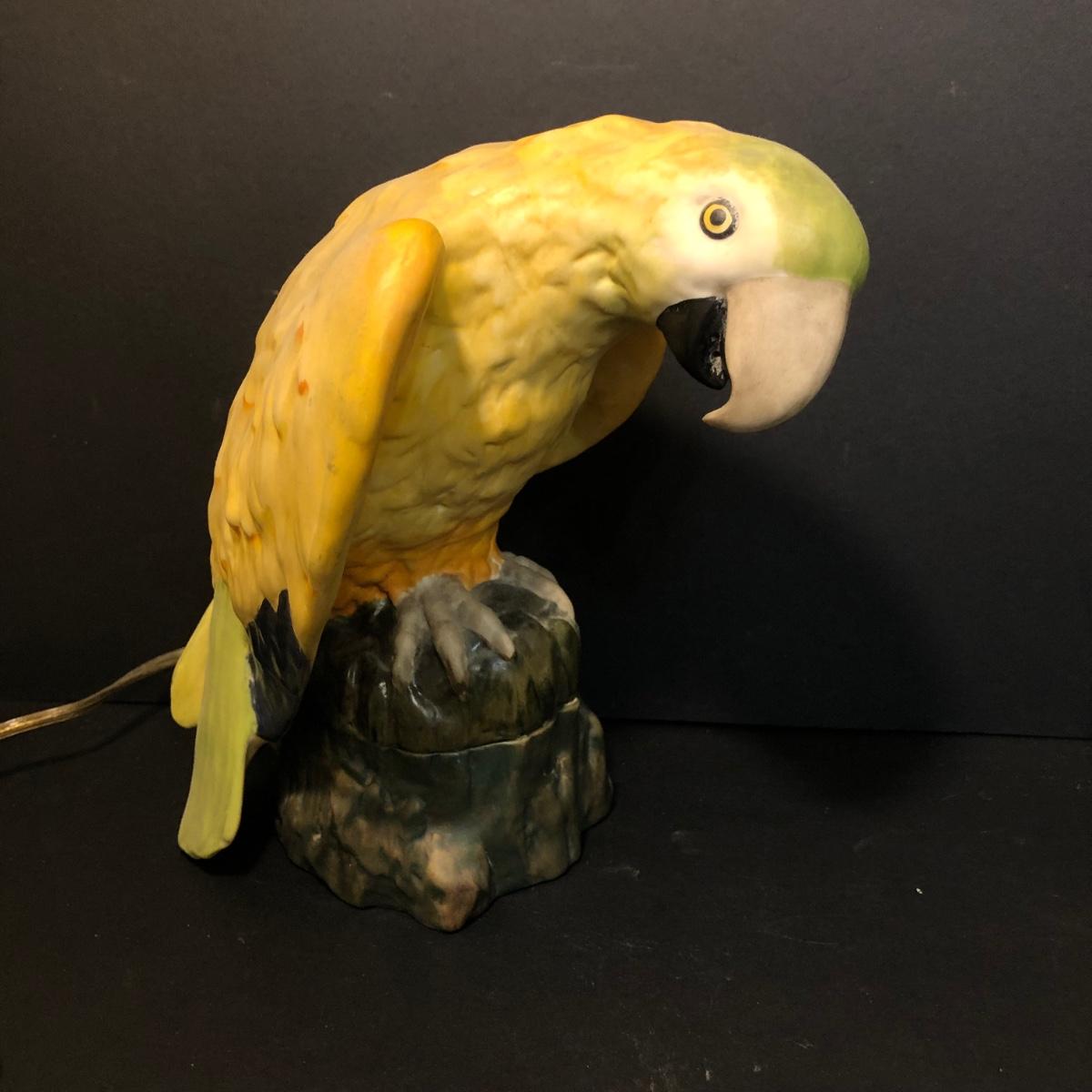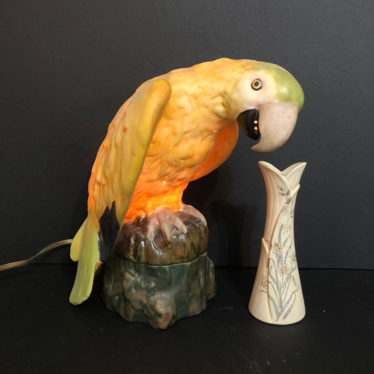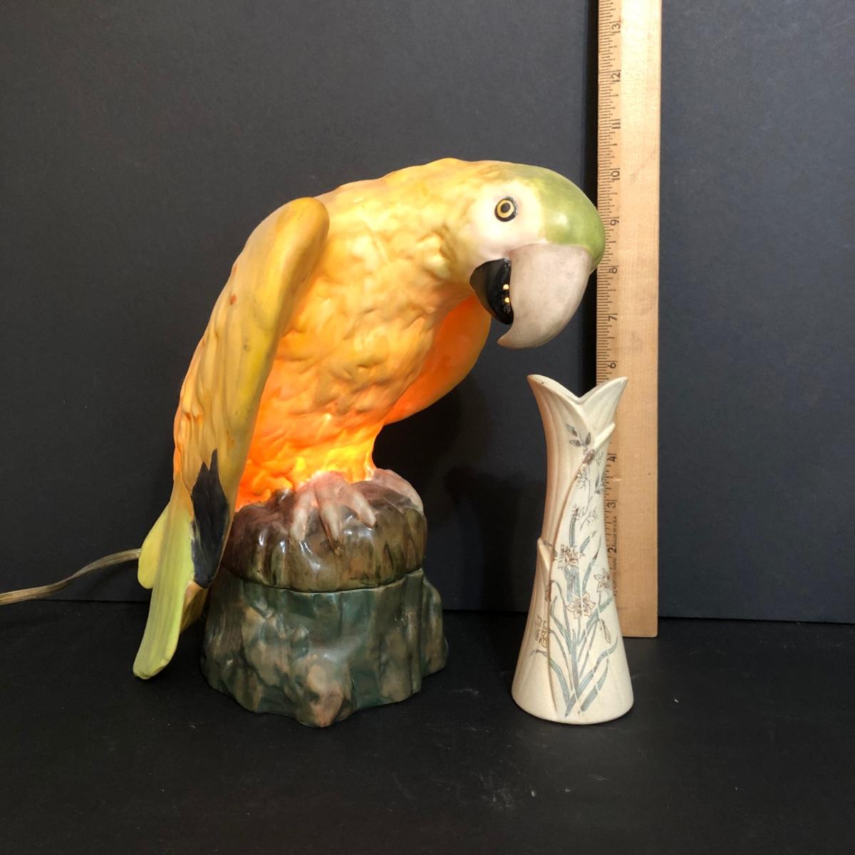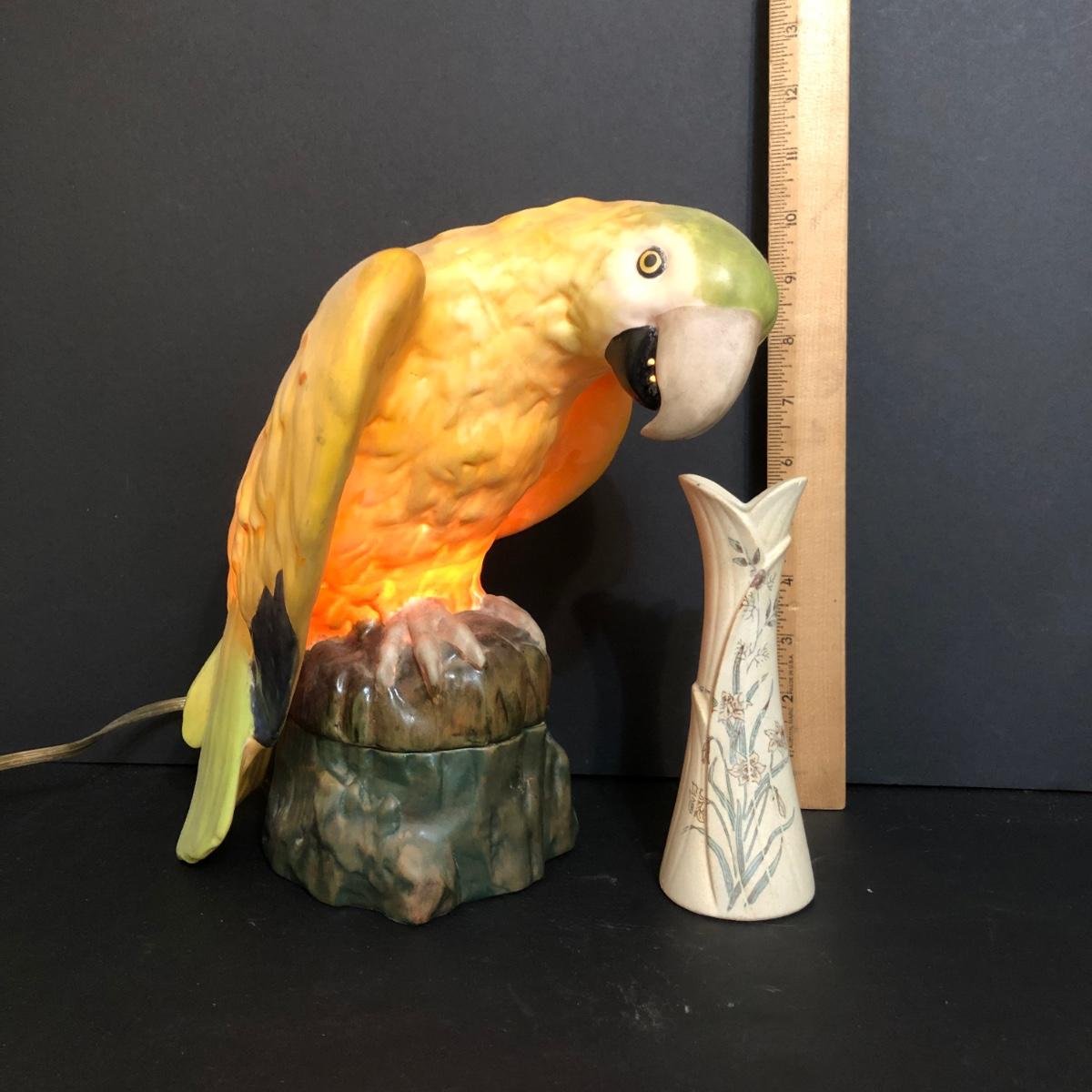 LOT 204: Porcelain Parrot Lamp & Hand Decorated Antique Bouquet Counterpoint Vase