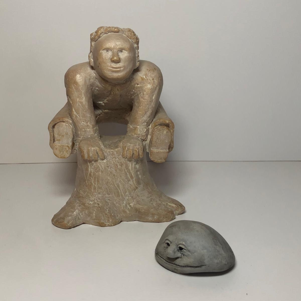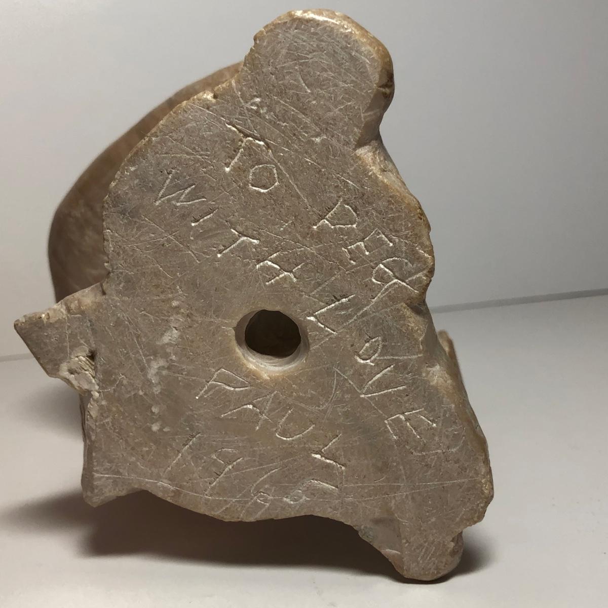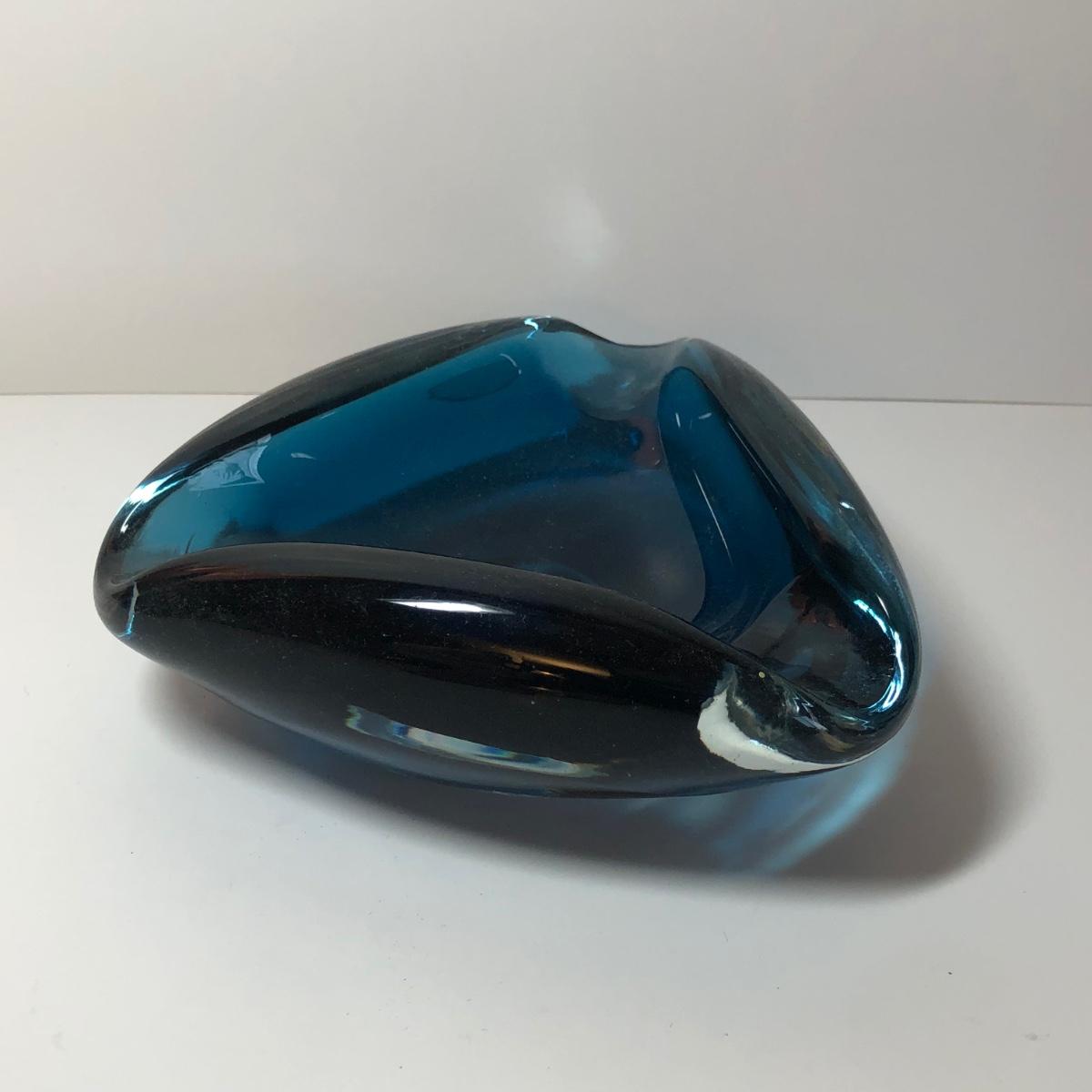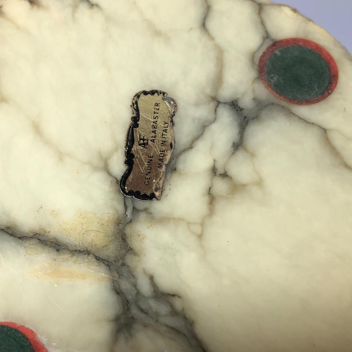 Includes a large alabaster ash tray, a triangular blue glass ash tray, an orange Italian ash tray and ash trays from various businesses. Also includes a small sculpture and rock with a face.