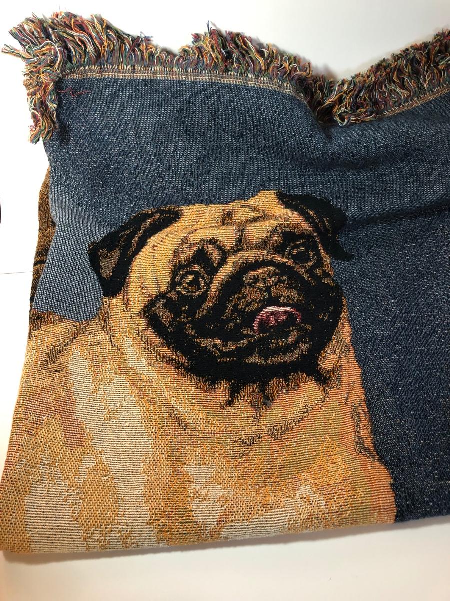 LOT 216M: Pug Lover's Collection - Stuffed Animals, Needlepoint, Books, Throw Blanket & More