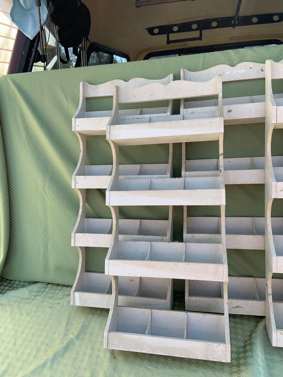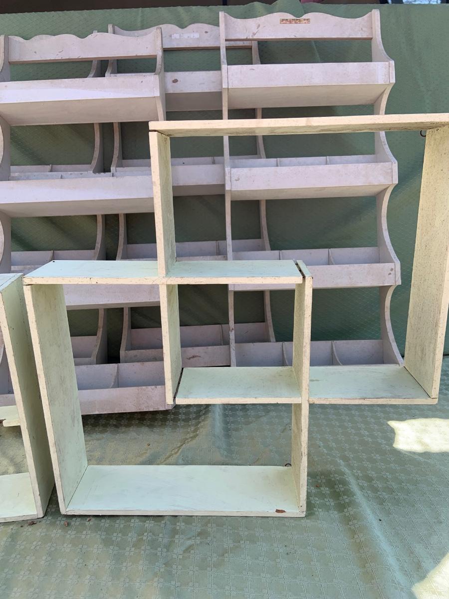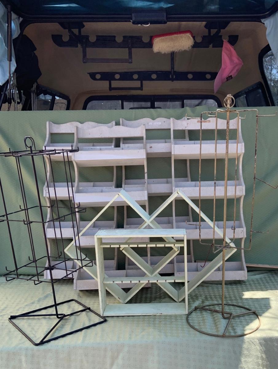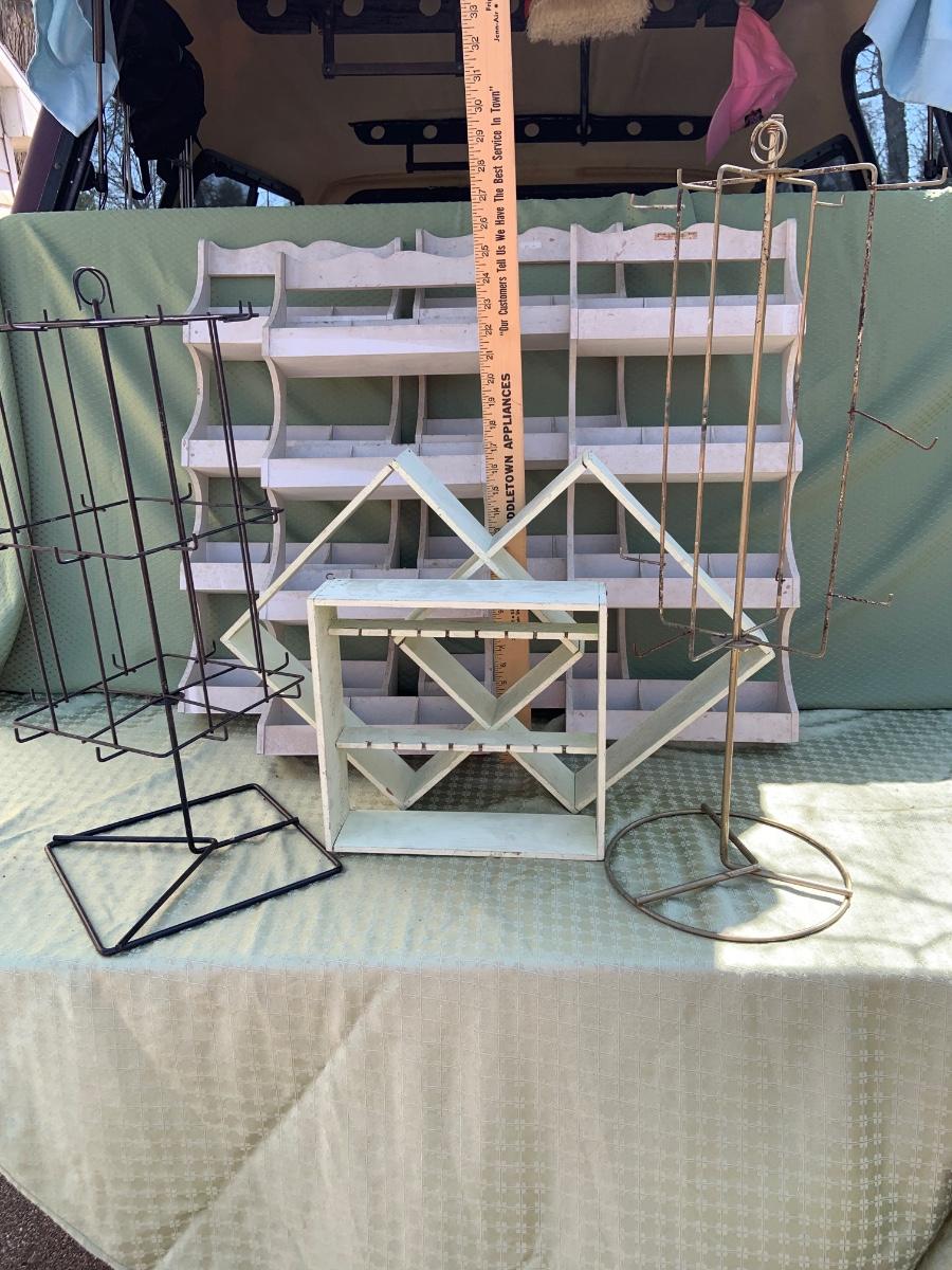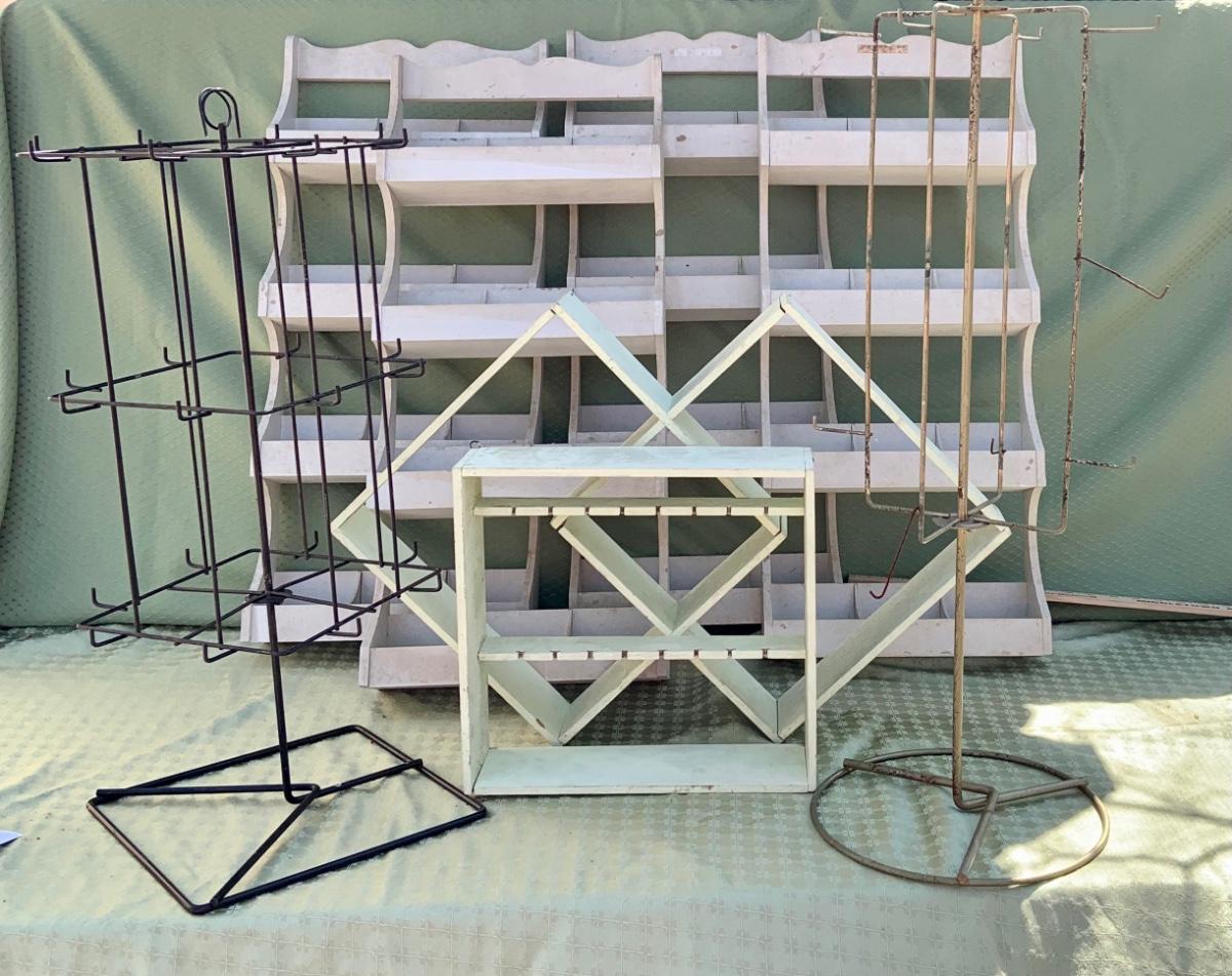 LOT:219G: Metal Display Racks and Wooden Shelves