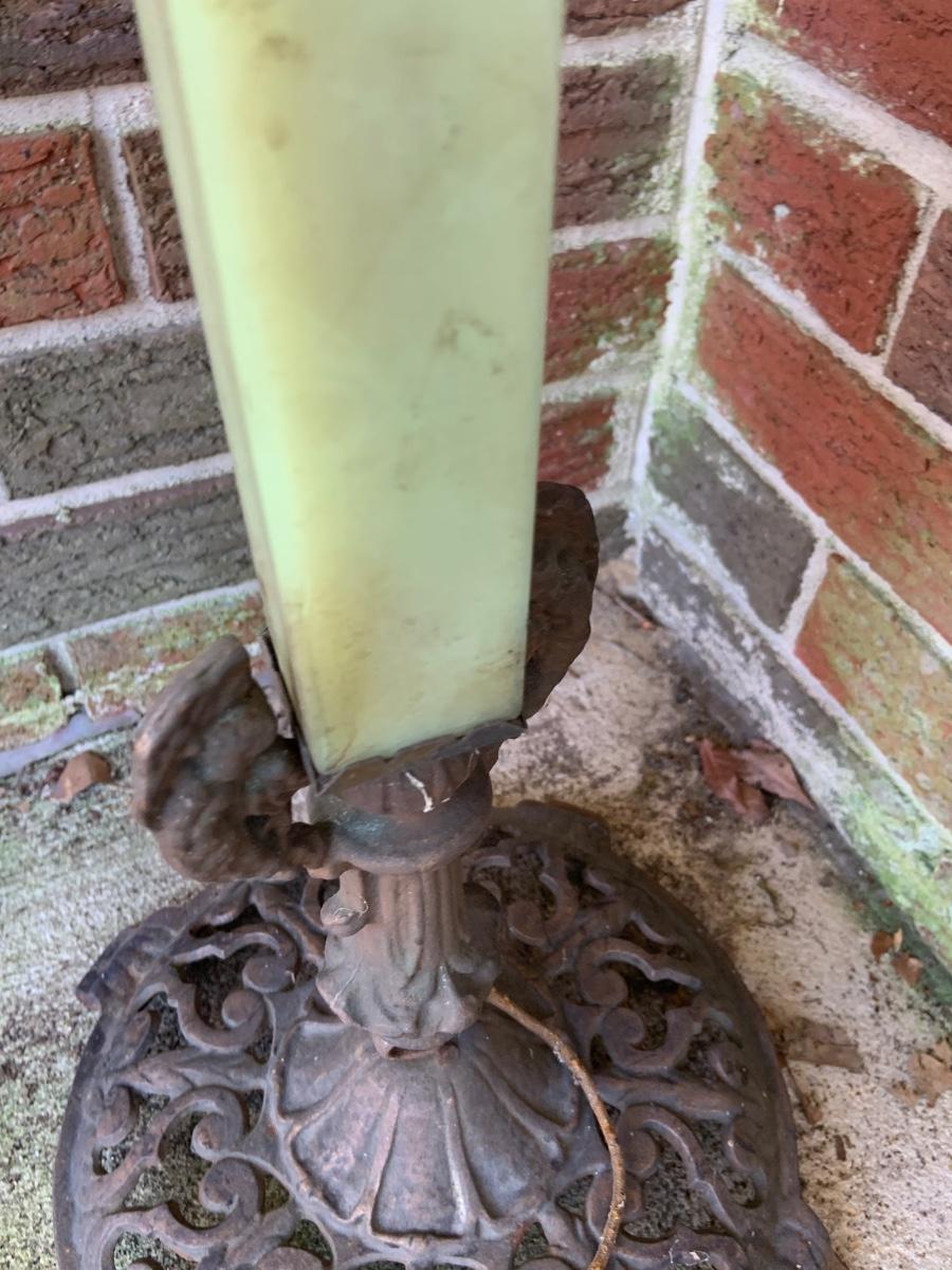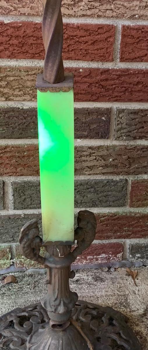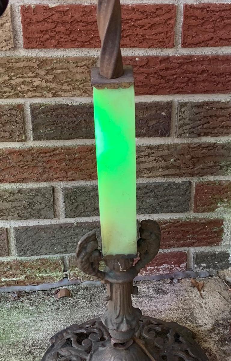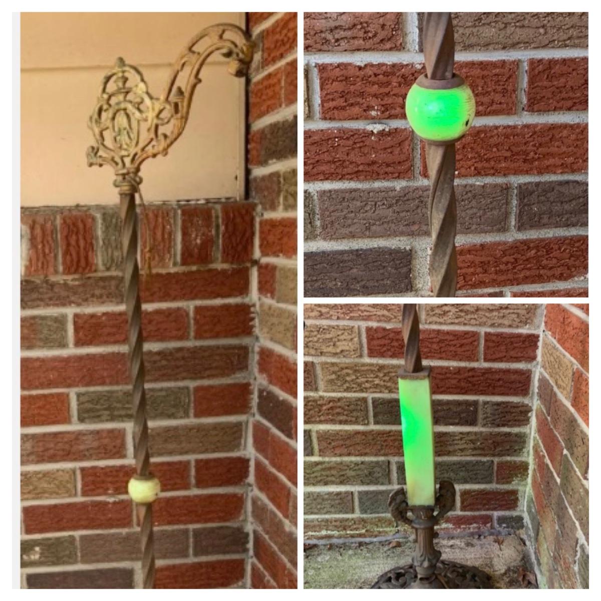 LOT:221G: Metal Lamp Stand with Uranium Glass Accents and Pierced Base and Top