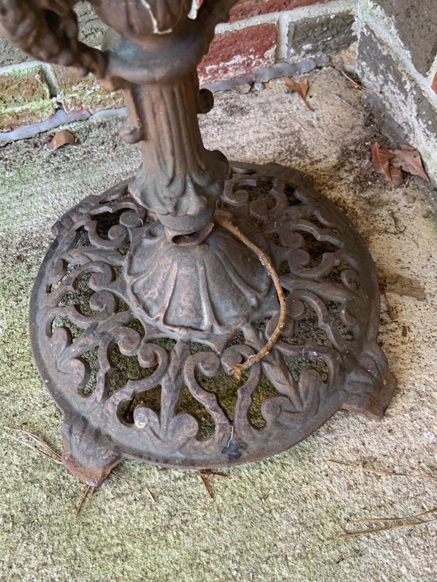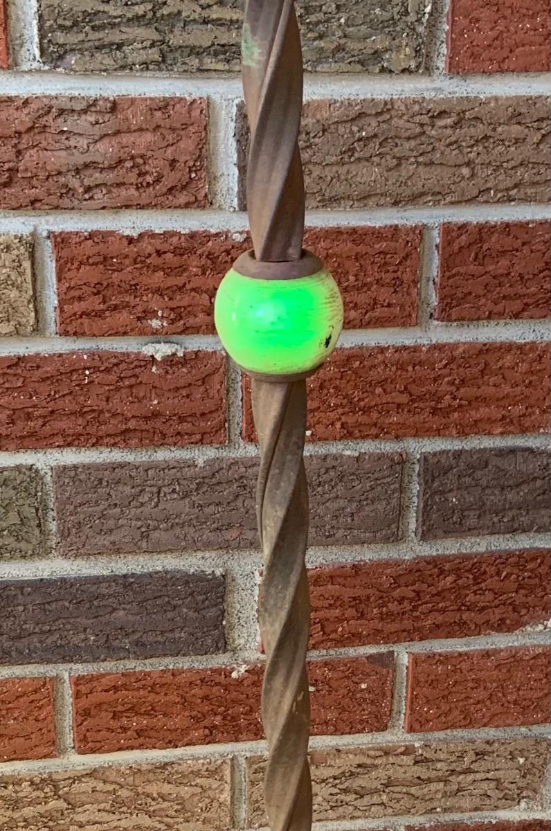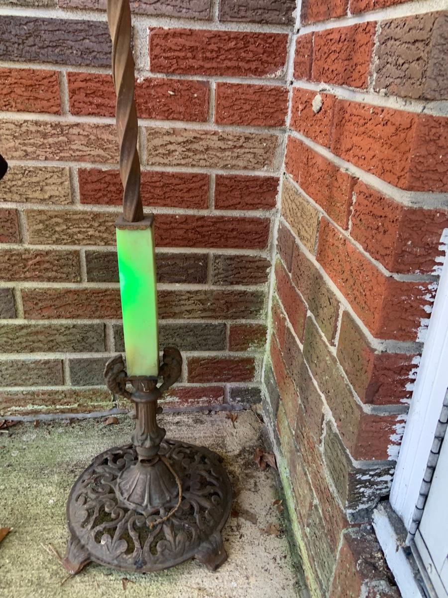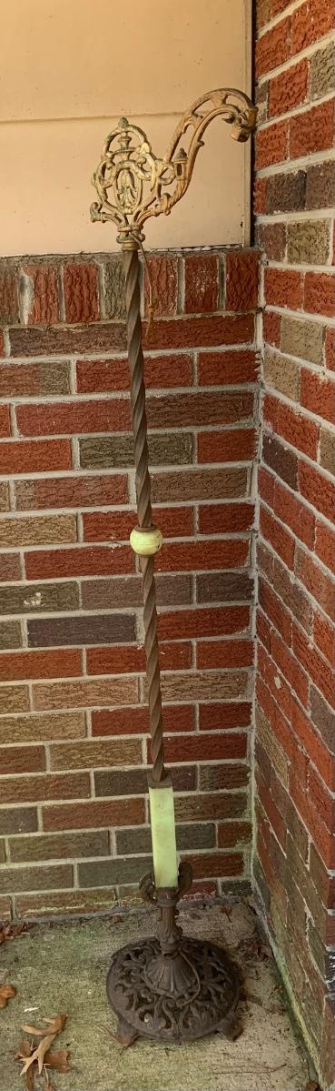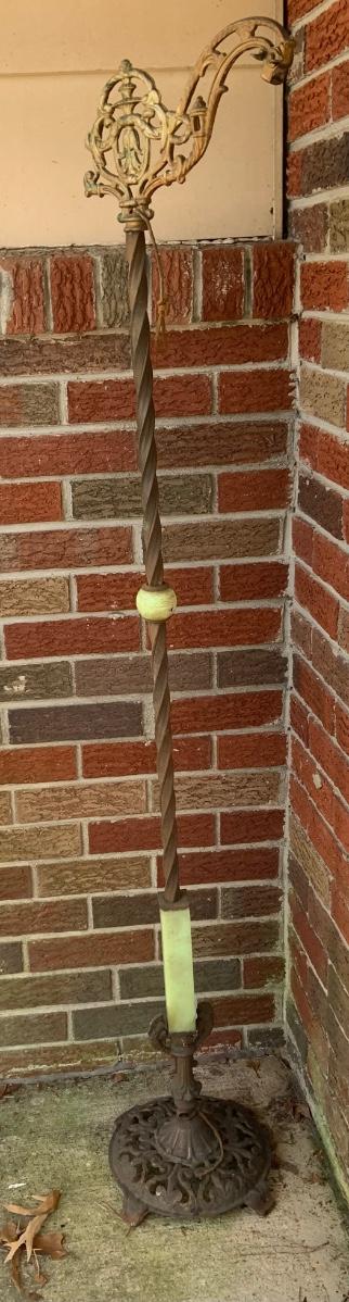 LOT:221G: Metal Lamp Stand with Uranium Glass Accents and Pierced Base and Top