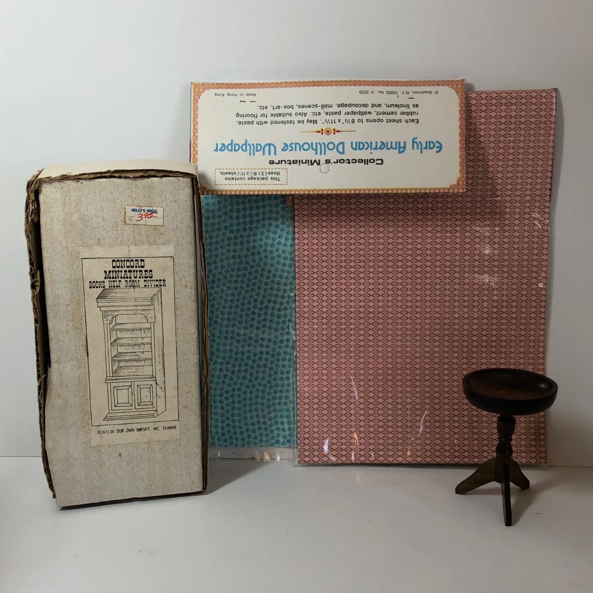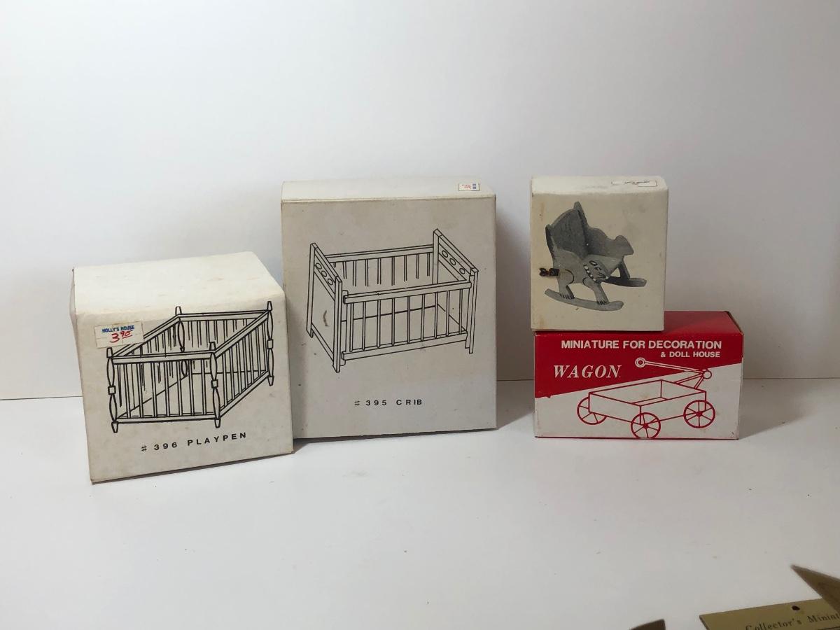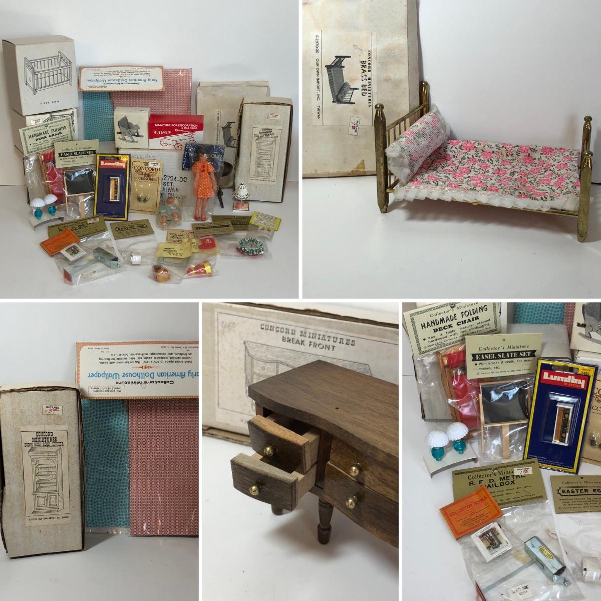 Includes wood and brass furniture, accessories and other items in 1:12 scale.