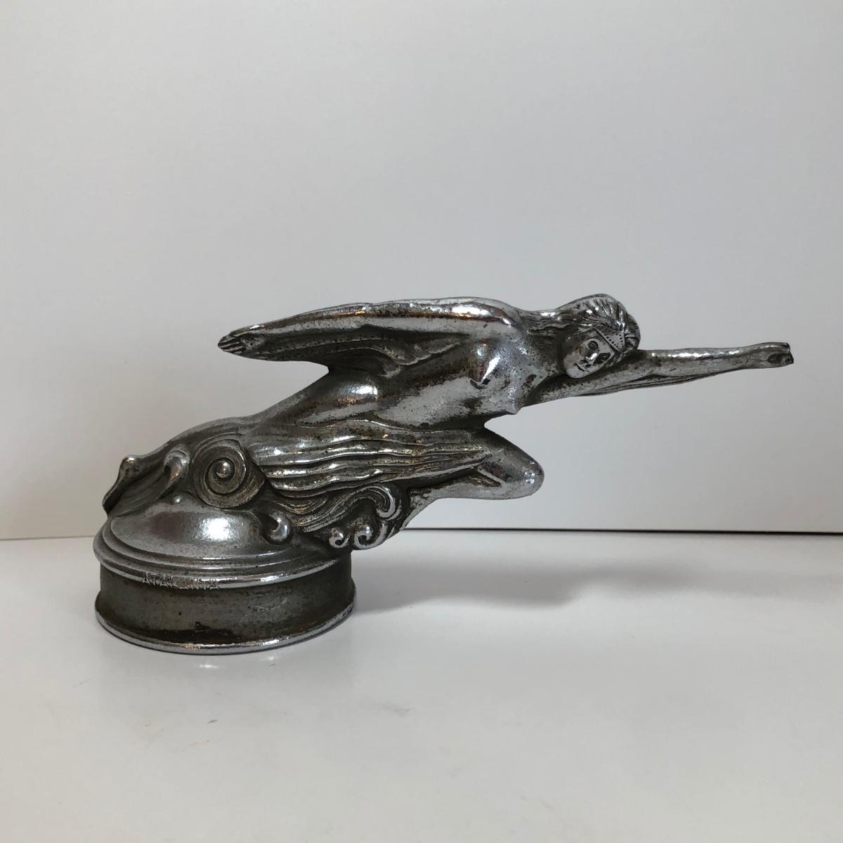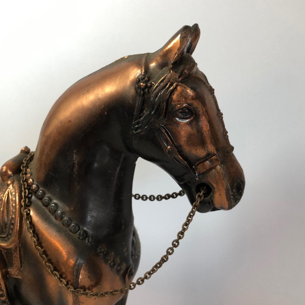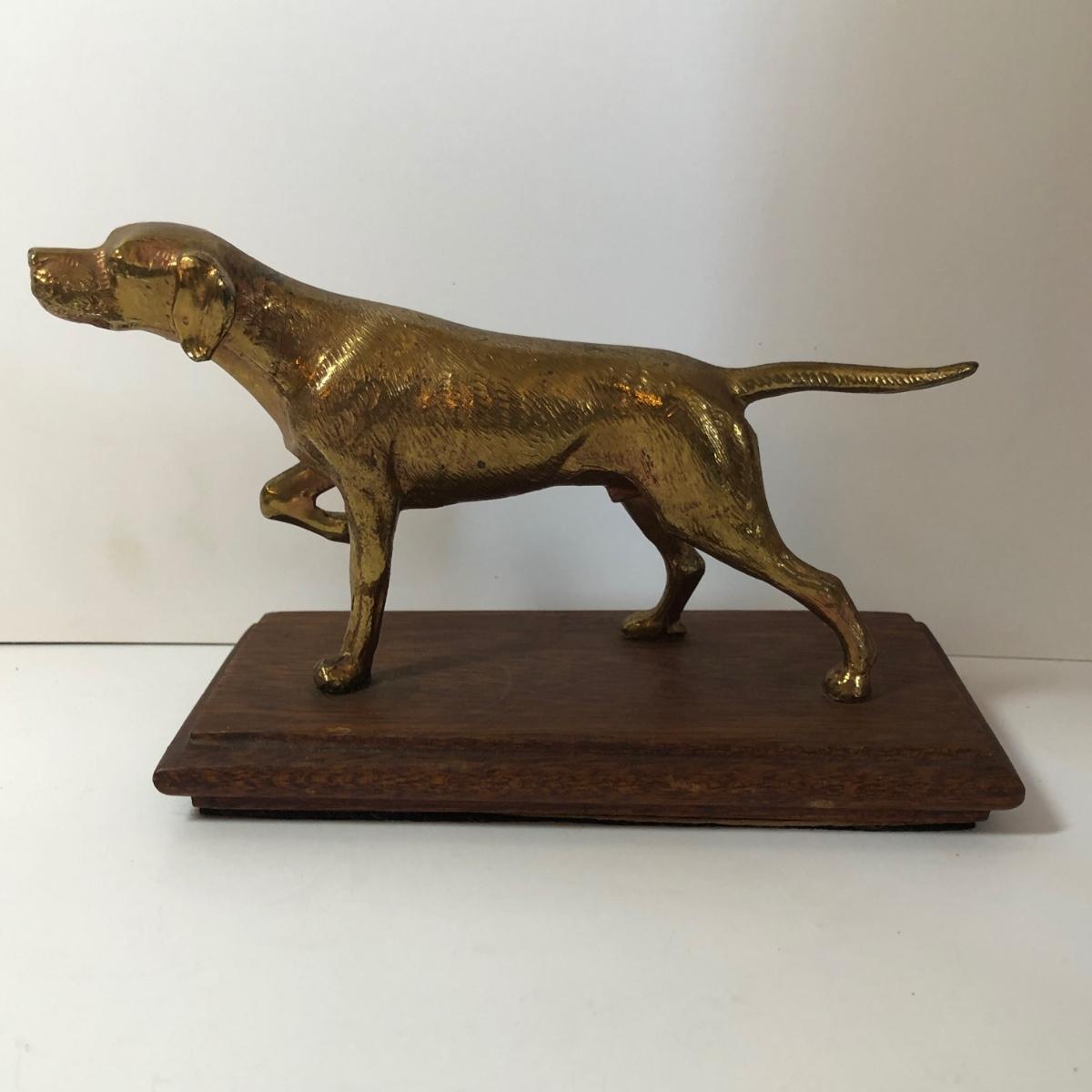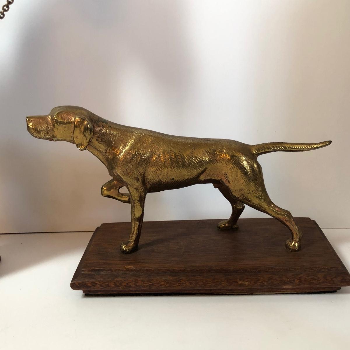 LOT 243M: Copper Horse; Cadallic Mirror, Vintage Car Hood Ornament, Wood Nesting Doll; Brass Decanter Music Box, Dog Statue and Bells