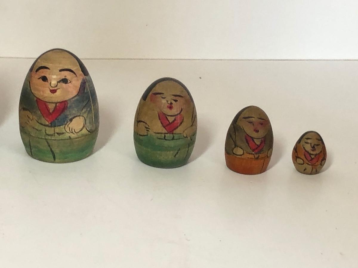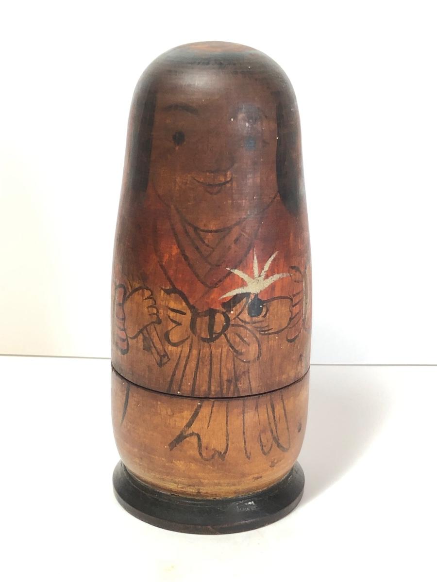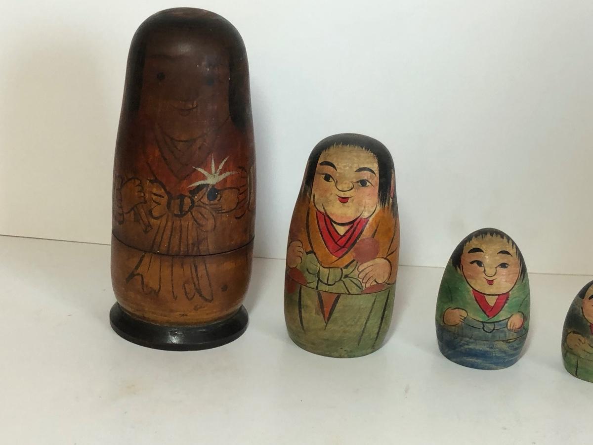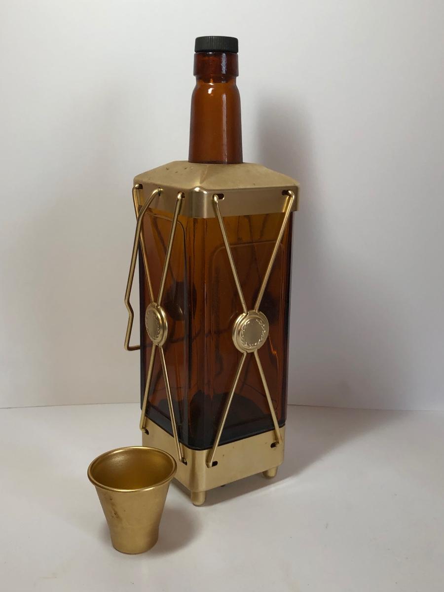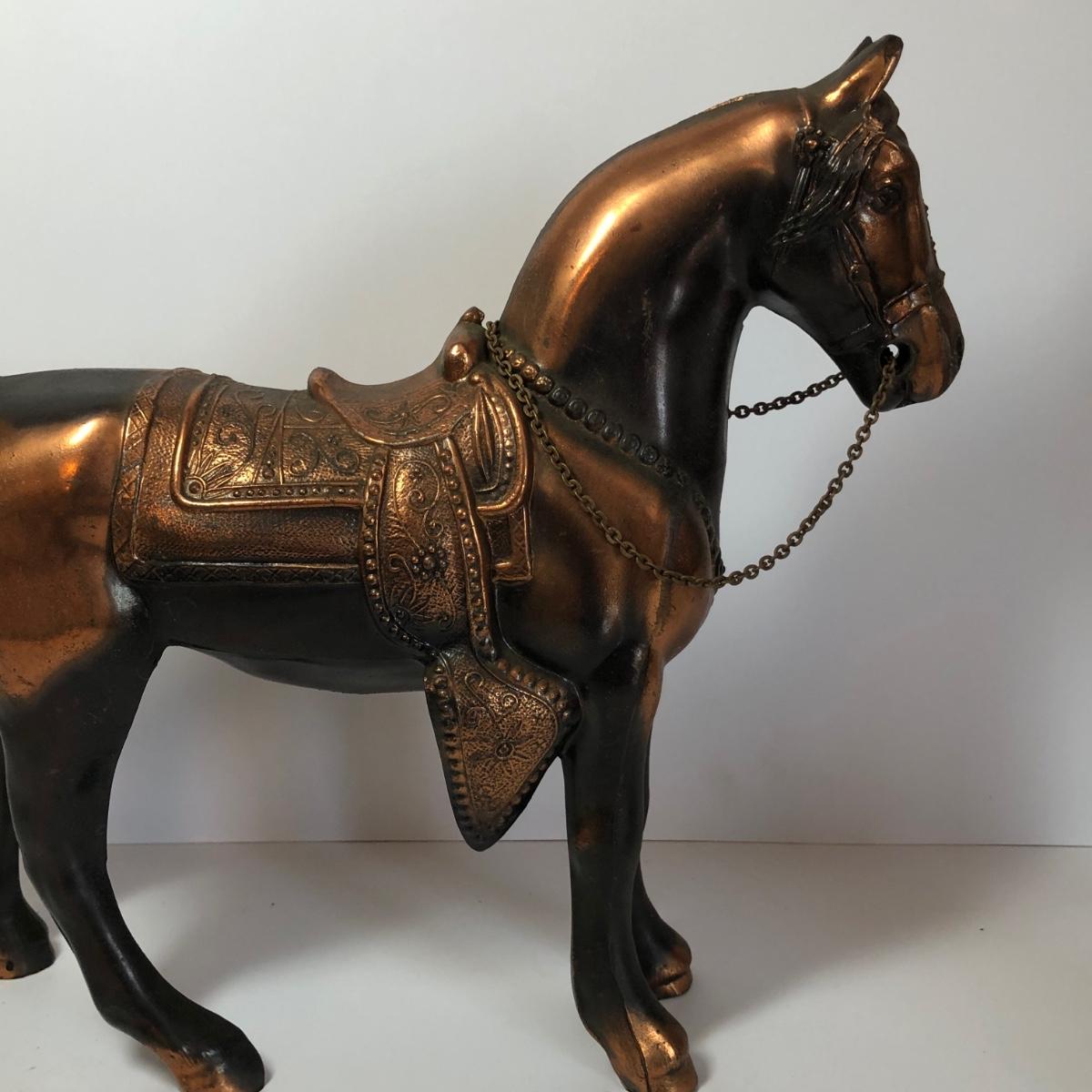 LOT 243M: Copper Horse; Cadallic Mirror, Vintage Car Hood Ornament, Wood Nesting Doll; Brass Decanter Music Box, Dog Statue and Bells