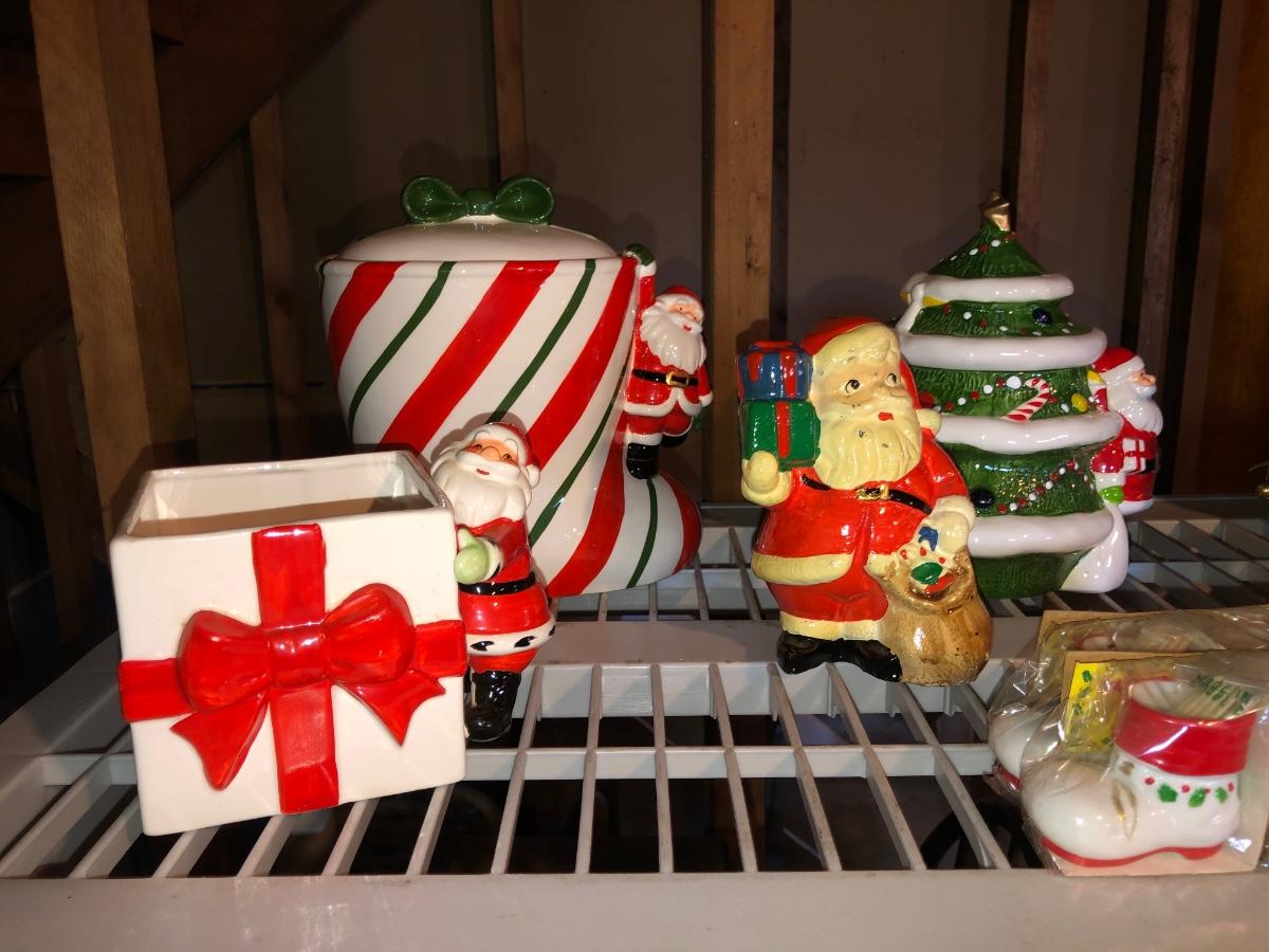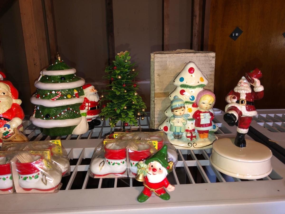 LOT 246M: Holiday Collection of Cookie Jars, Toothpick Holders Music Boxes and Other Seasonal Decor