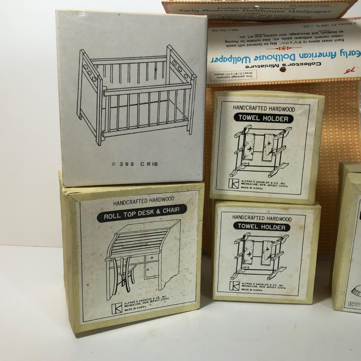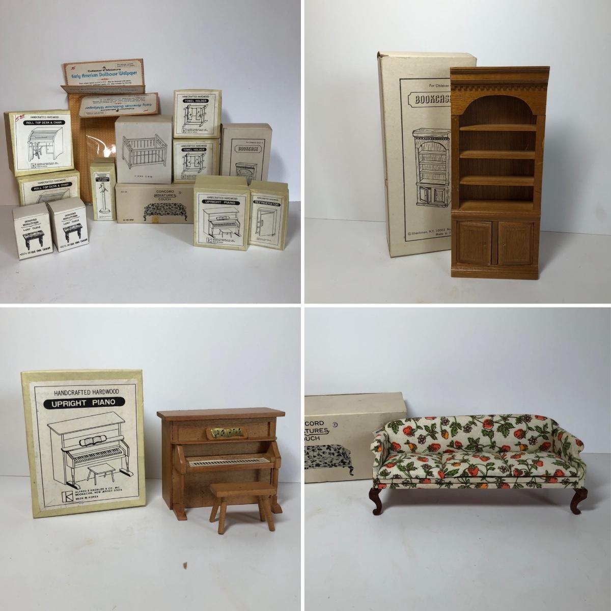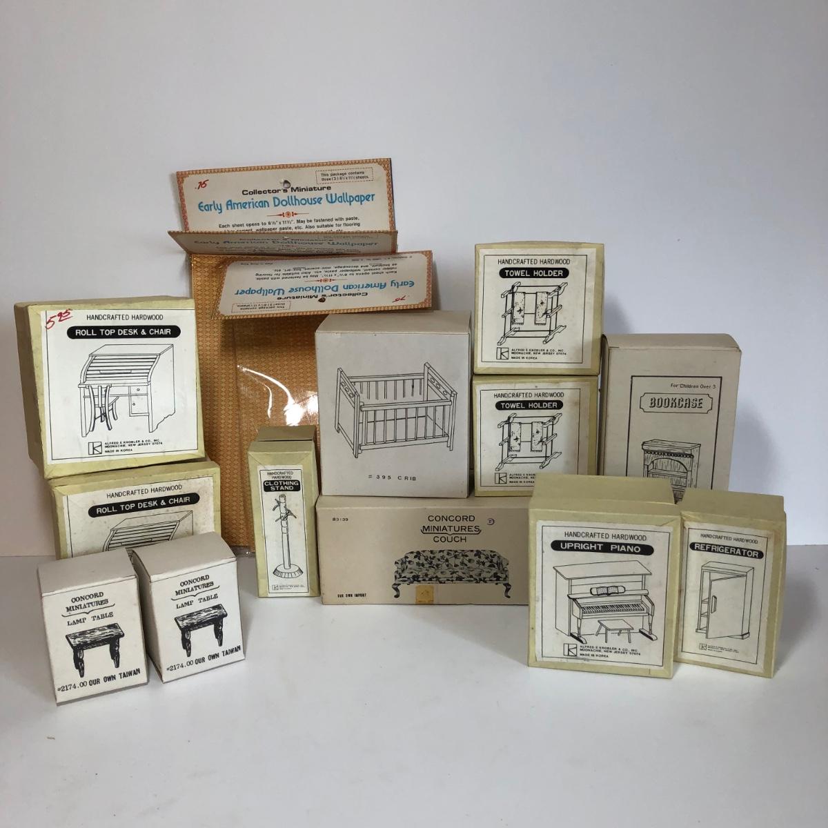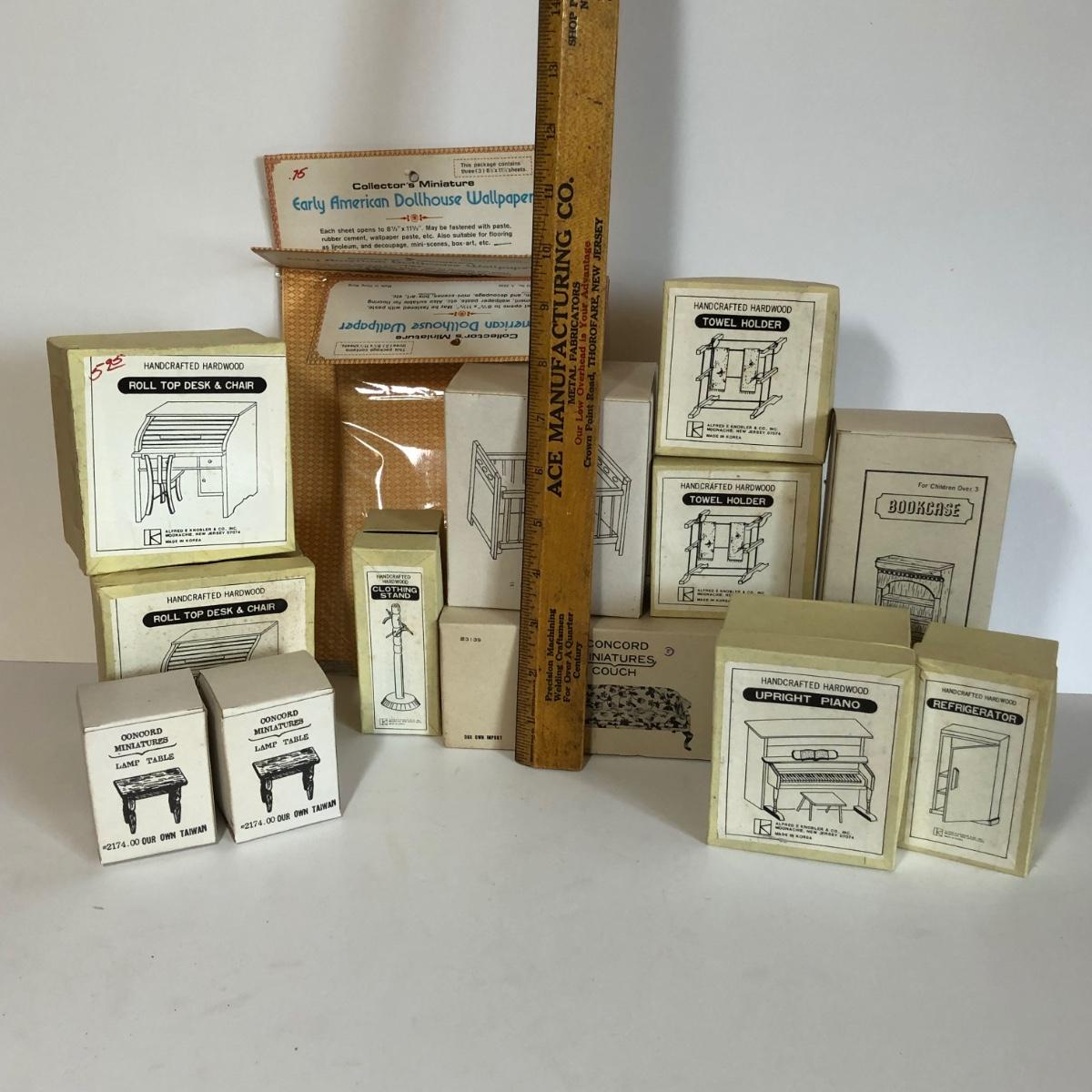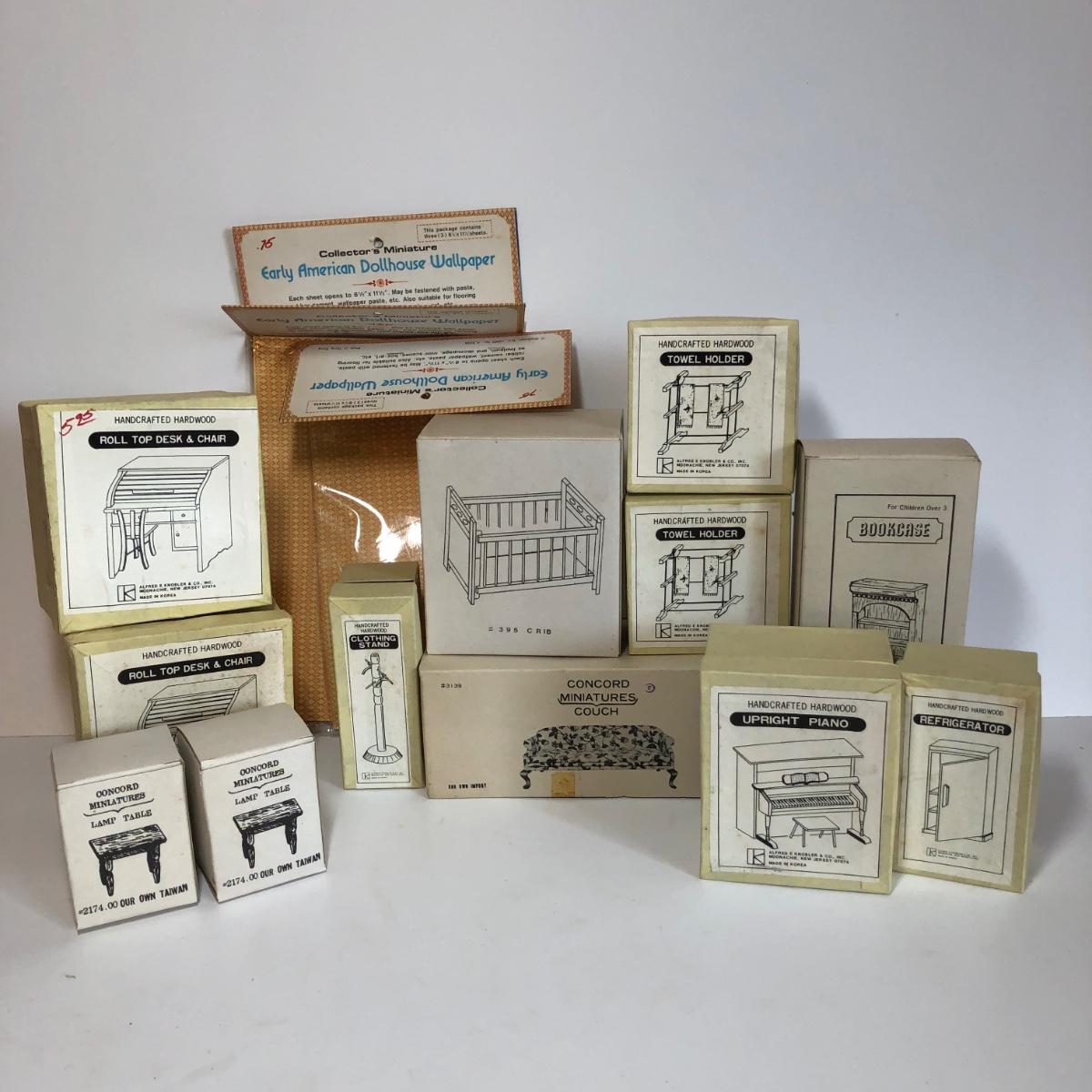 LOT 248M: New Old Stock Doll Furniture with Wall Paper and Concord and Other Handcrafted Hardwood Pieces