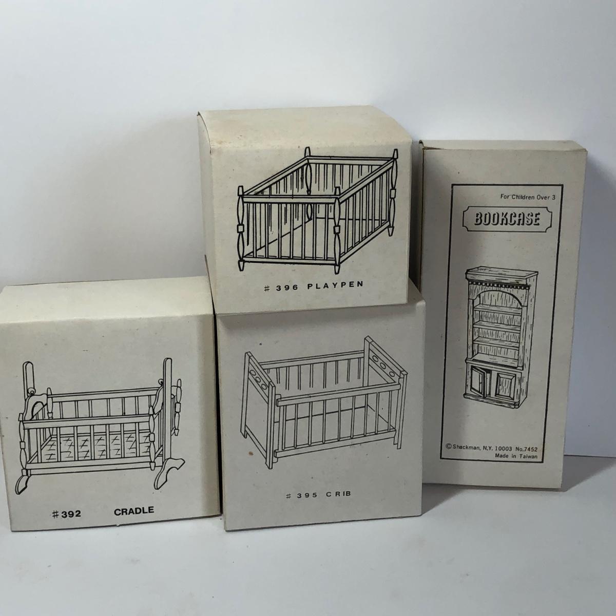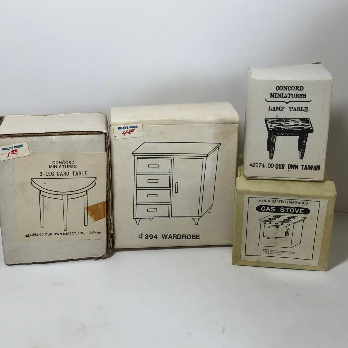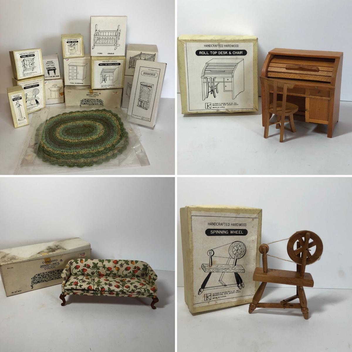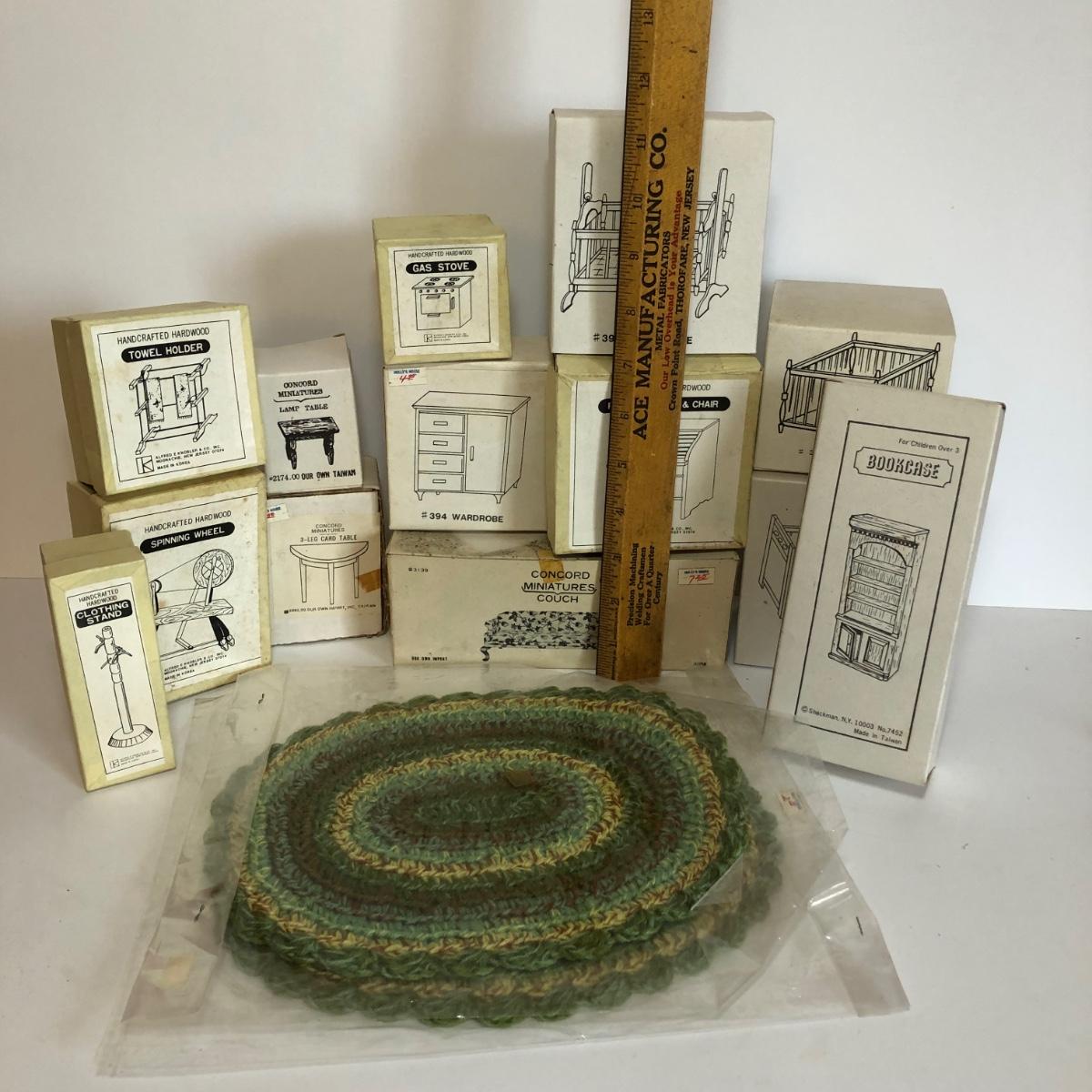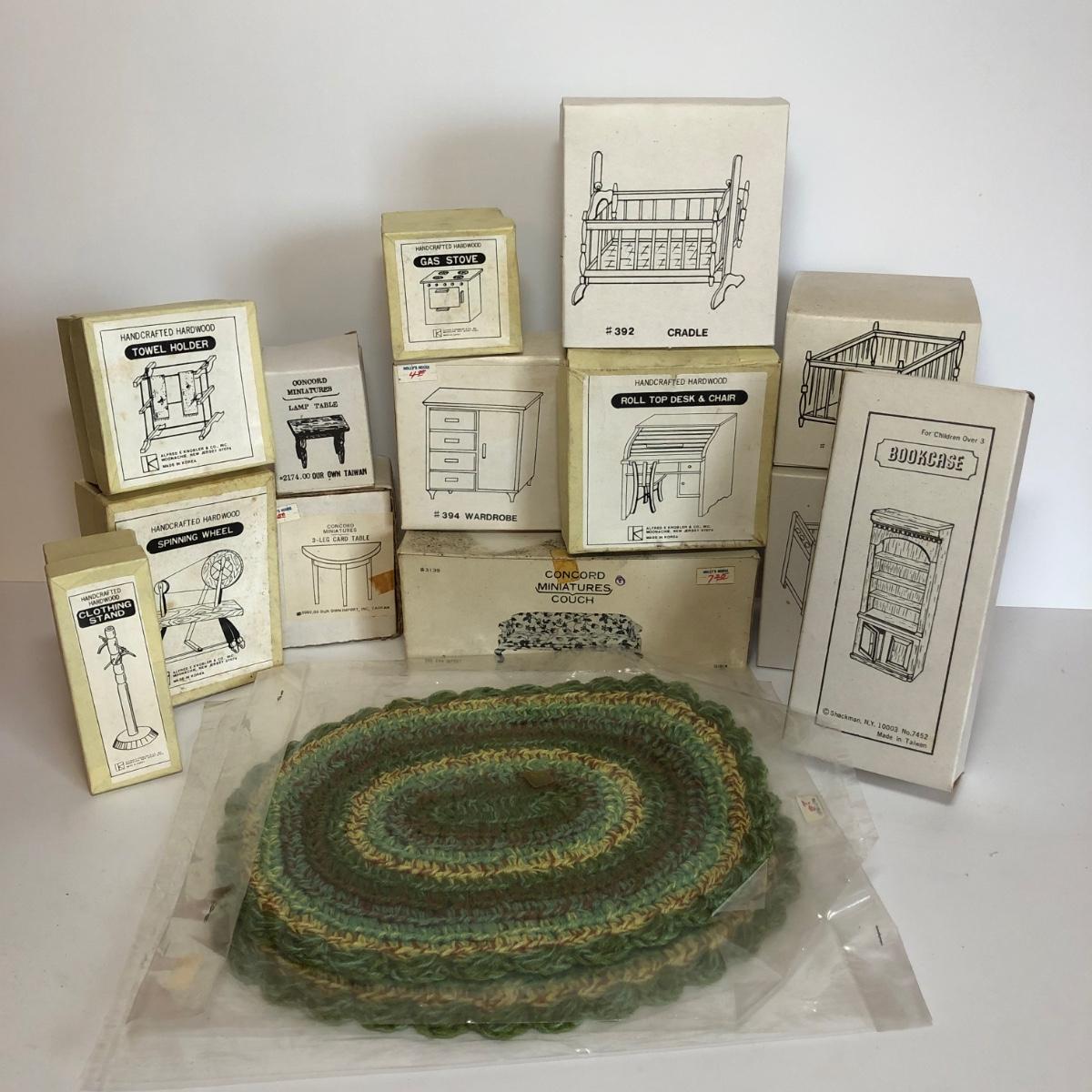 LOT 249M: New Old Stock Doll Furniture with Rugs and Concord and Other Handcrafted Hardwood Pieces