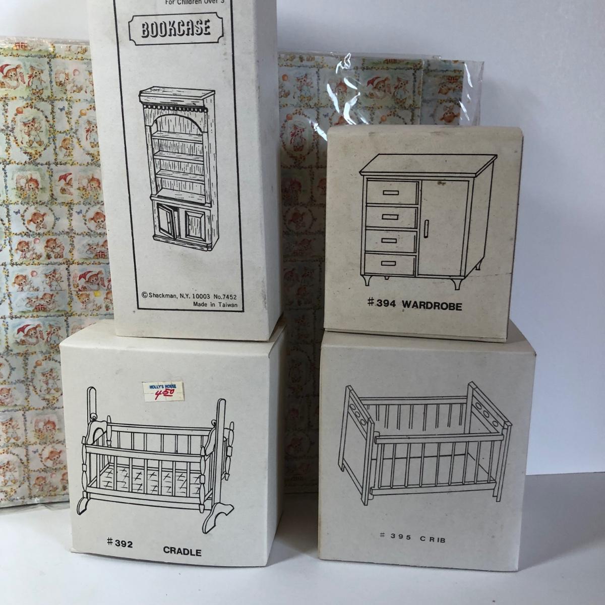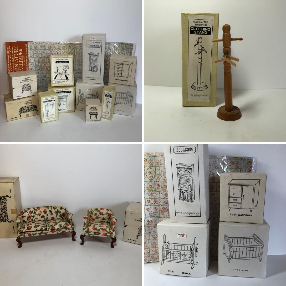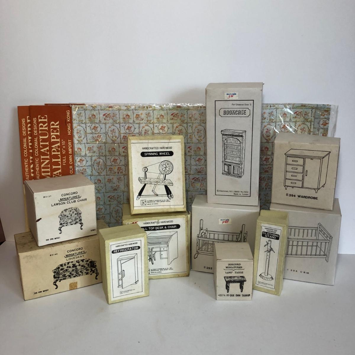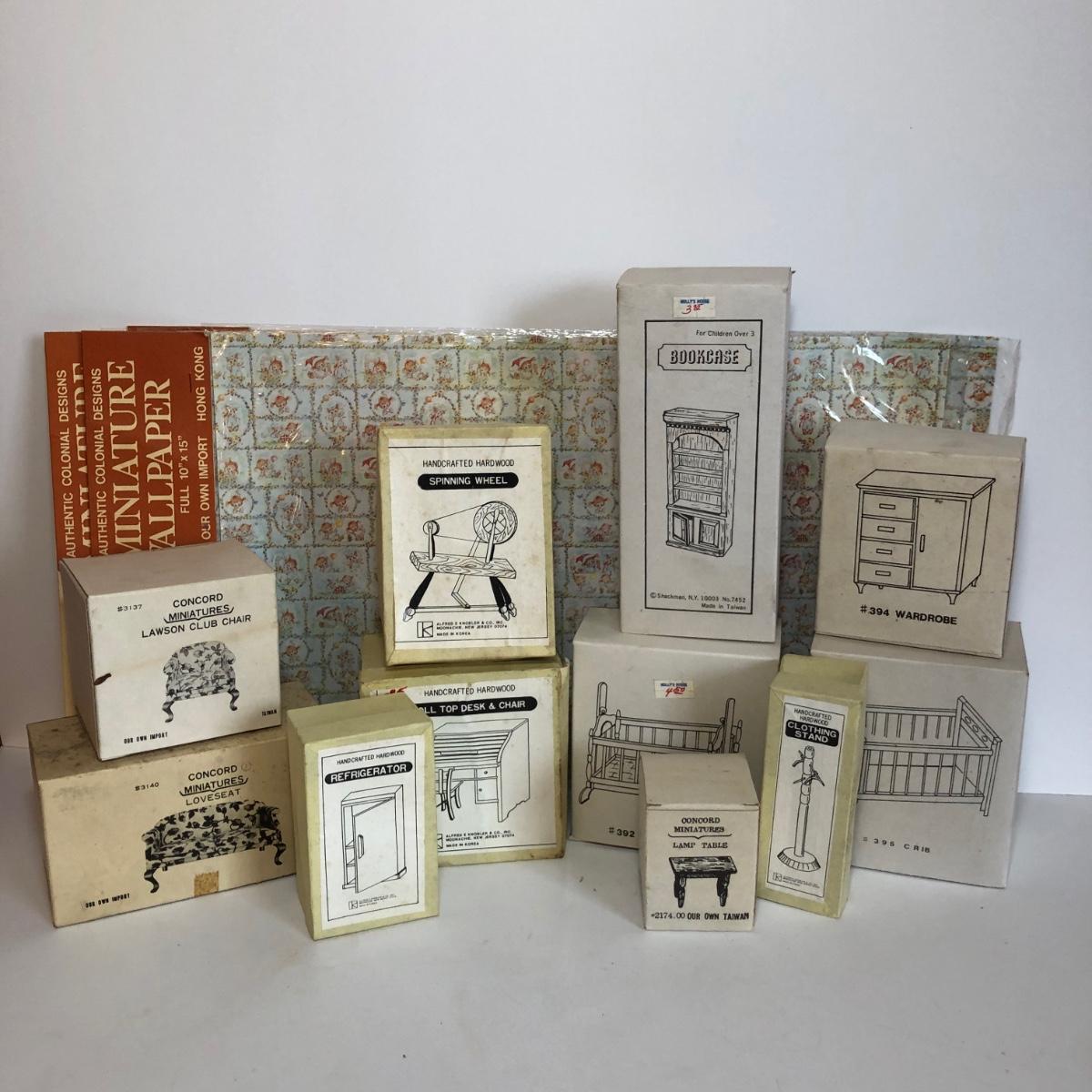 LOT 251M: New Old Stock Doll Furniture with Wall Paper and Concord and Other Handcrafted Hardwood Pieces