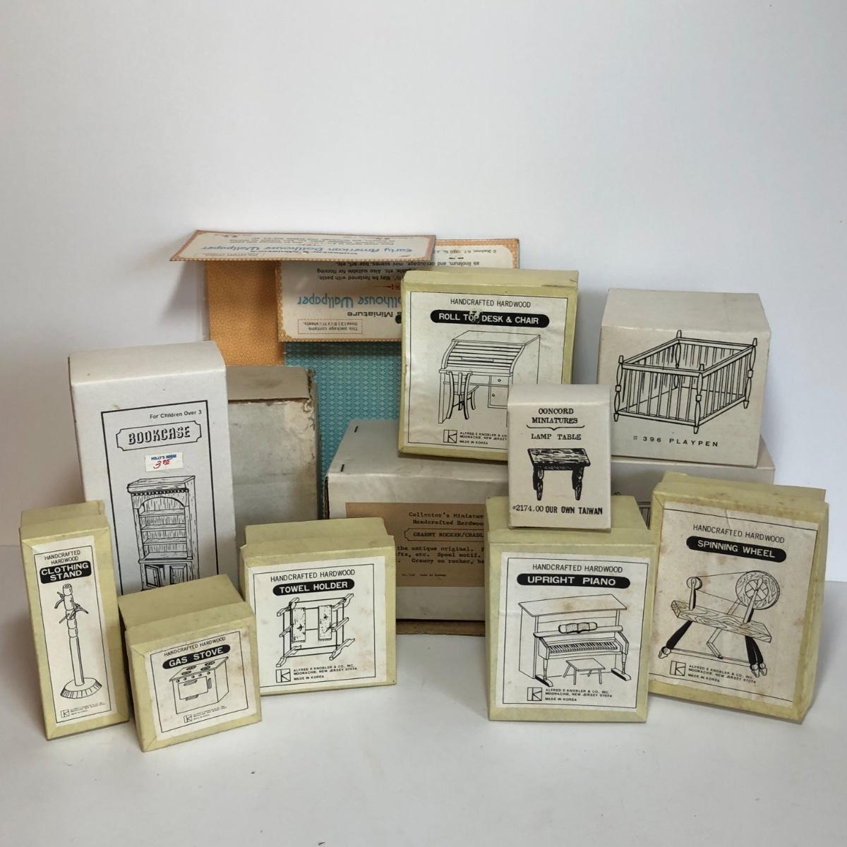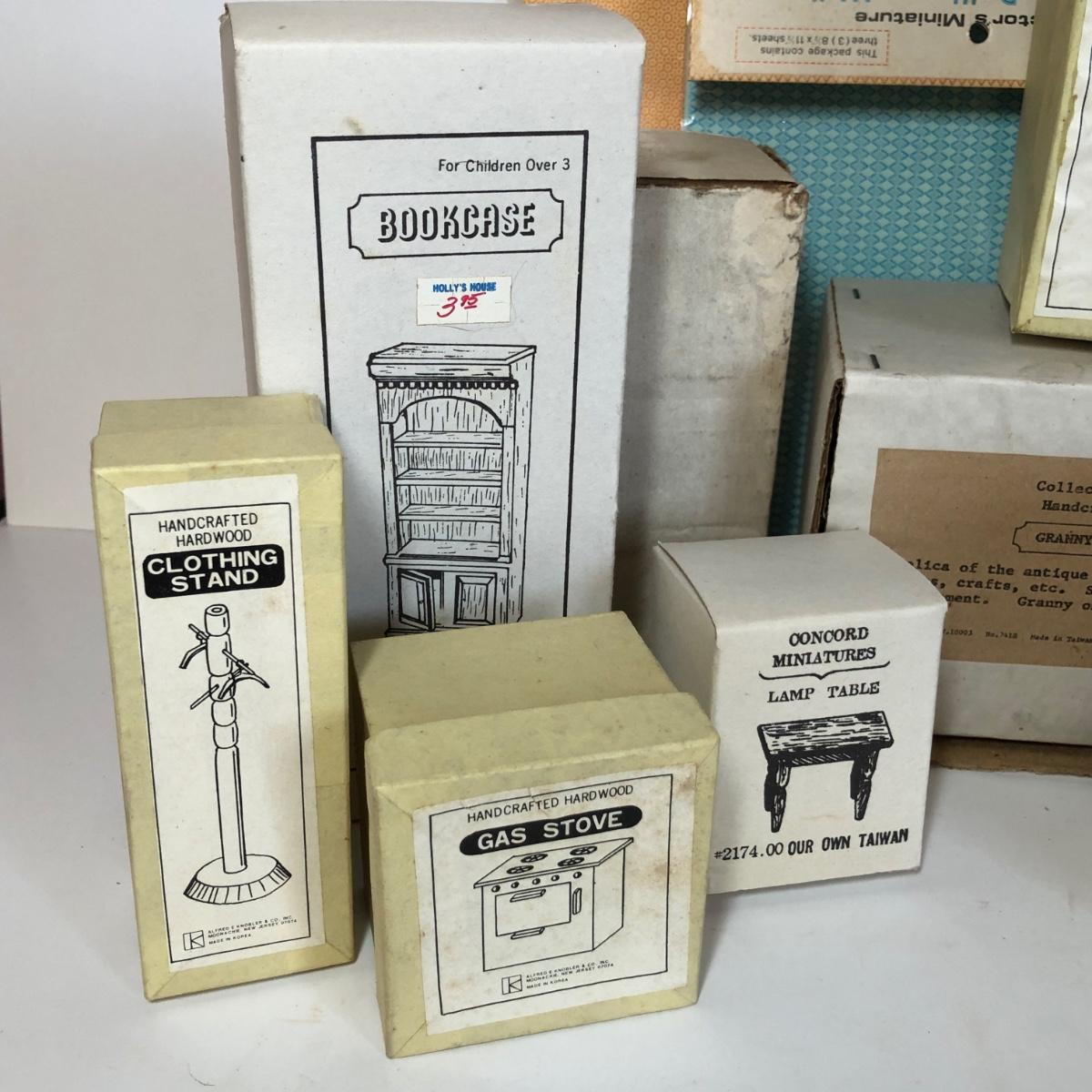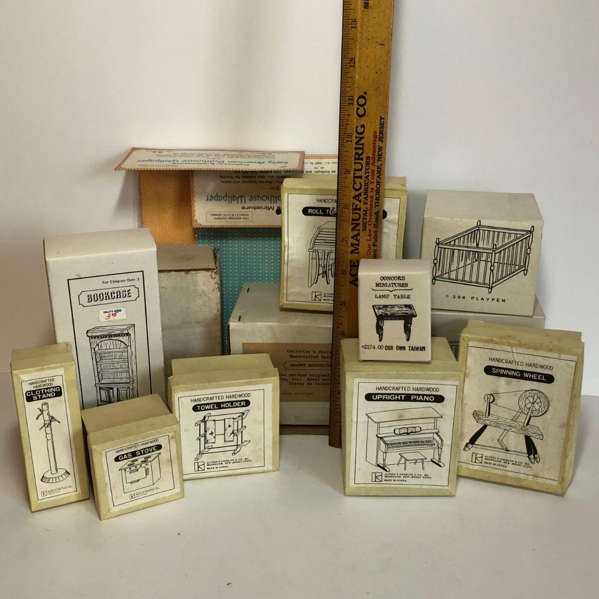 LOT 252M: New Old Stock Doll Furniture with,Wall Paper and Concord and Other Handcrafted Hardwood Pieces
