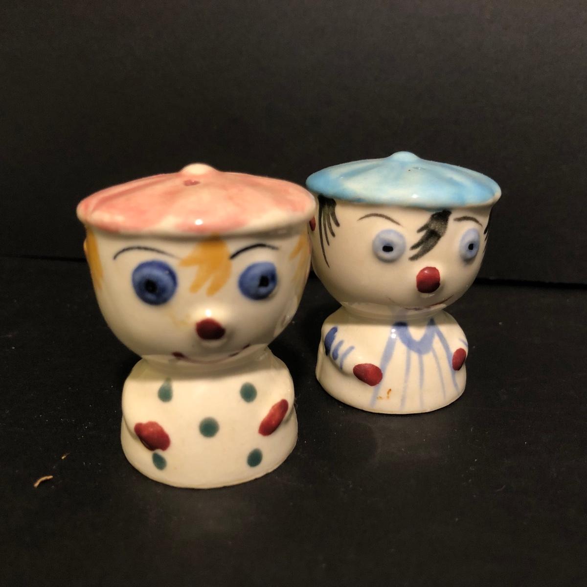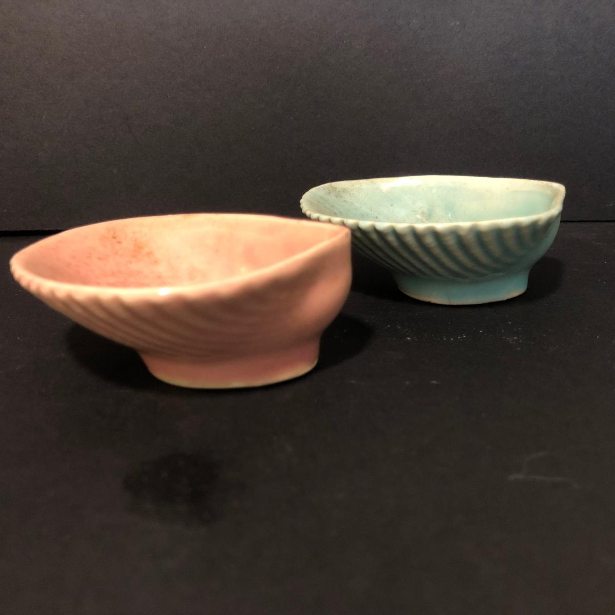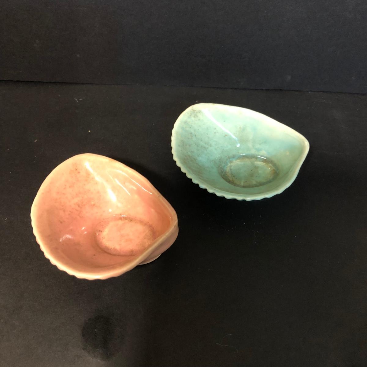 LOT 258M Pastel Roseviile Tray/Platter No1211: Vintage Unmarked Clown Salt and Pepper Shakers: and Small Shell Shaped Dishes