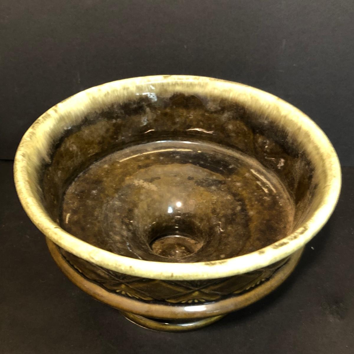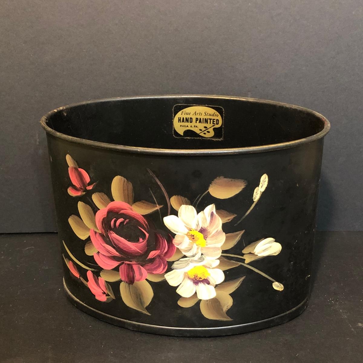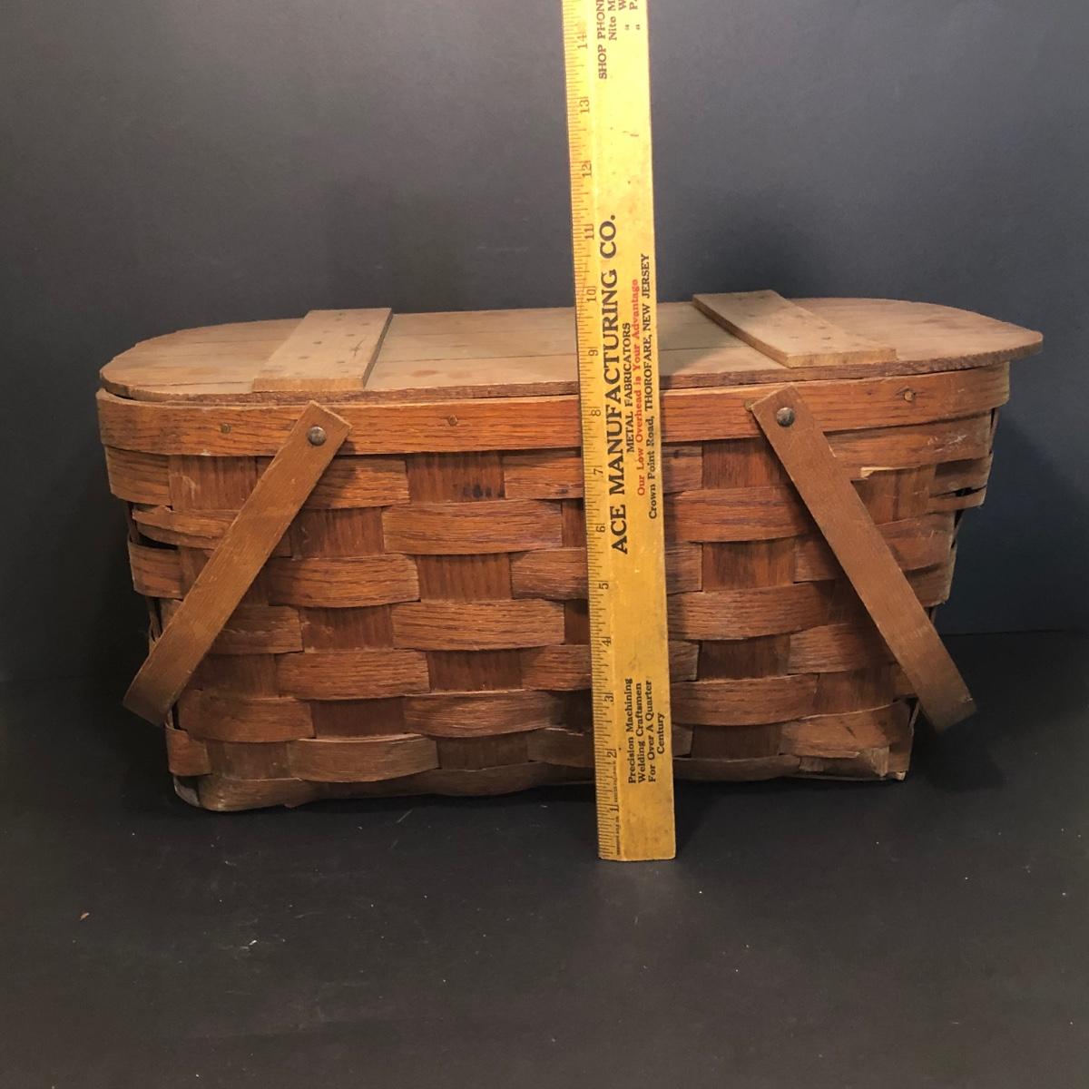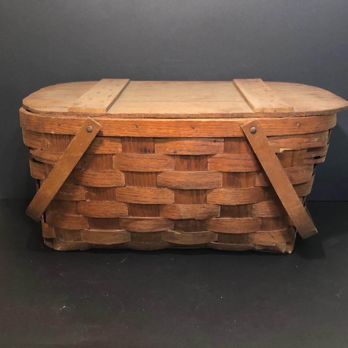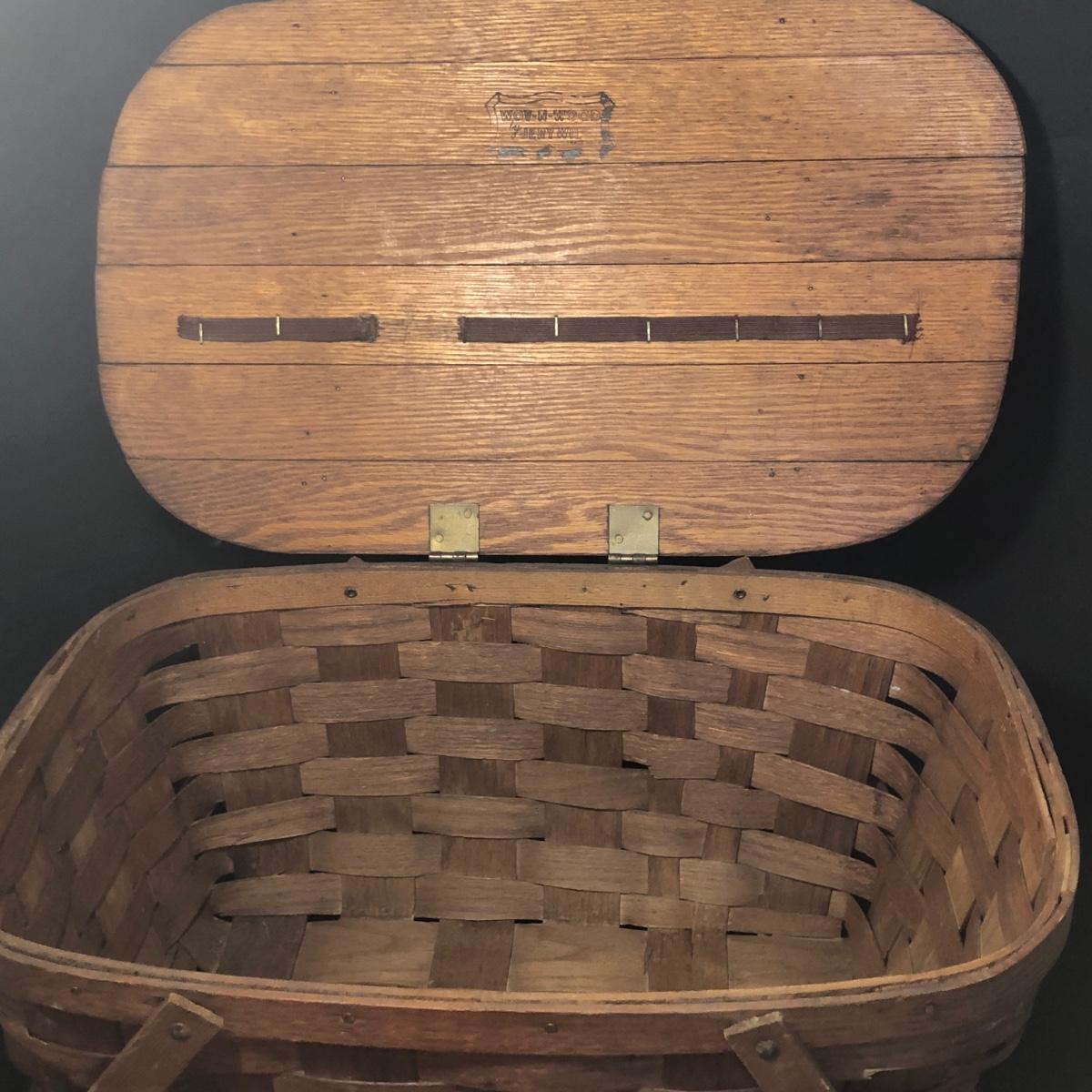 LOT 259M: Hull Pottery Compot Planter: Hand Painted Florial Planter; Wov-N-Wood Wicker Picnic Basket and a Group of Hand Carved Wood Birds