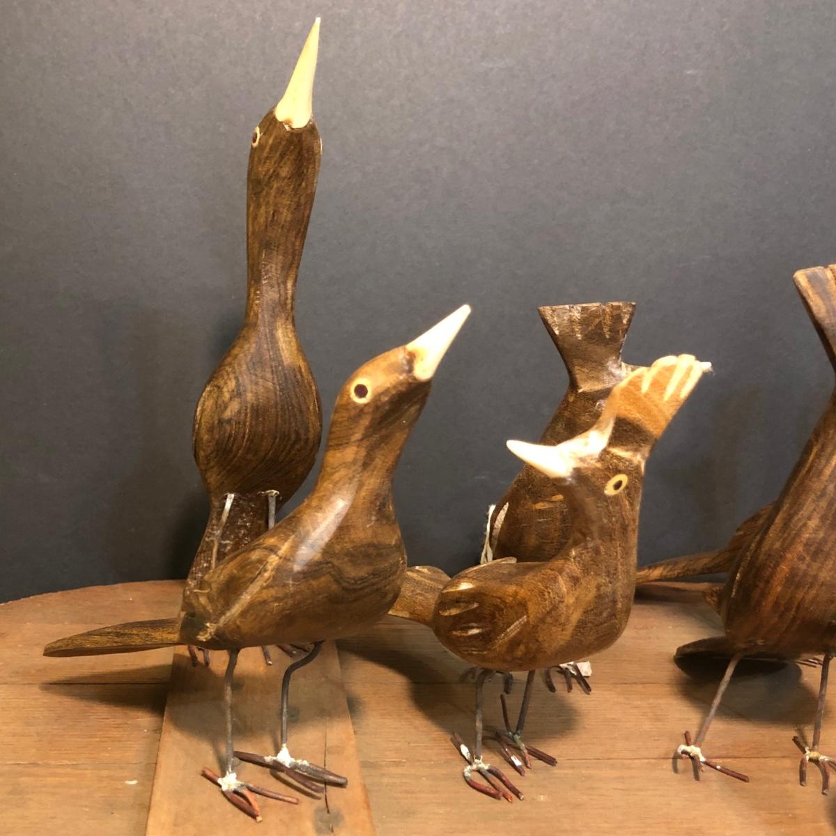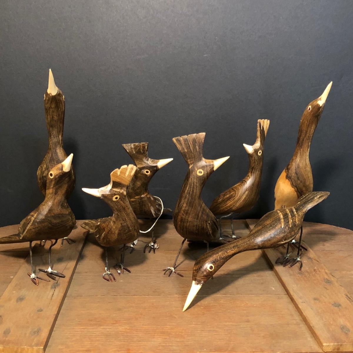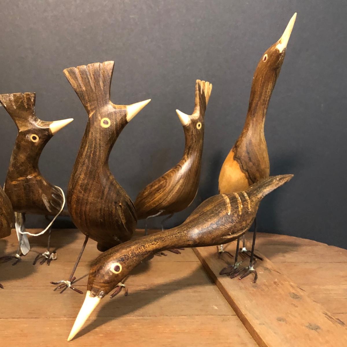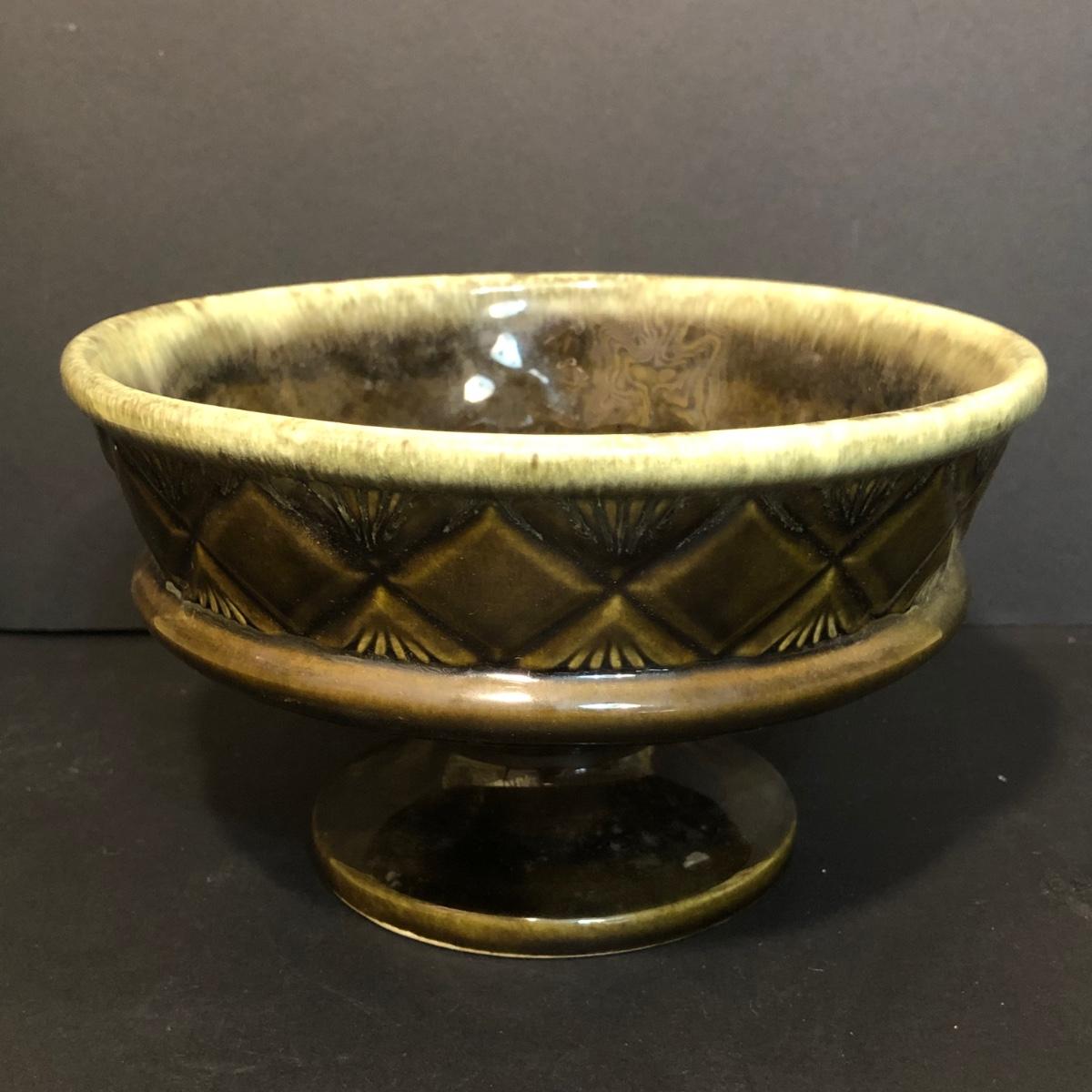 LOT 259M: Hull Pottery Compot Planter: Hand Painted Florial Planter; Wov-N-Wood Wicker Picnic Basket and a Group of Hand Carved Wood Birds
